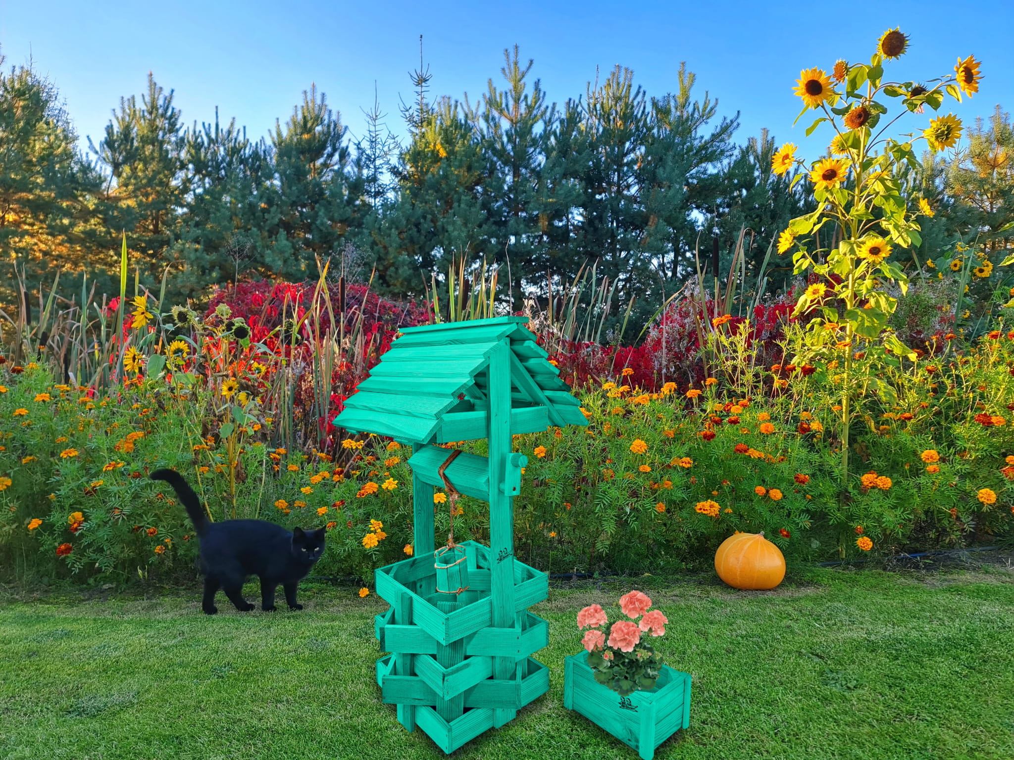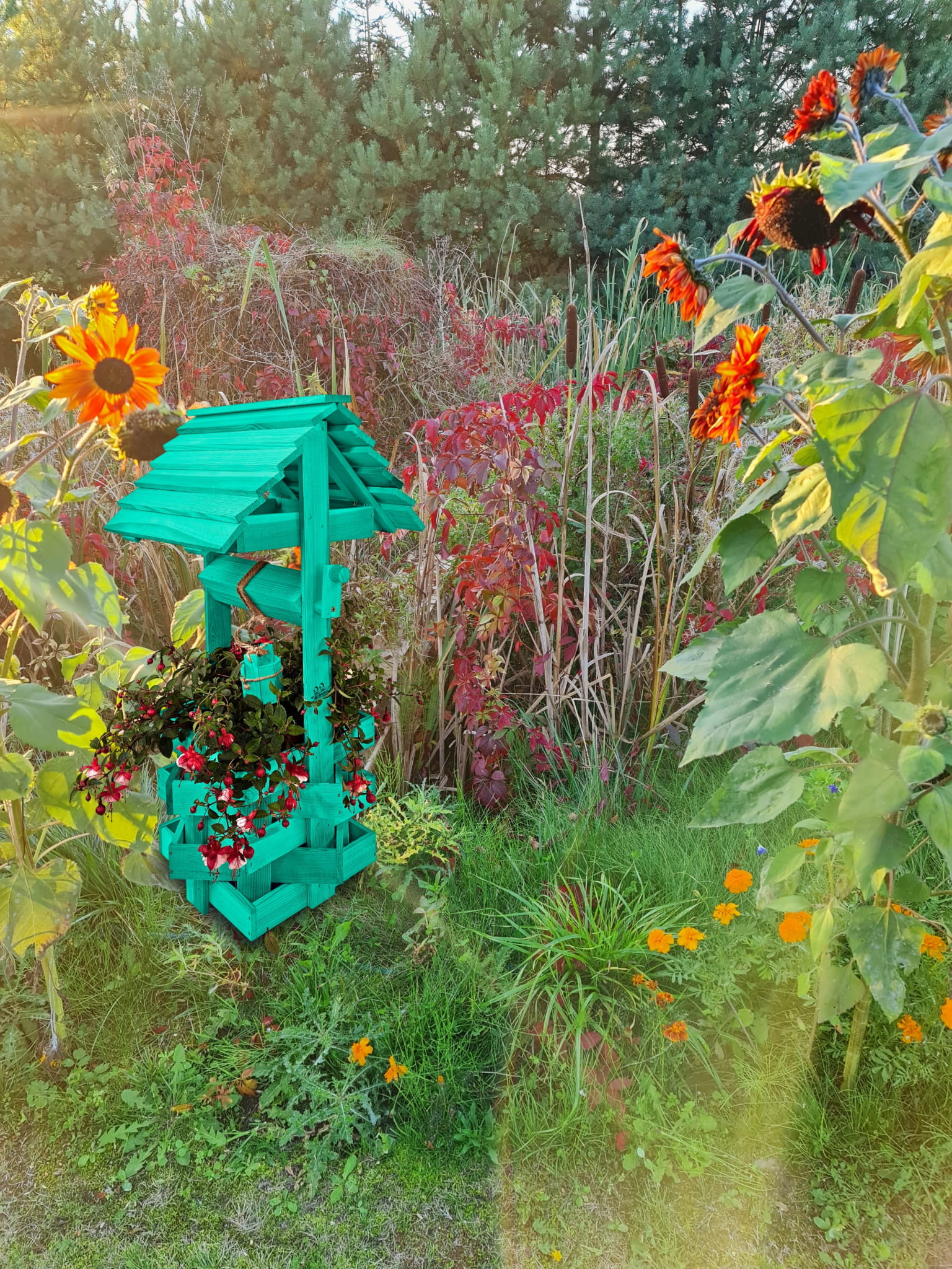 - Studnia została wzbogacona o drewnianą donicę, w której można dodatkowo storzyć miniogródek