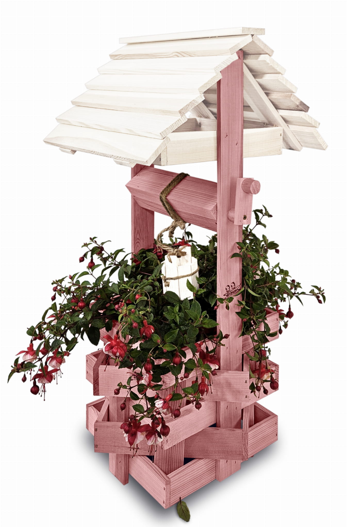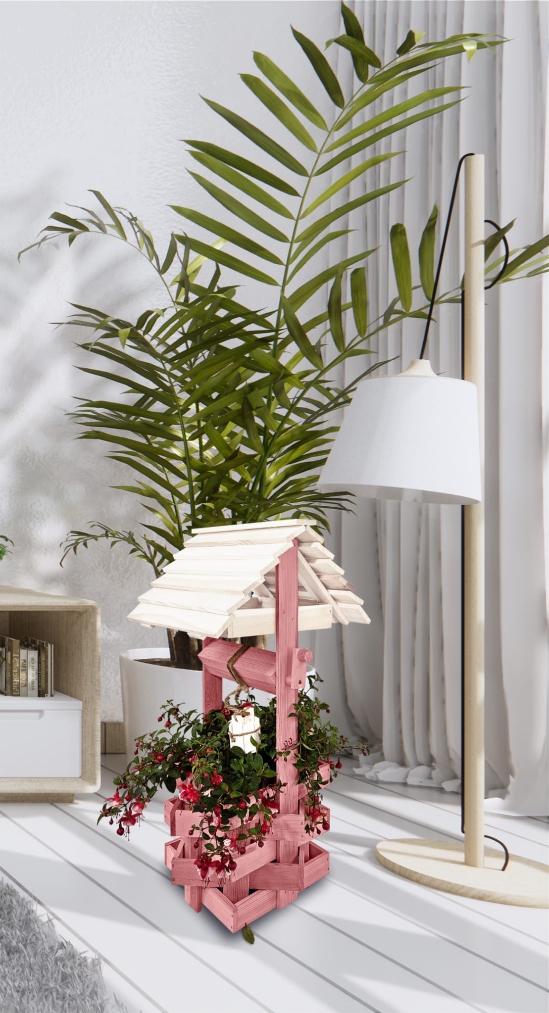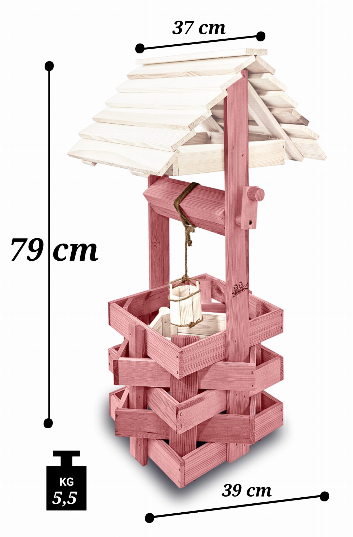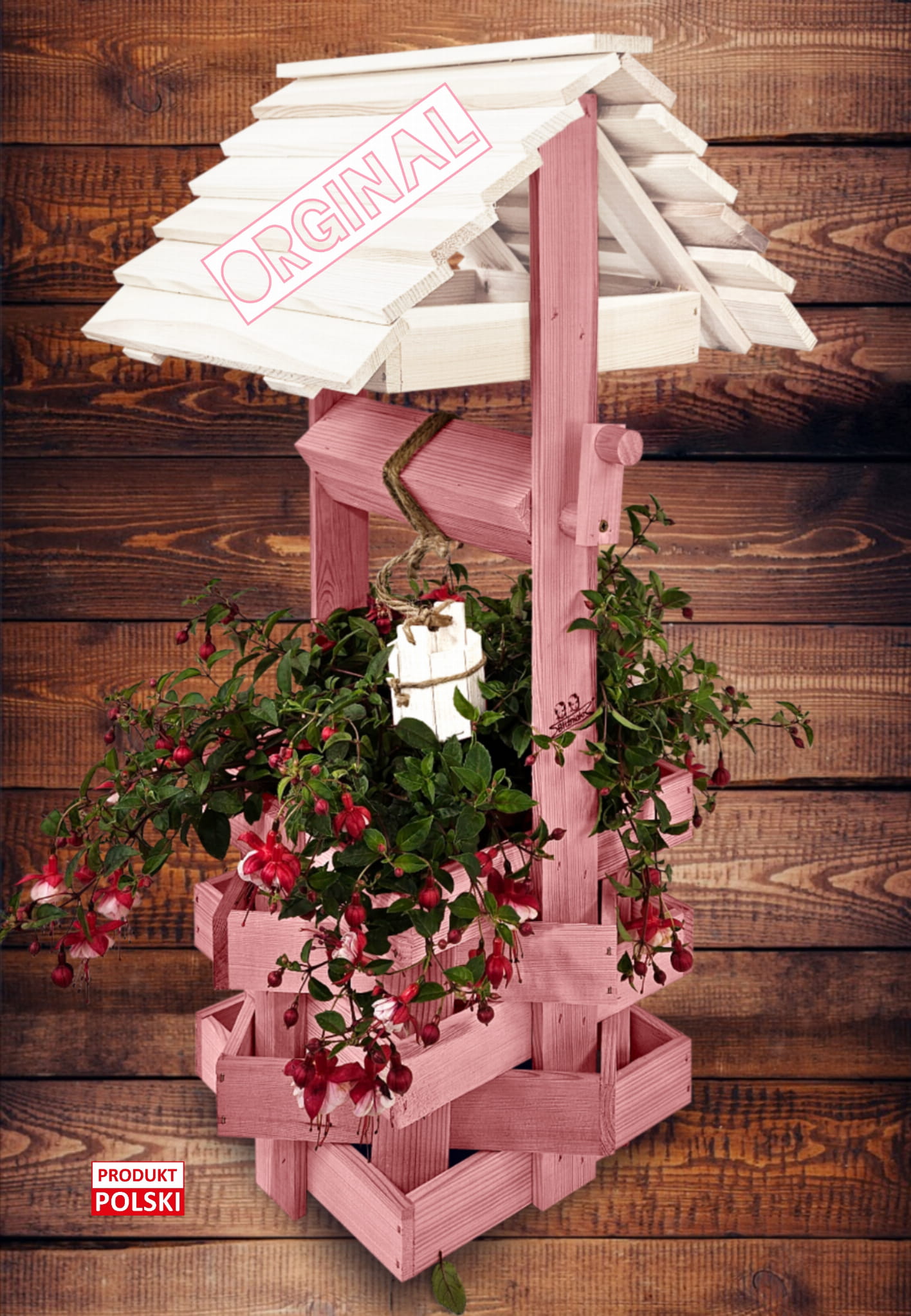 Duża studnia drewniana ozdobna Studzienka ogrodowa Donica na kwiaty do domu i ogrodu Prezent Kwietnik w kolorze pastelowym Jasnym Różowym Studzienki ozdobne Studnie balkonowe tarasowe Ozdoba domu i ogroduSC1 RÓPP BI