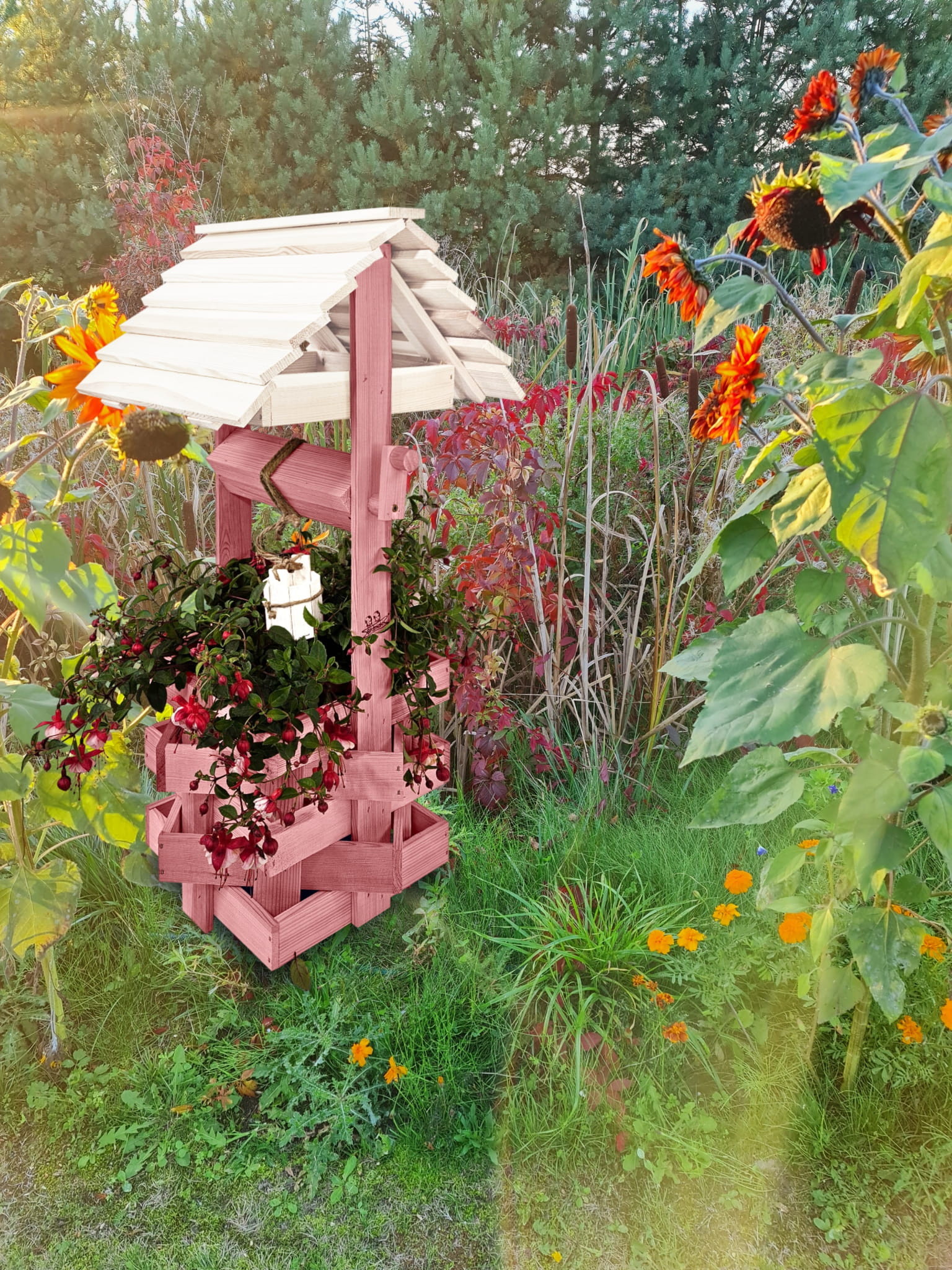 - Studnia została wzbogacona o drewnianą donicę, w której można dodatkowo storzyć miniogródek