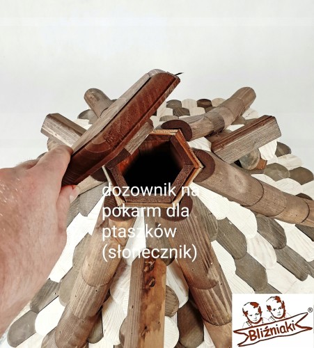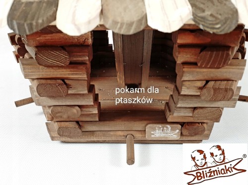 - Karmnik wykonany jest w całości z drewna, impregnowany ręcznie.