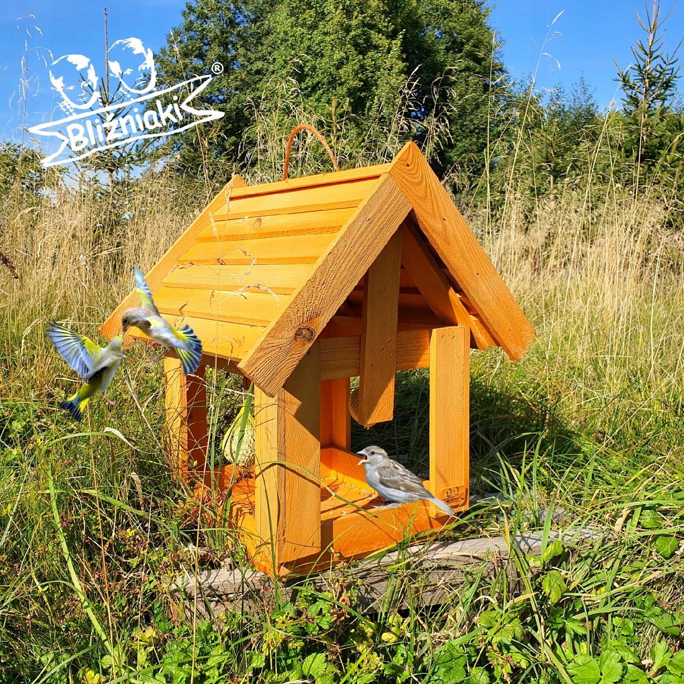 Karmniki nie tylko jako stacje pokarmowe, nasza oferta zawiera również CAŁOROCZNE karmniki z wbudowanymi budkami lęgowymi.
