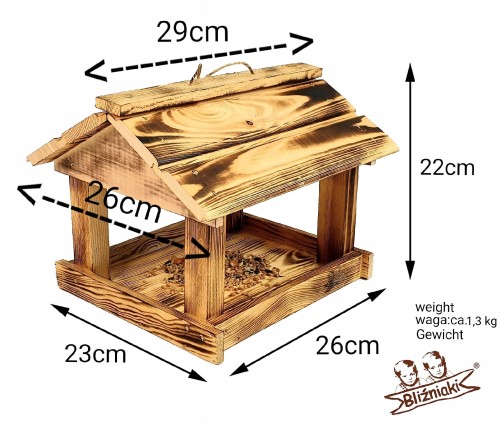 - Wymiar konstrukcji pasuje do ustawienia karmnika na standardowych parapetach okiennych
