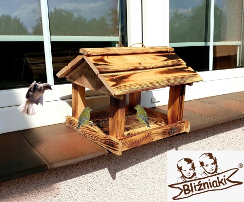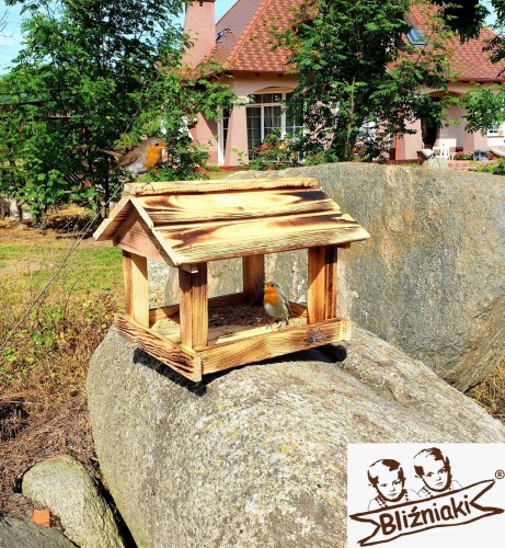 Aby Karmnik na długo zachowała swój piękny kształt, drewno poddano pracochłonnej obróbce płomieniowej. Dzięki temu drewno jest nie tylko odporne na niekorzystne warunki atmosferyczne, ale uzyskuje dodatkowy urok wskutek postarzanej sztucznie powierzchni – karmnik wygląda tak, jakby stała w ogrodzie już setki lat.