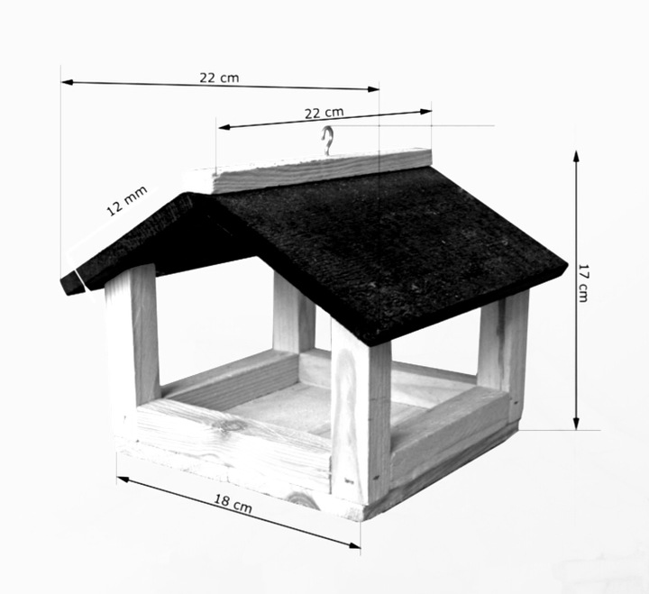 - Dach wystający poza obrys konstrukcji chroni umieszczone w nim pożywienie.
