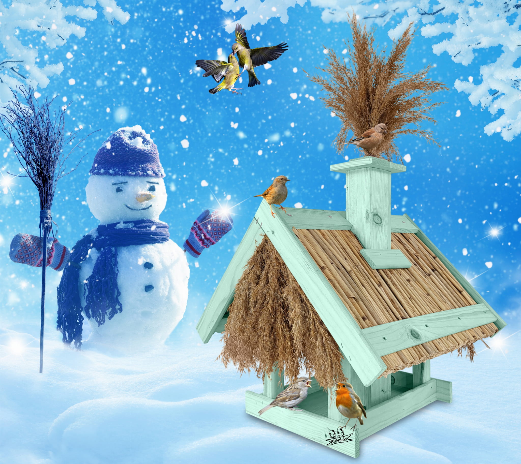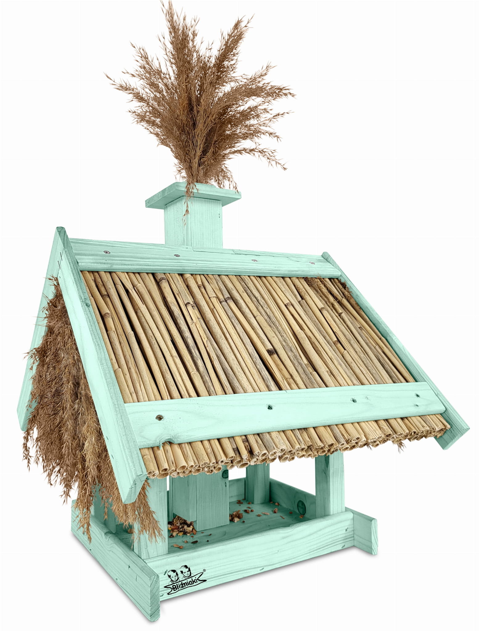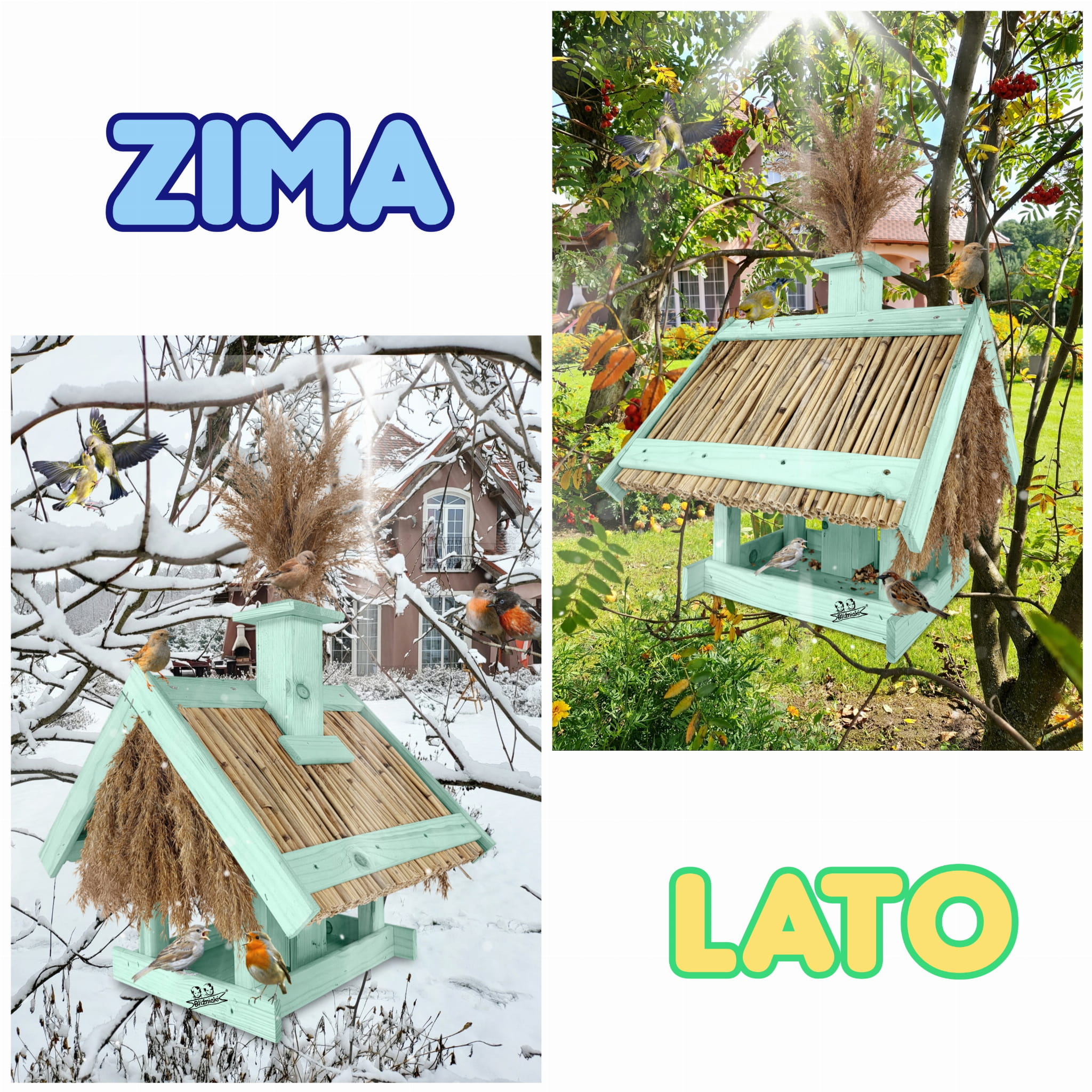 Karmnik Dla Ptaków Z Trzciną Z Dozownikiem Ziaren Zimowy Domek Kolor Morski Zielony Pastelowy K2 MRP
