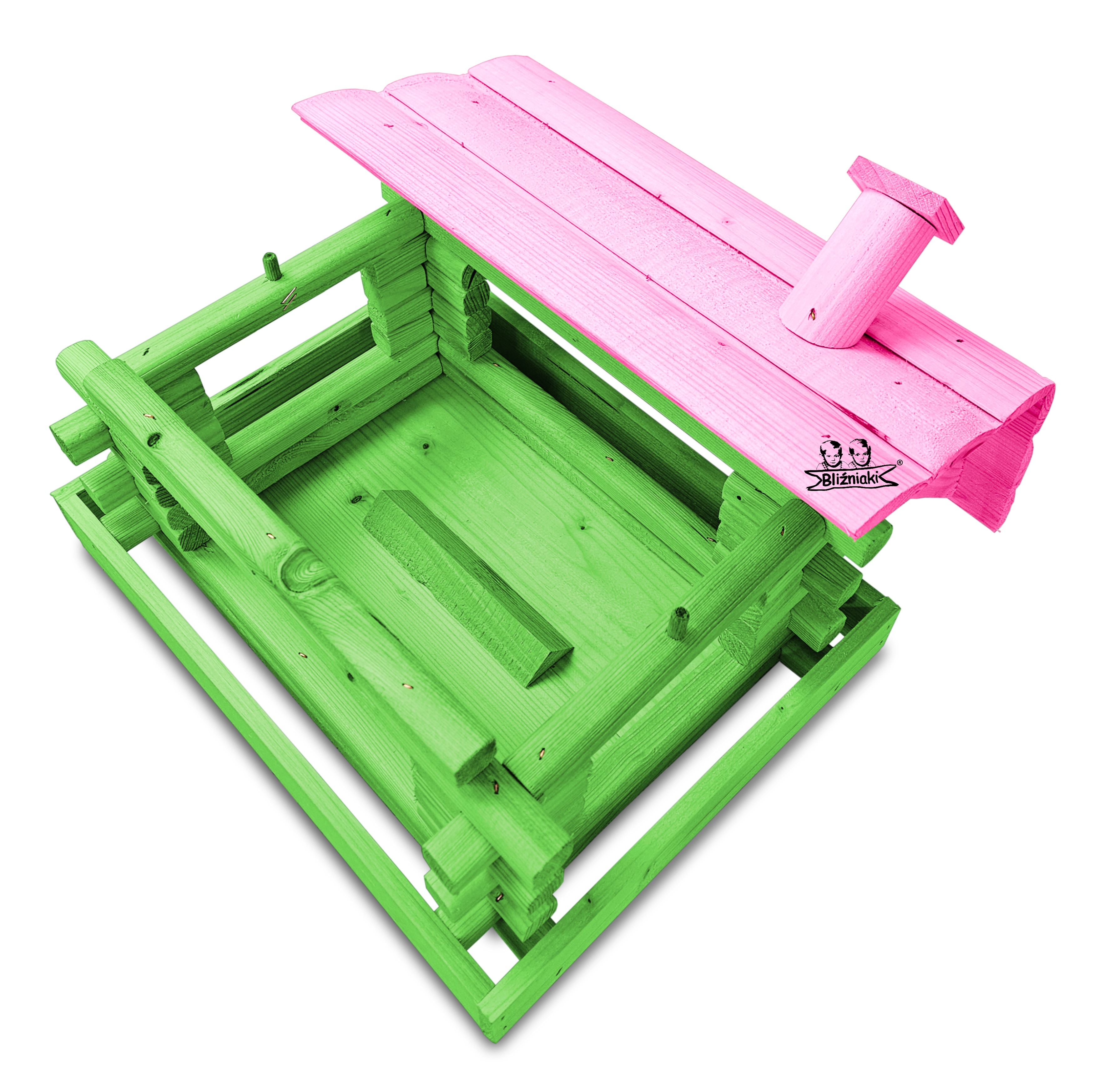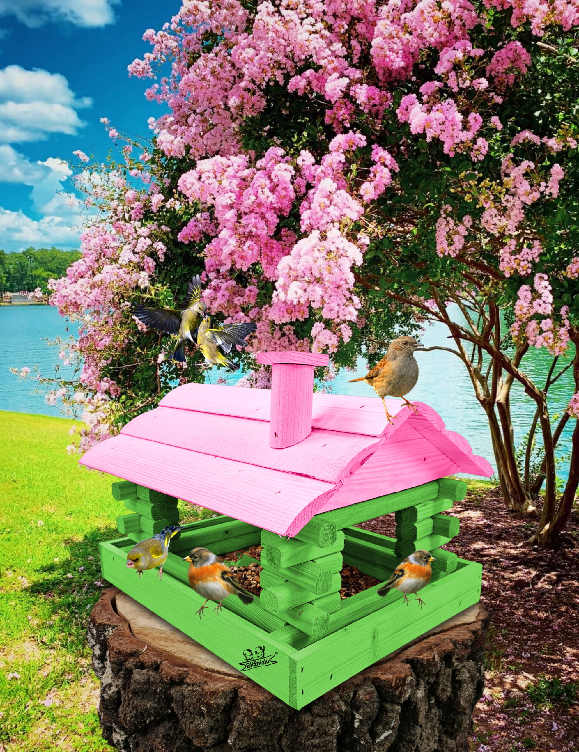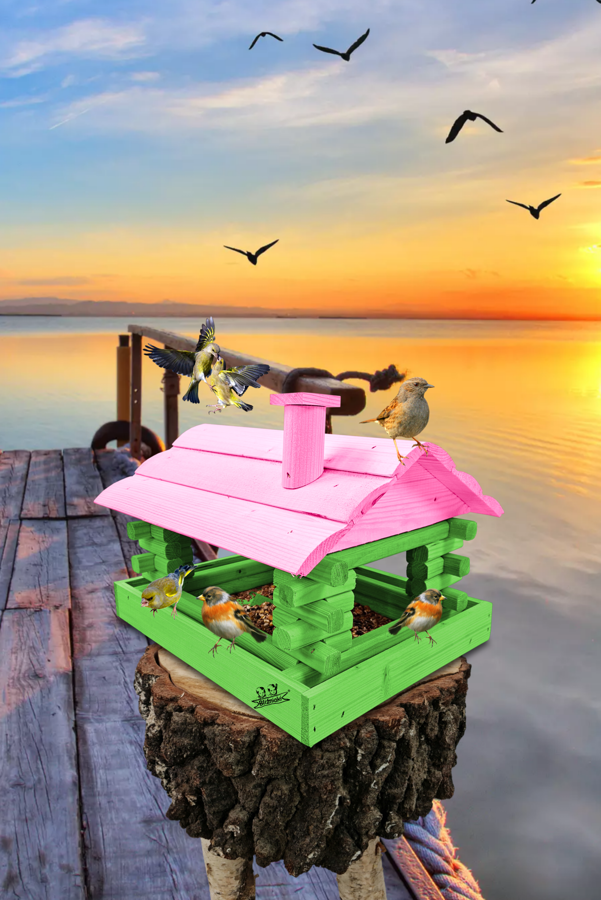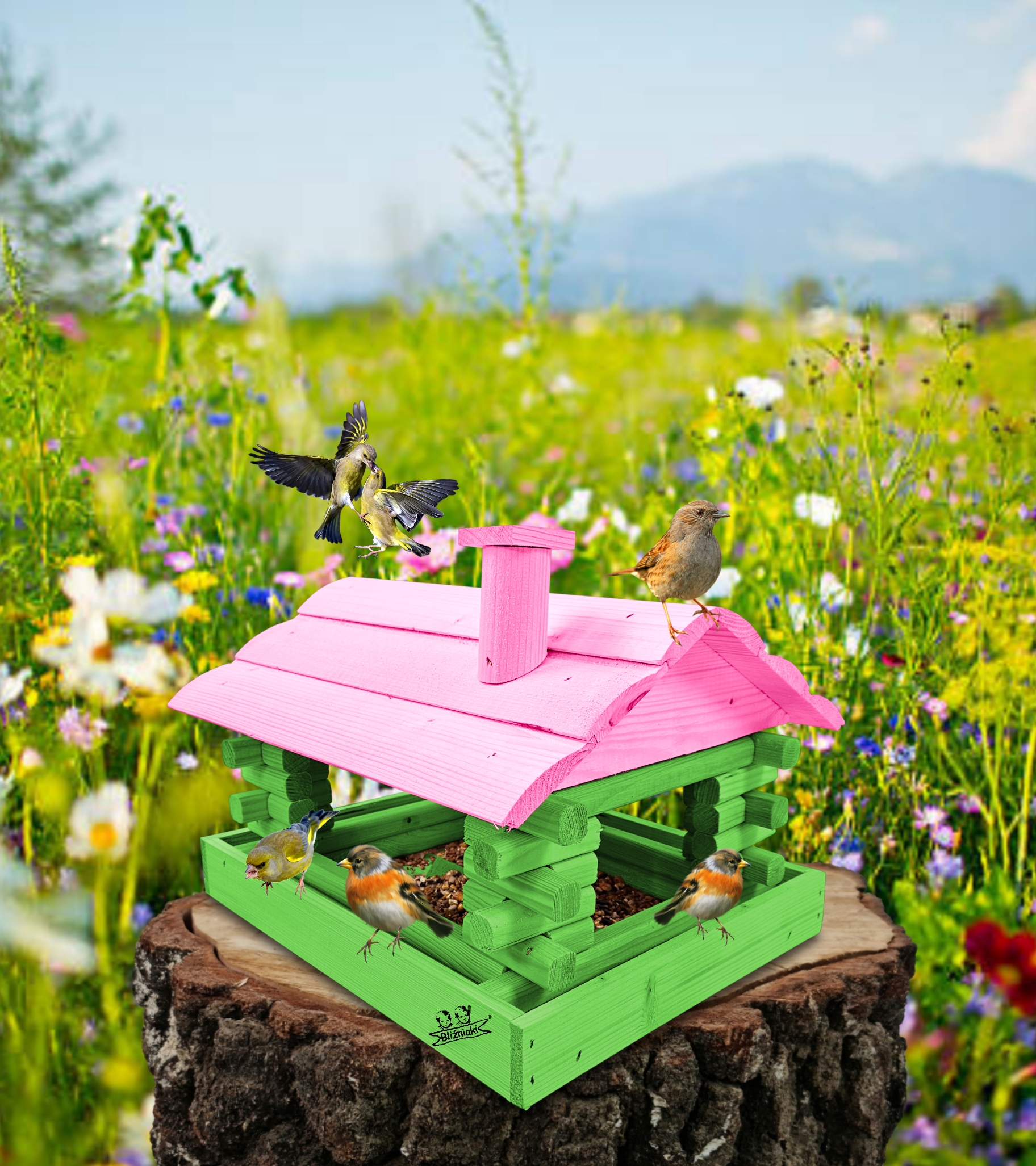 Karmnik Drewniany Zielony z Różowym z Otwieranym Dachem na Balkon Taras Okno Karmniki Ekologiczne Ozdobne Schronienie Domek Karmniczek na Pokarm dla Ptaków K182a ZZ RÓP