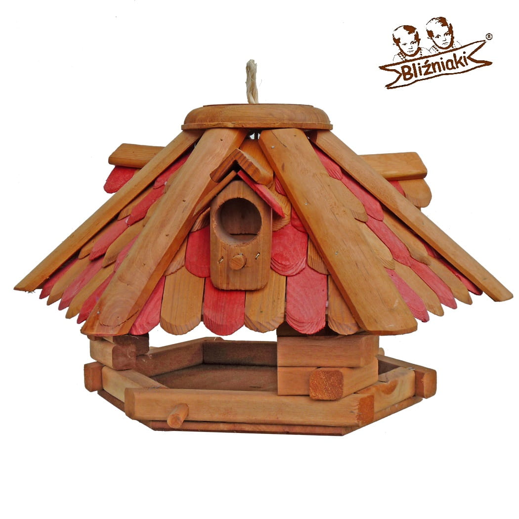 Karmnik dla Ptaków Dachówkowy Duży do powieszenia Zawieszka Sznurek Kolorowy Czerwony (K5a CB)
