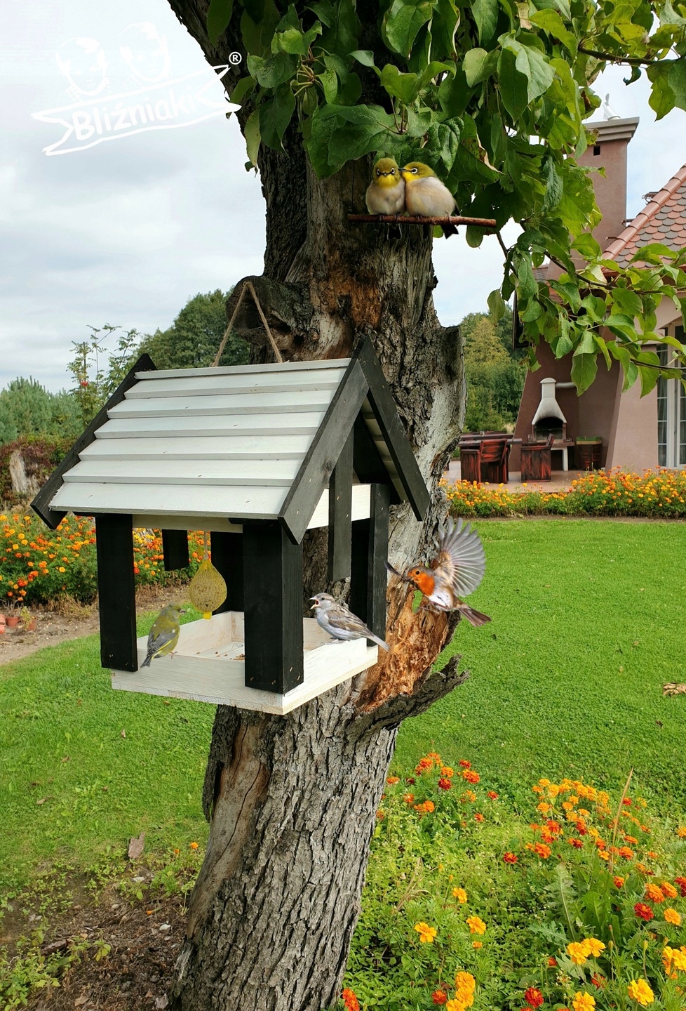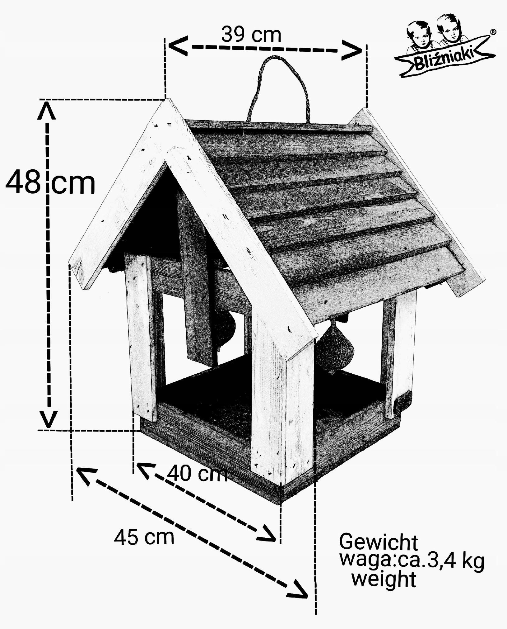 Przedmiotem sprzedaży jest ozdobny drewniany Karmnik dla ptaków model K200 BI CZ.