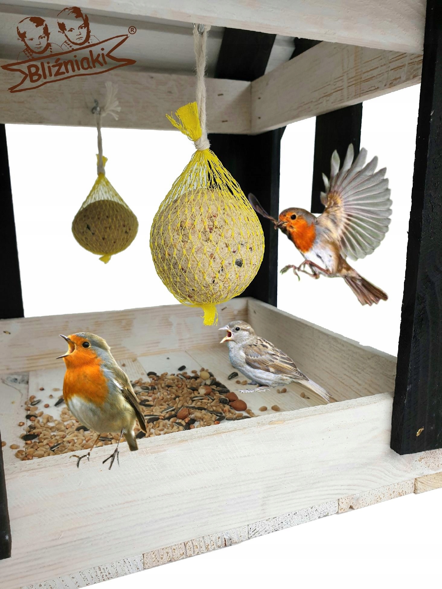 Karmnik dla Ptaków zimujących XXL Drewniana budka (K200 BI CZ)