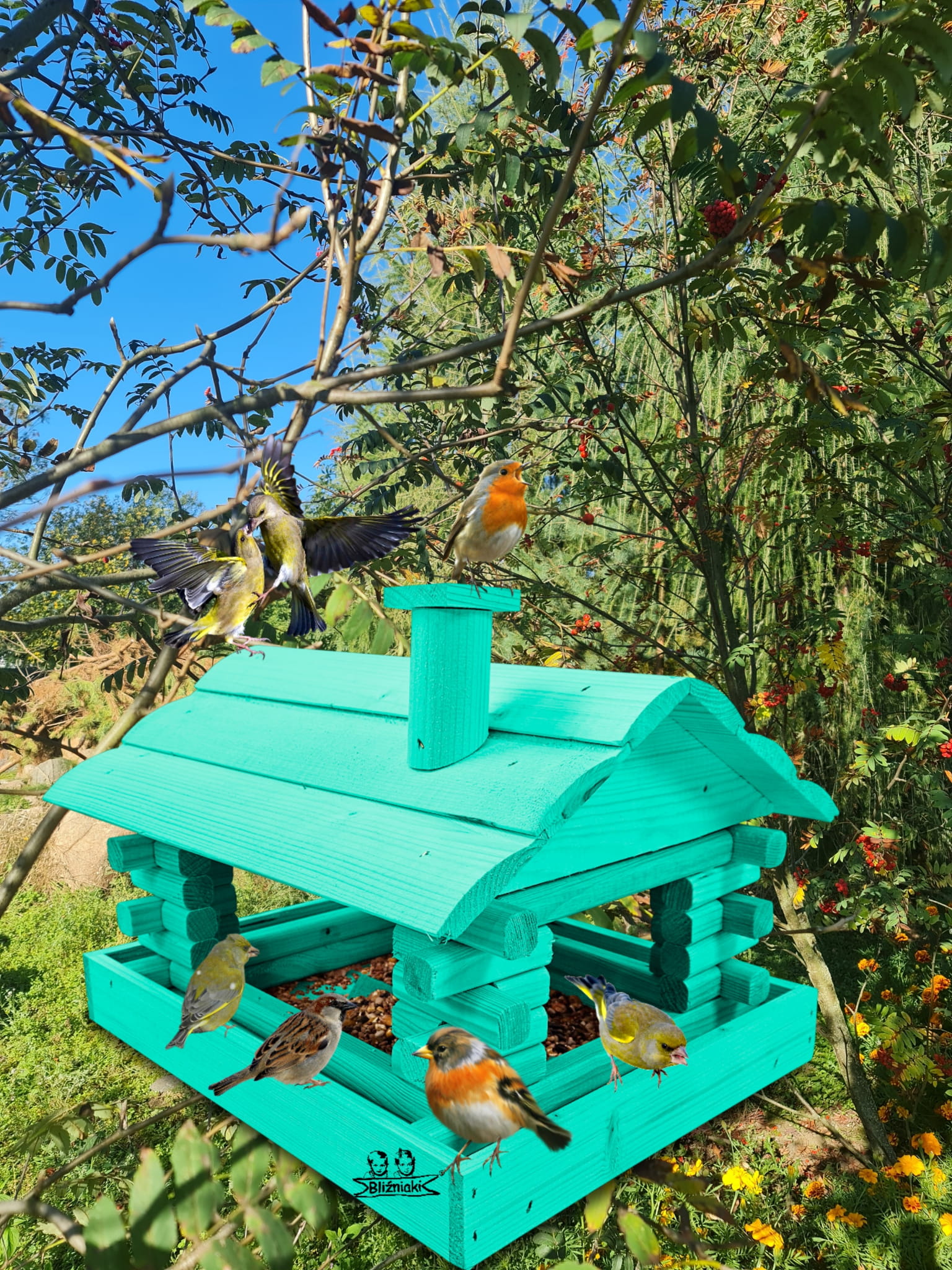Karmnik wykonany z trwałego drewna, o starannym wykończeniu, przypomina klasyczny domek z kominem. Zapewnia ptakom bezpieczne i przytulne miejsce do odpoczynku oraz dostępu do pożywienia w zimniejszych miesiącach.