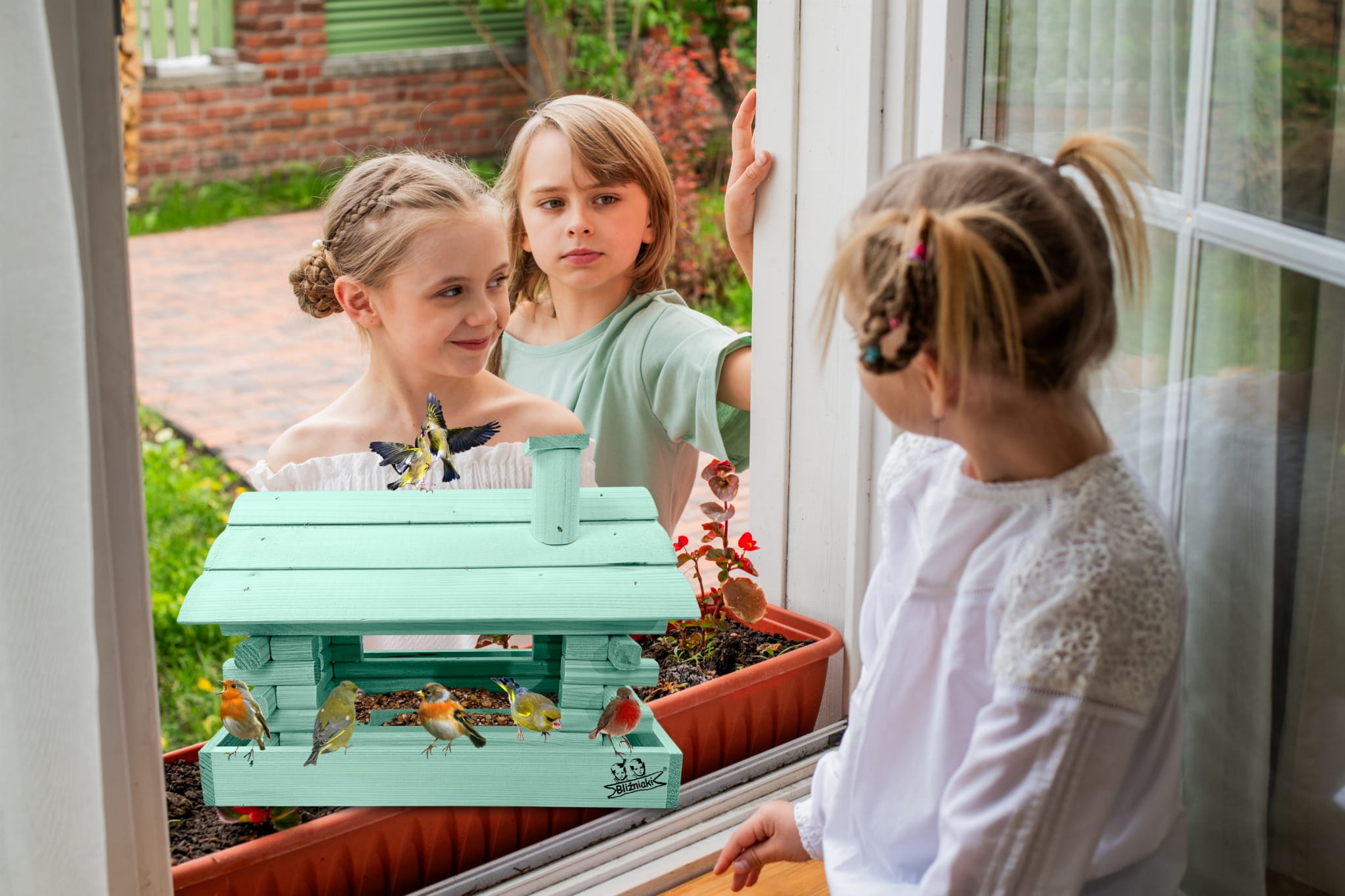 Okno – Są także karmniki, które można zamontować bezpośrednio na szybie okna za pomocą przyssawek. To idealna opcja do obserwacji ptaków z bliska.
