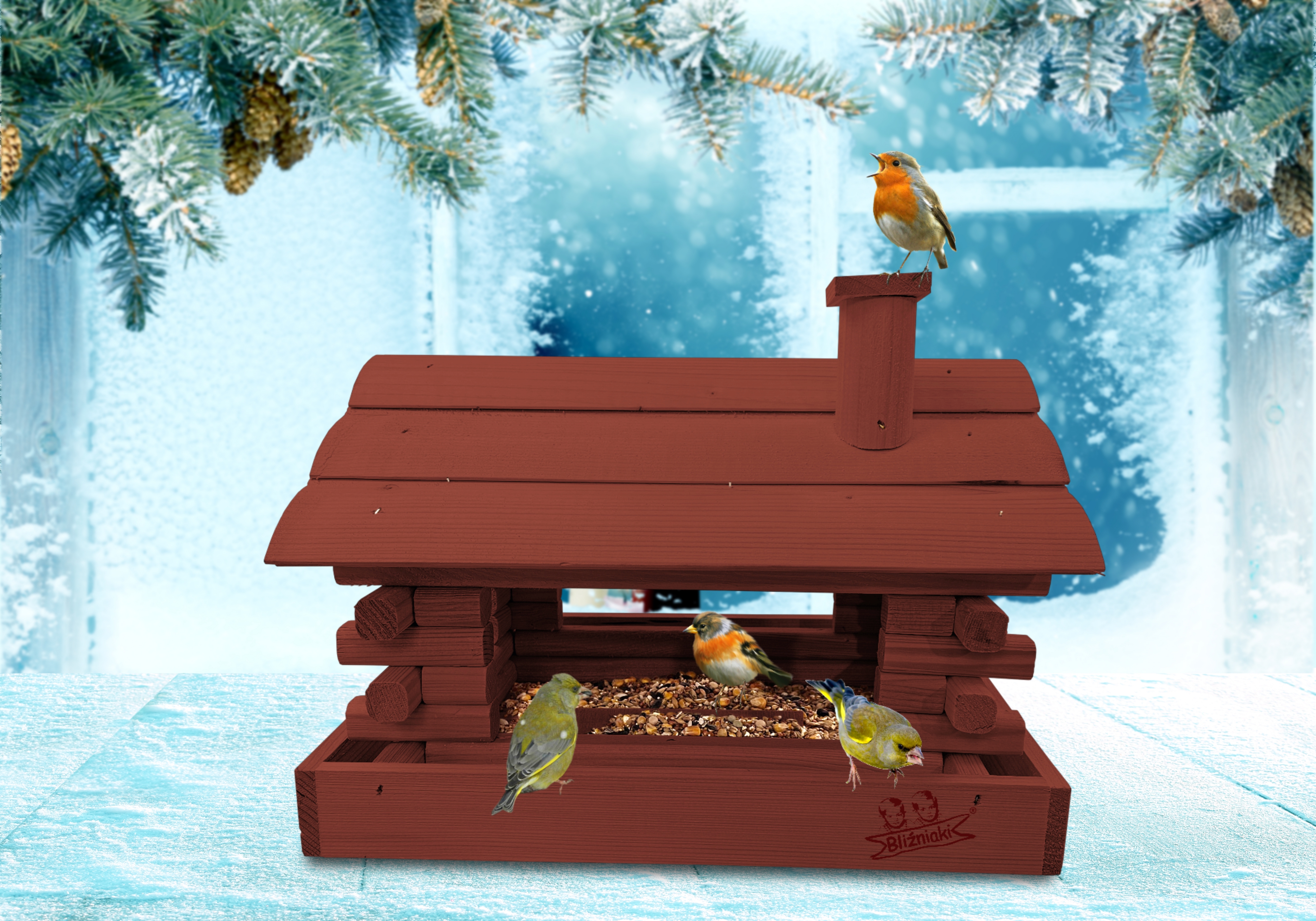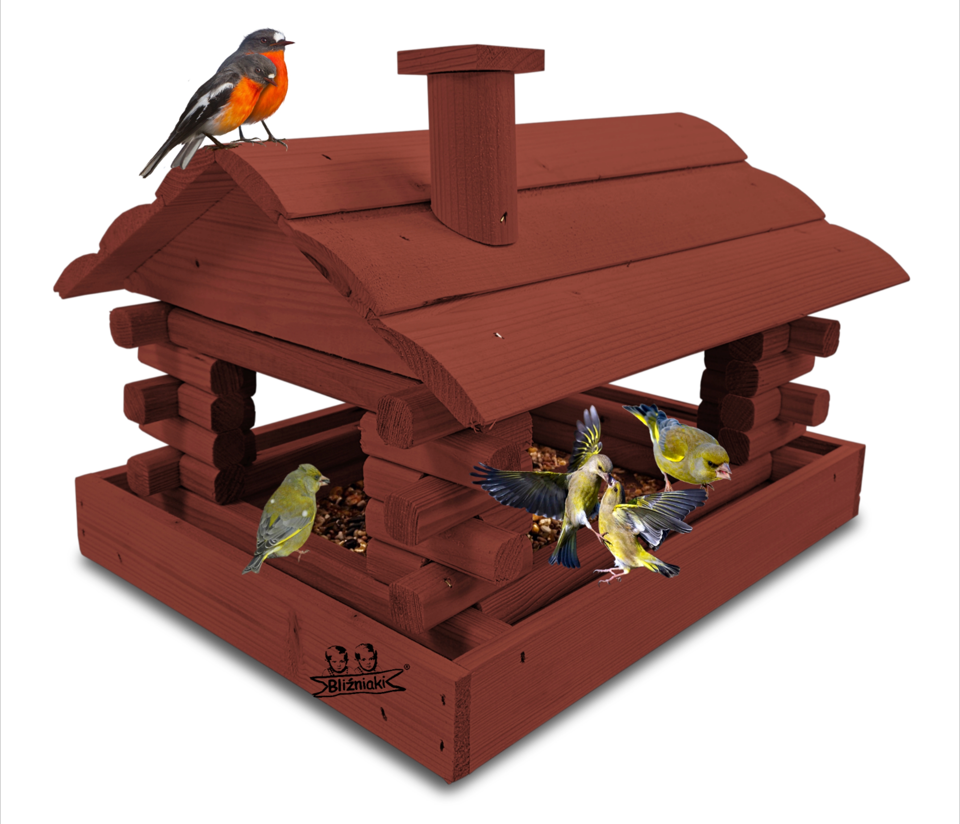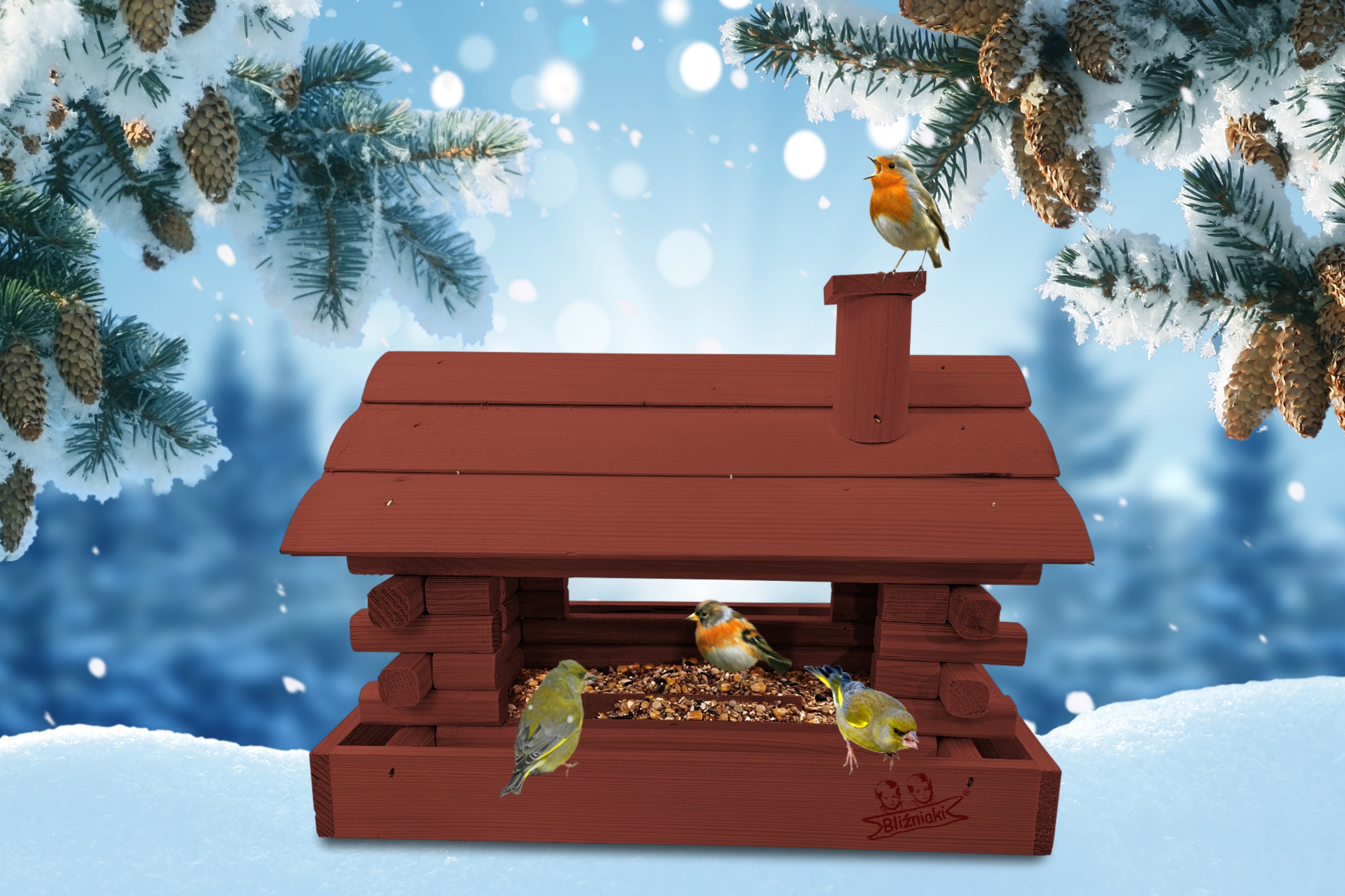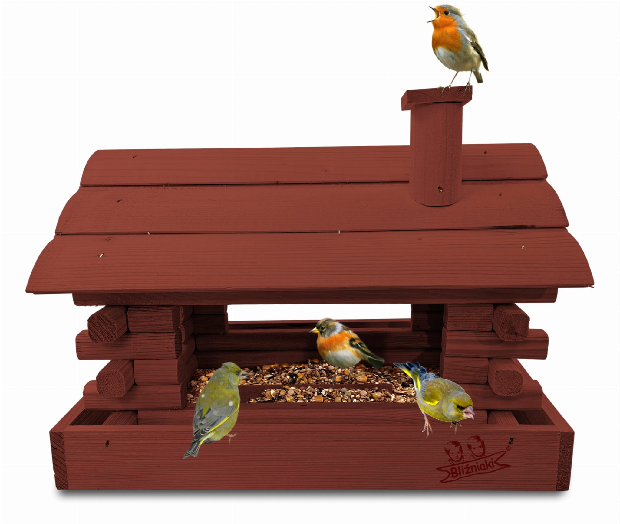 Karmnik wykonany z trwałego drewna, o starannym wykończeniu, przypomina klasyczny domek z kominem. Zapewnia ptakom bezpieczne i przytulne miejsce do odpoczynku oraz dostępu do pożywienia w zimniejszych miesiącach.