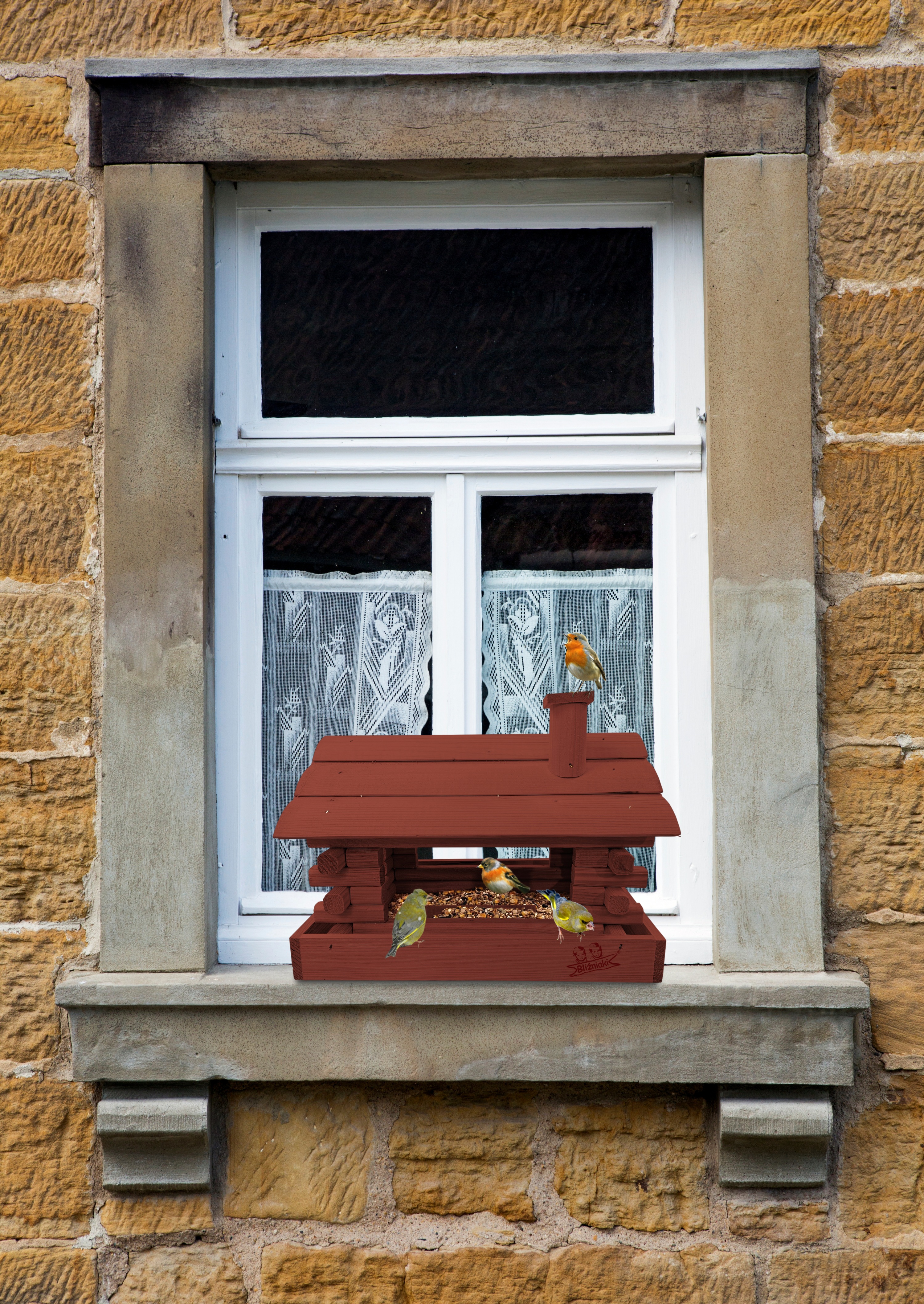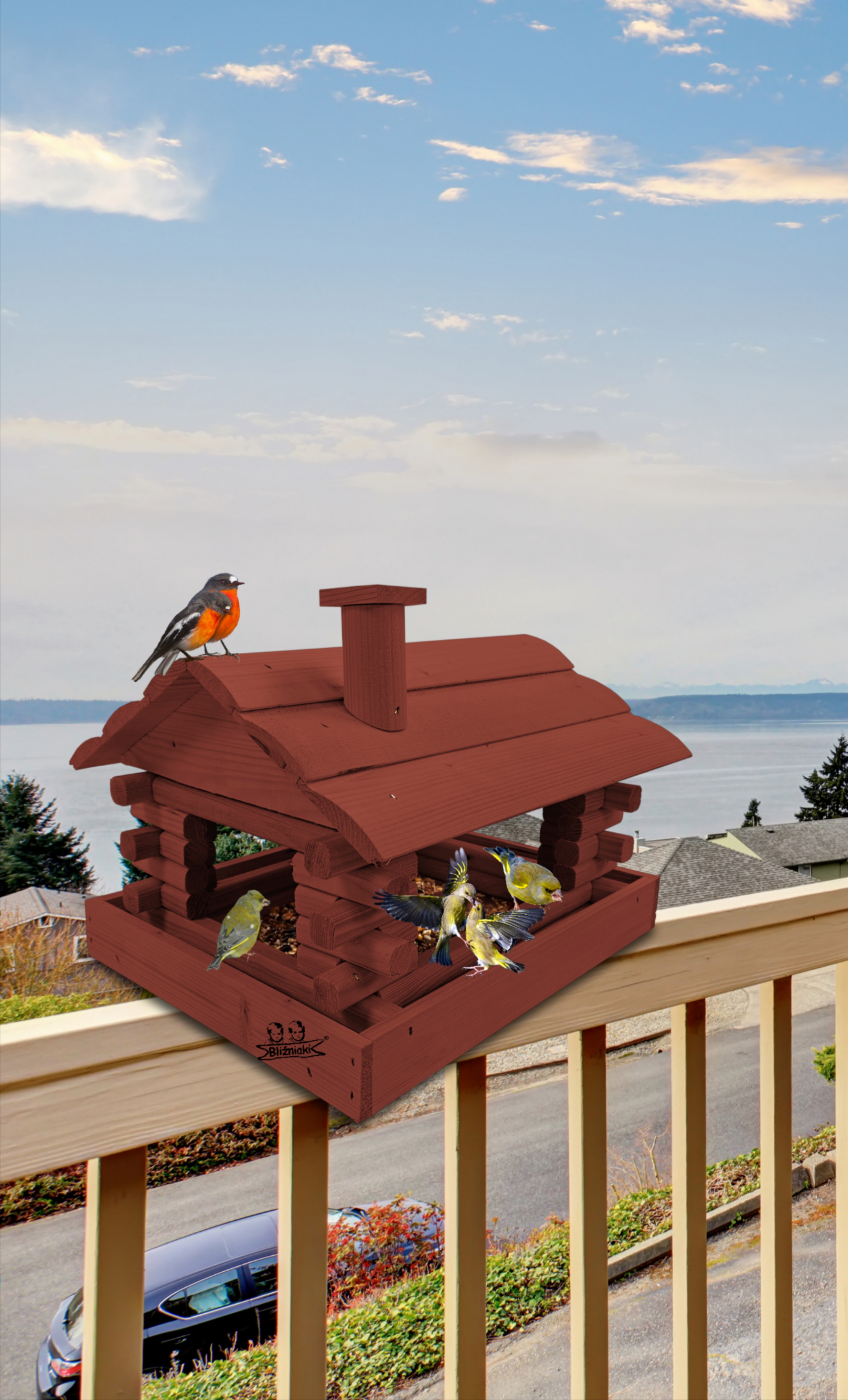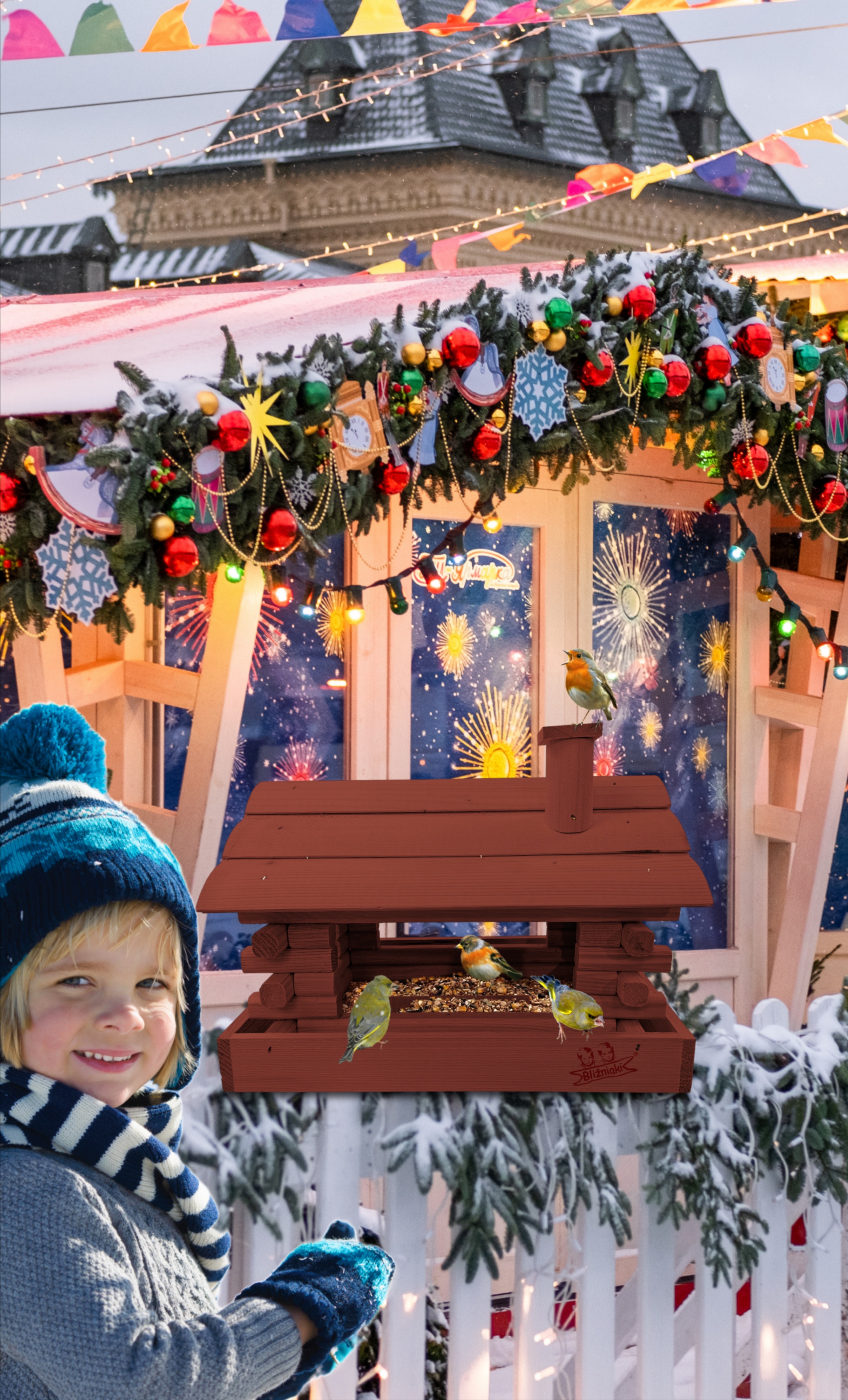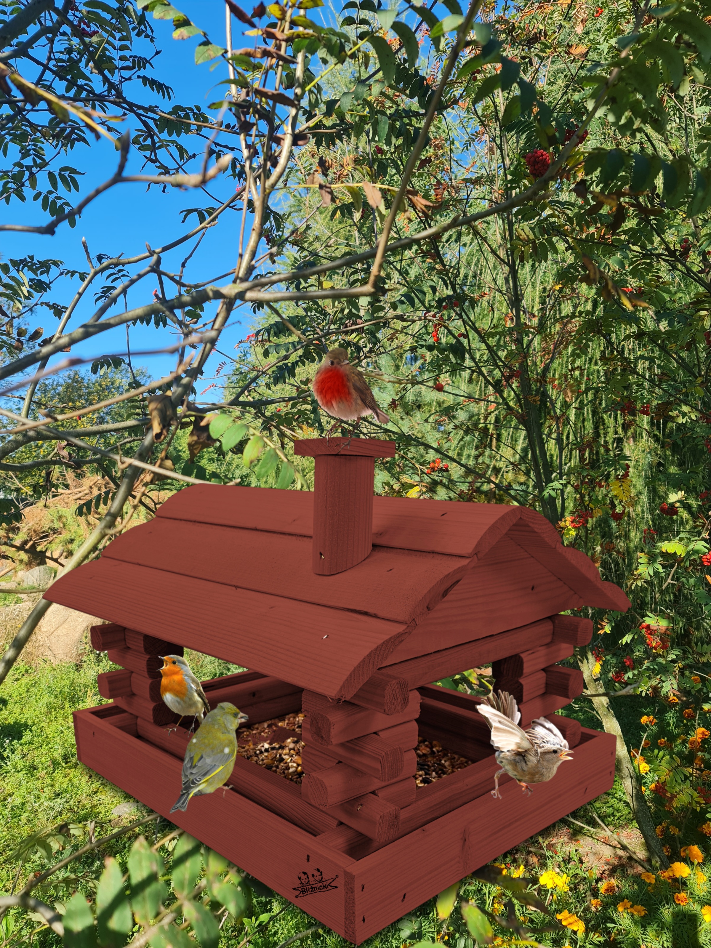 Karmnik wykonany z trwałego drewna, o starannym wykończeniu, przypomina klasyczny domek z kominem. Zapewnia ptakom bezpieczne i przytulne miejsce do odpoczynku oraz dostępu do pożywienia w zimniejszych miesiącach.