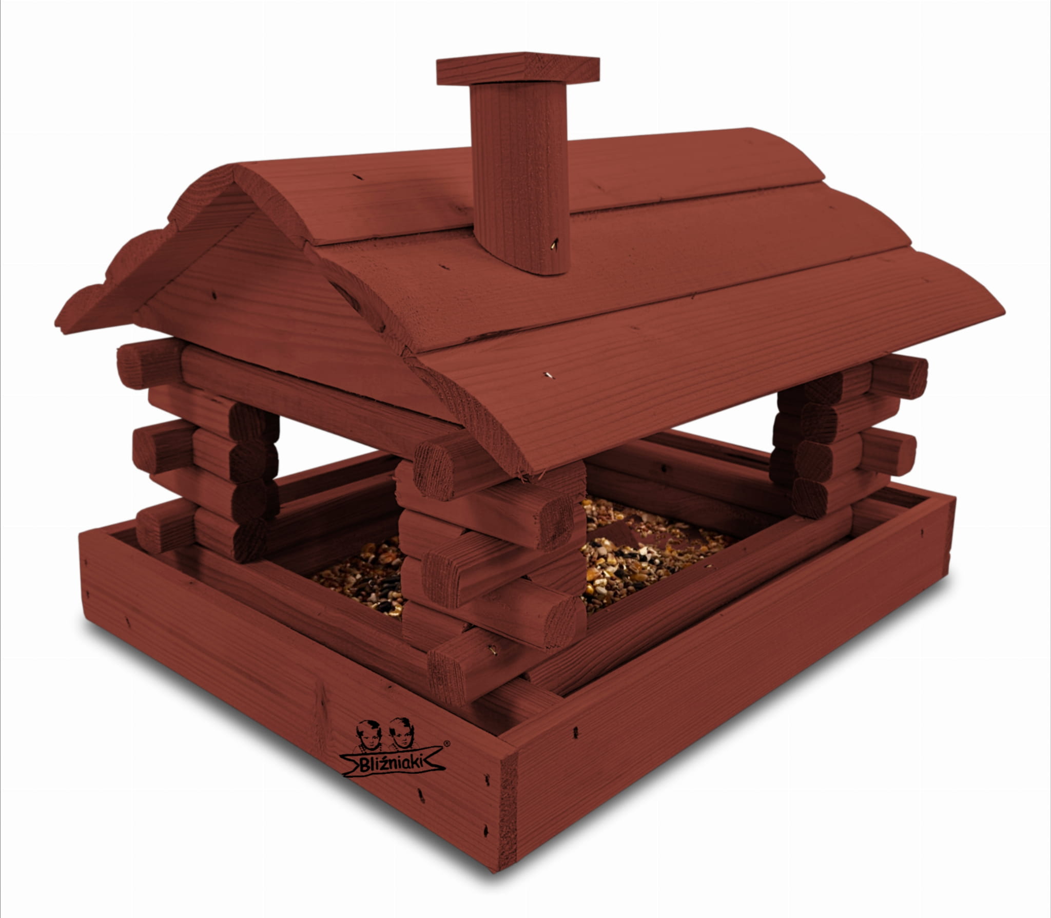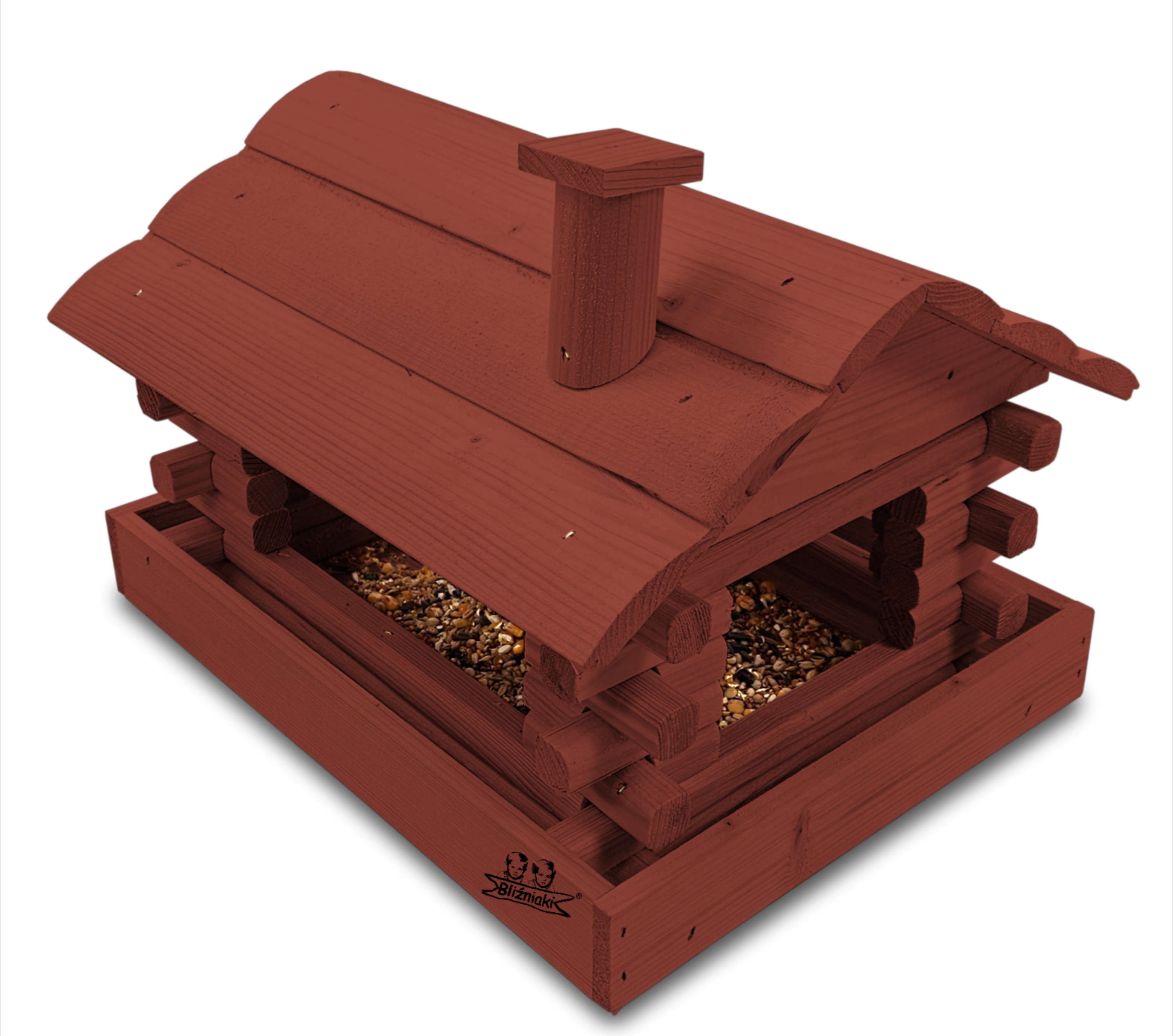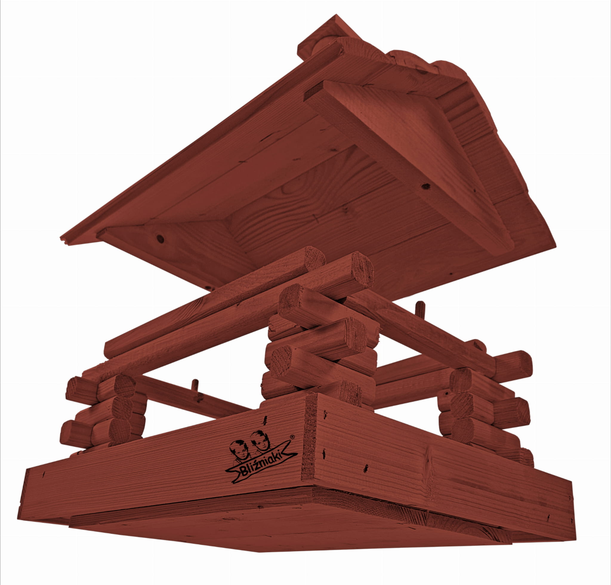Karmnik w kolorze brązowym został zaprojektowany w taki sposób, aby sprostać każdym warunkom atmosferycznym przez cały rok. Wykonany w całości z impregnowanego ekologicznie drewna uzyskał trwałość i odporność na szkodliwe działanie wody oraz wilgoci, promieni UV, a także grzybów i pleśni. Może być więc przechowywany przez cały rok na zewnątrz.