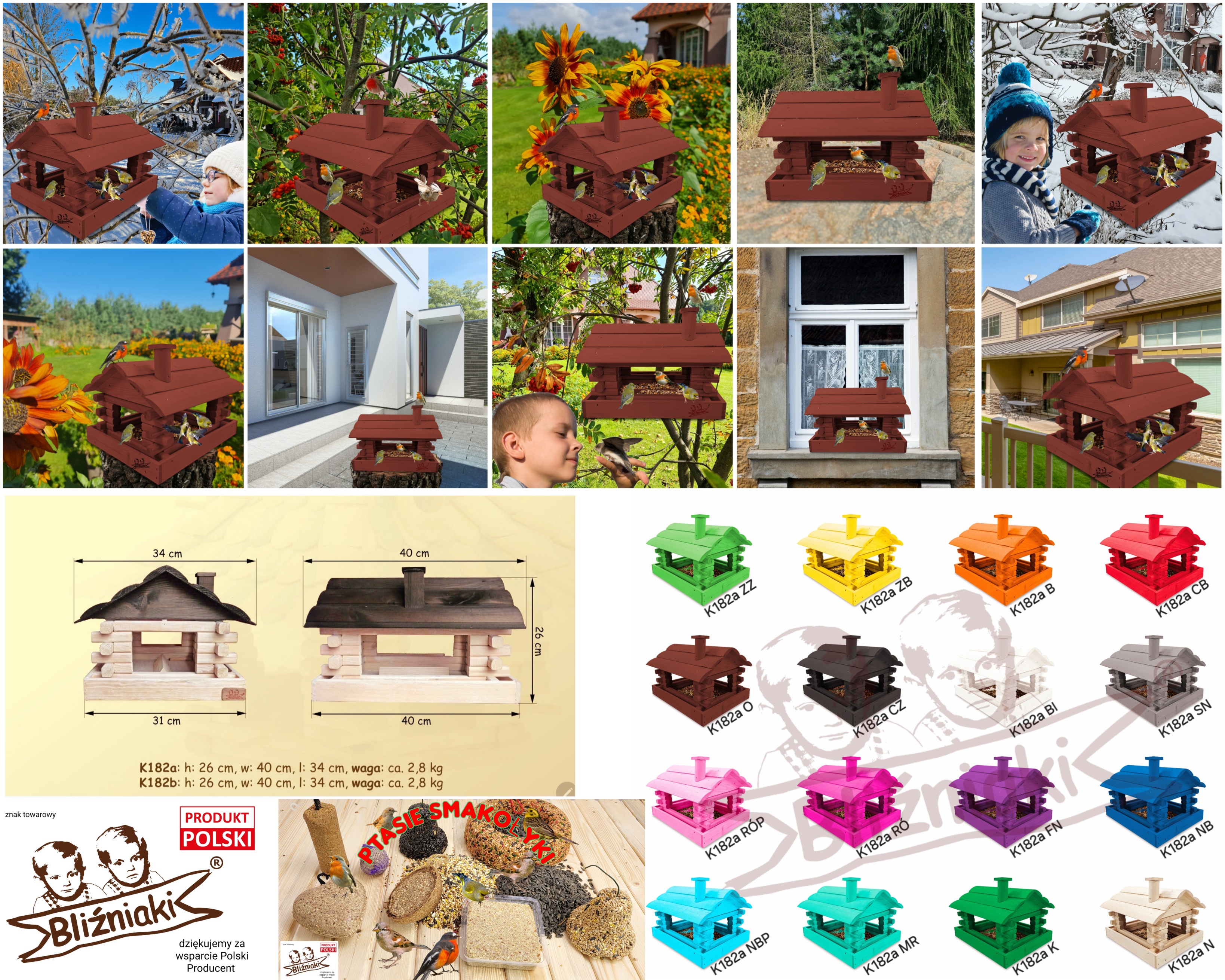 Oferujemy karmniki w różnych wariantach kolorystycznych. Dzięki temu możesz dopasować kolor karmnika do swojego stylu oraz otoczenia. Wybierz naturalne drewno, klasyczną biel, ciepły brąz lub inne opcje kolorystyczne.