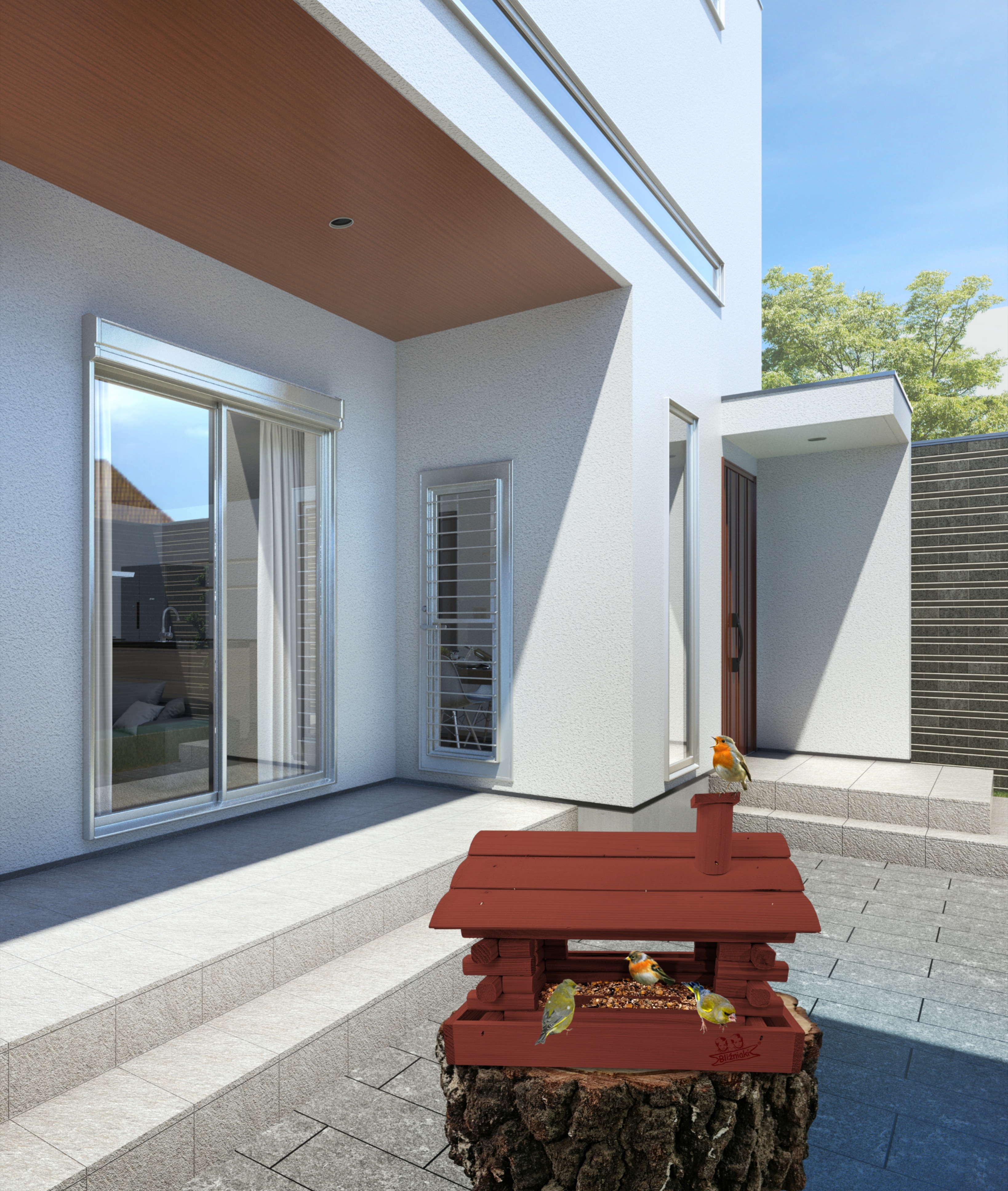 Taras – Na tarasie możesz ustawić karmnik na stole, balustradzie lub specjalnym stojaku. To świetne miejsce, gdzie ptaki będą miały przestrzeń, a Ty łatwy dostęp do uzupełniania karmy.