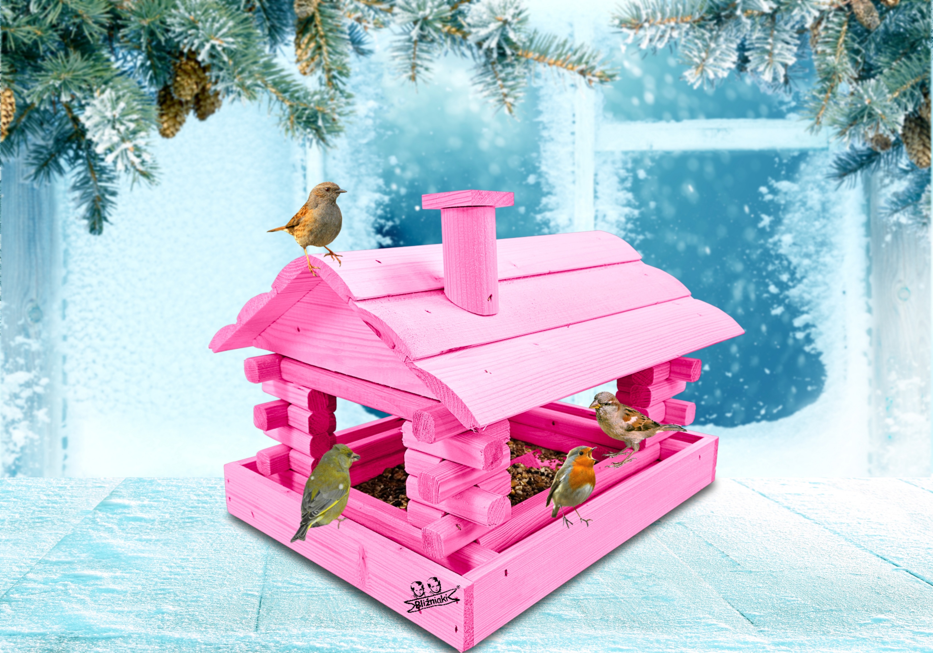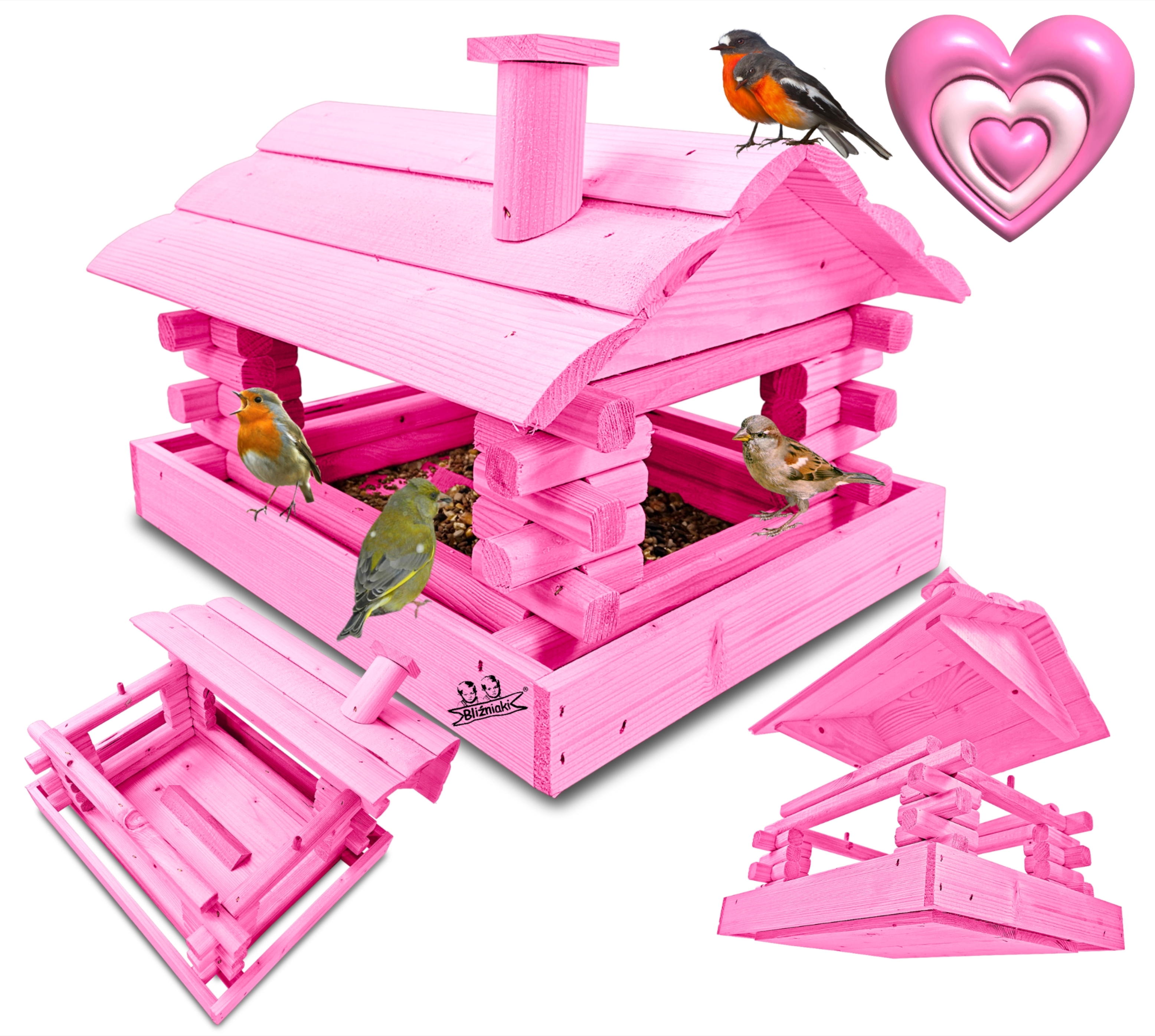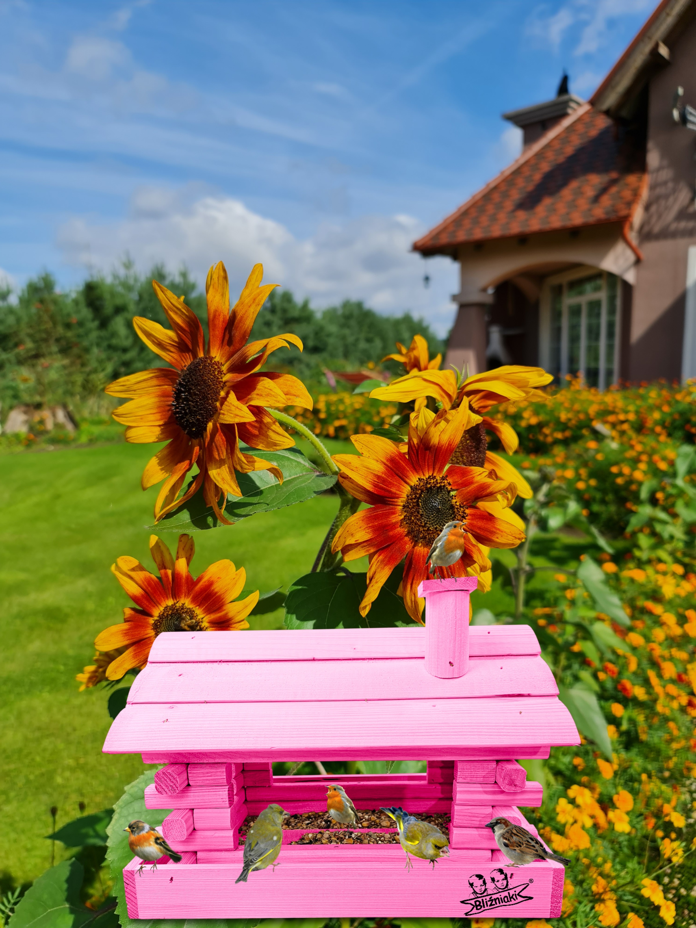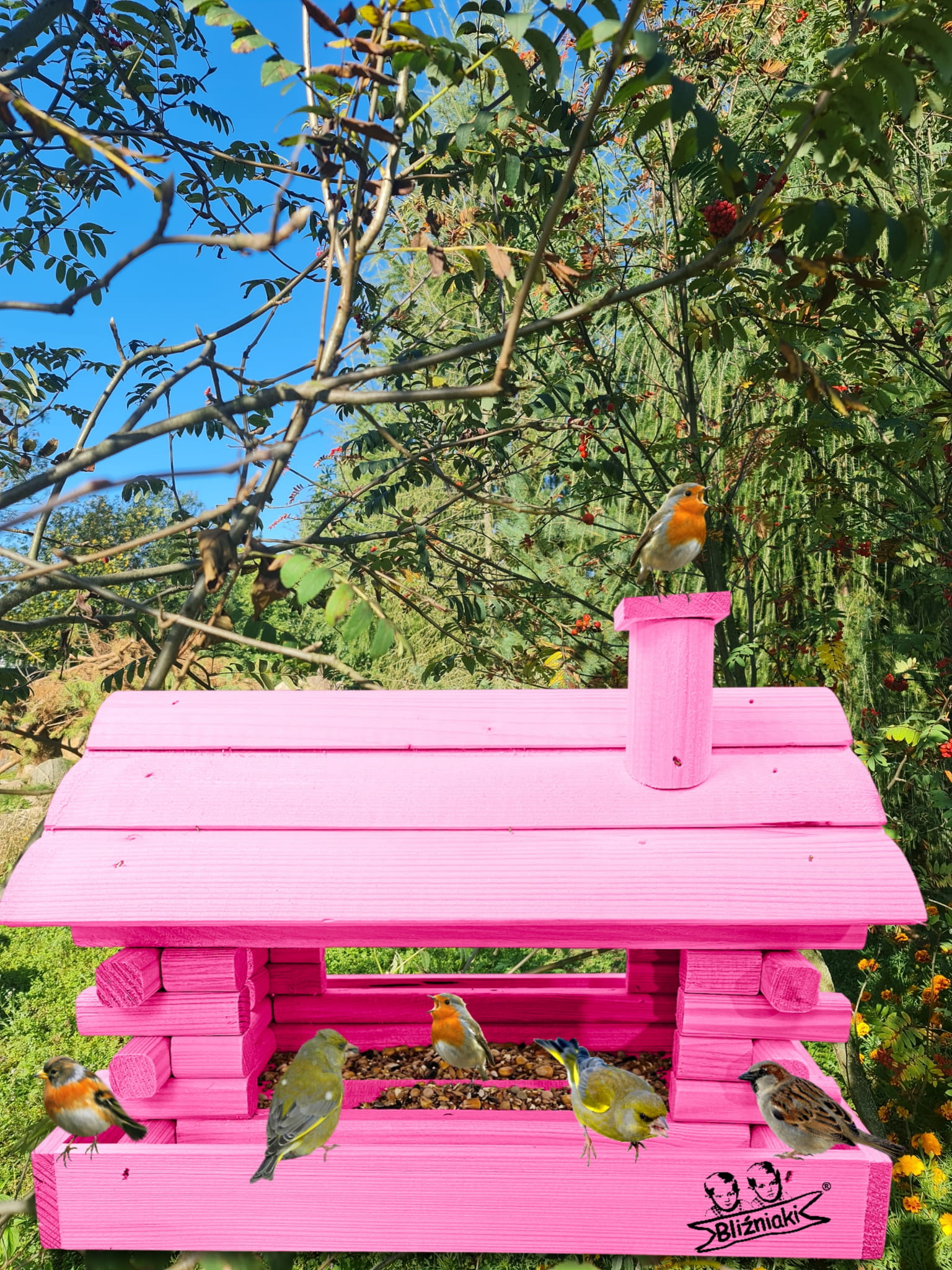 Karmnik wykonany z trwałego drewna, o starannym wykończeniu, przypomina klasyczny domek z kominem. Zapewnia ptakom bezpieczne i przytulne miejsce do odpoczynku oraz dostępu do pożywienia w zimniejszych miesiącach.