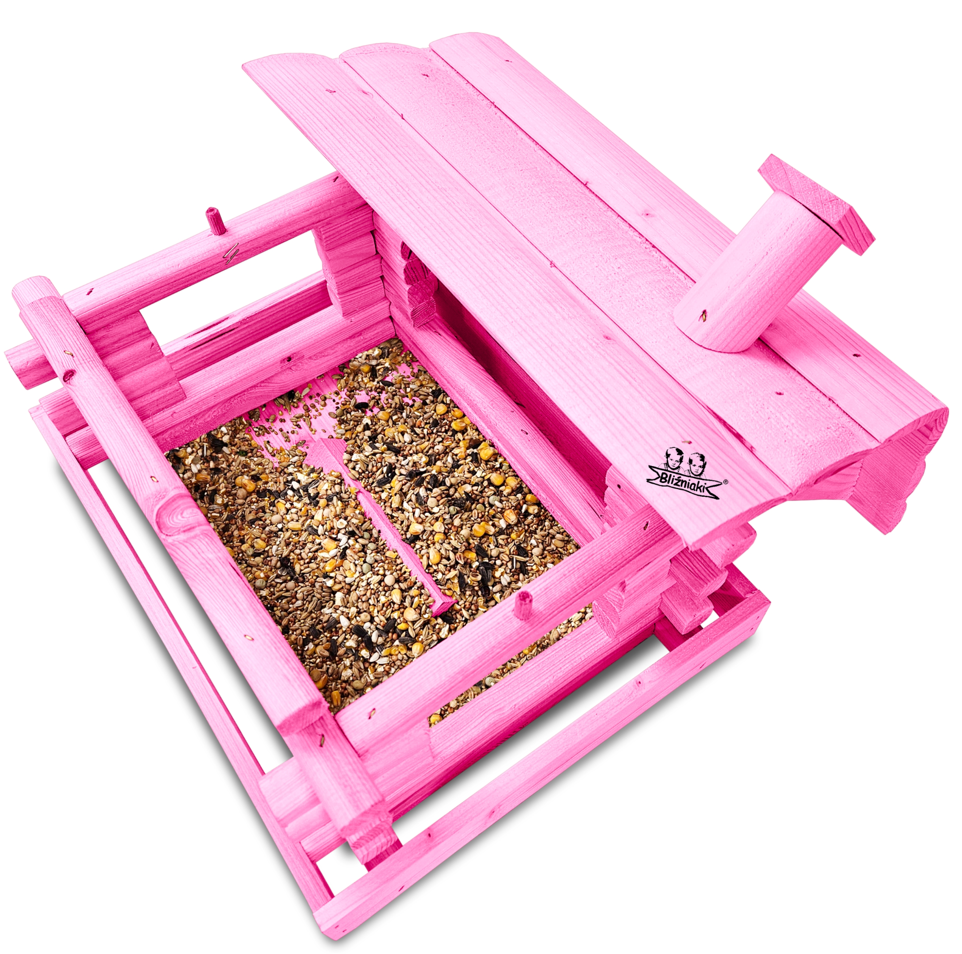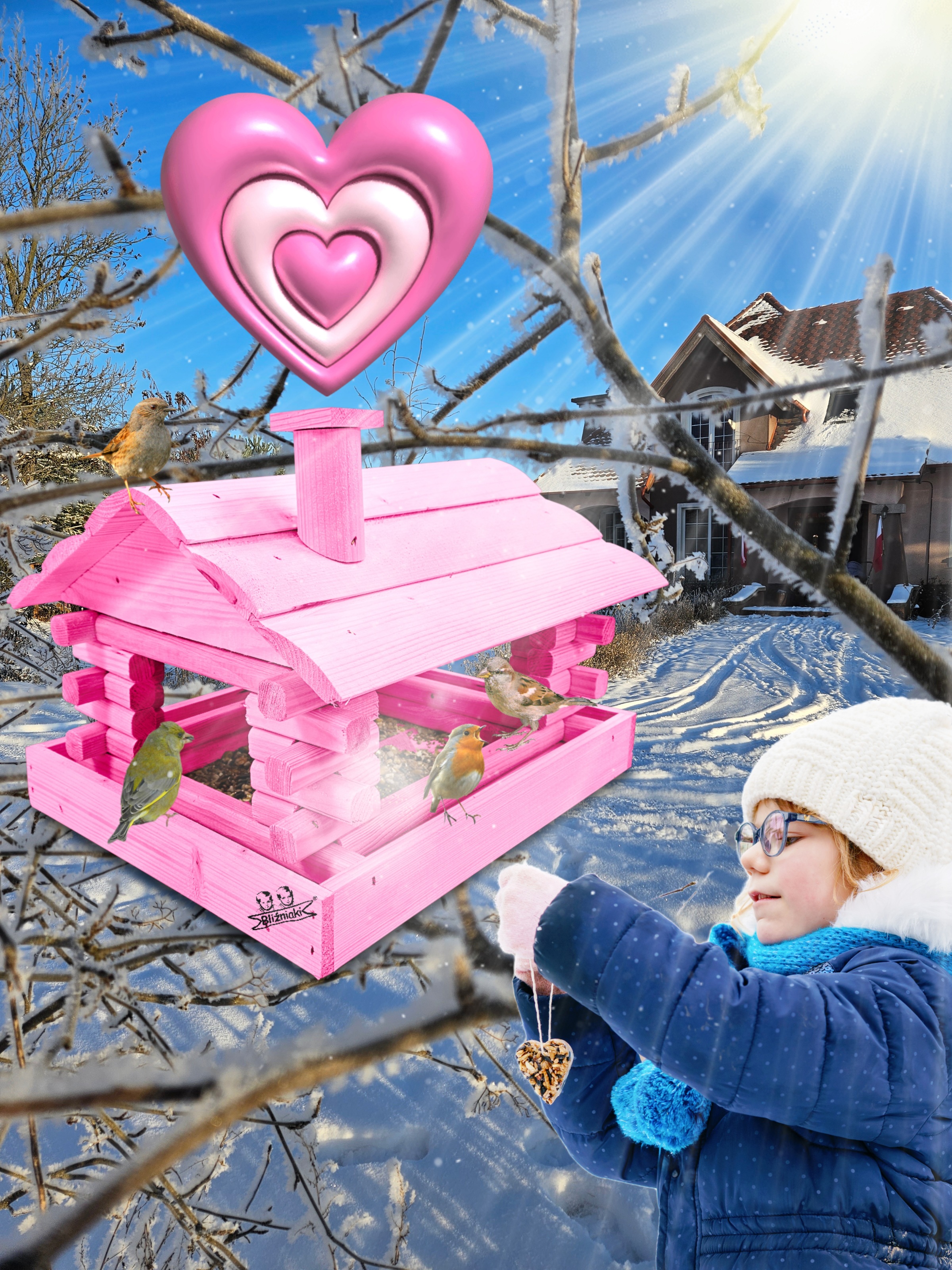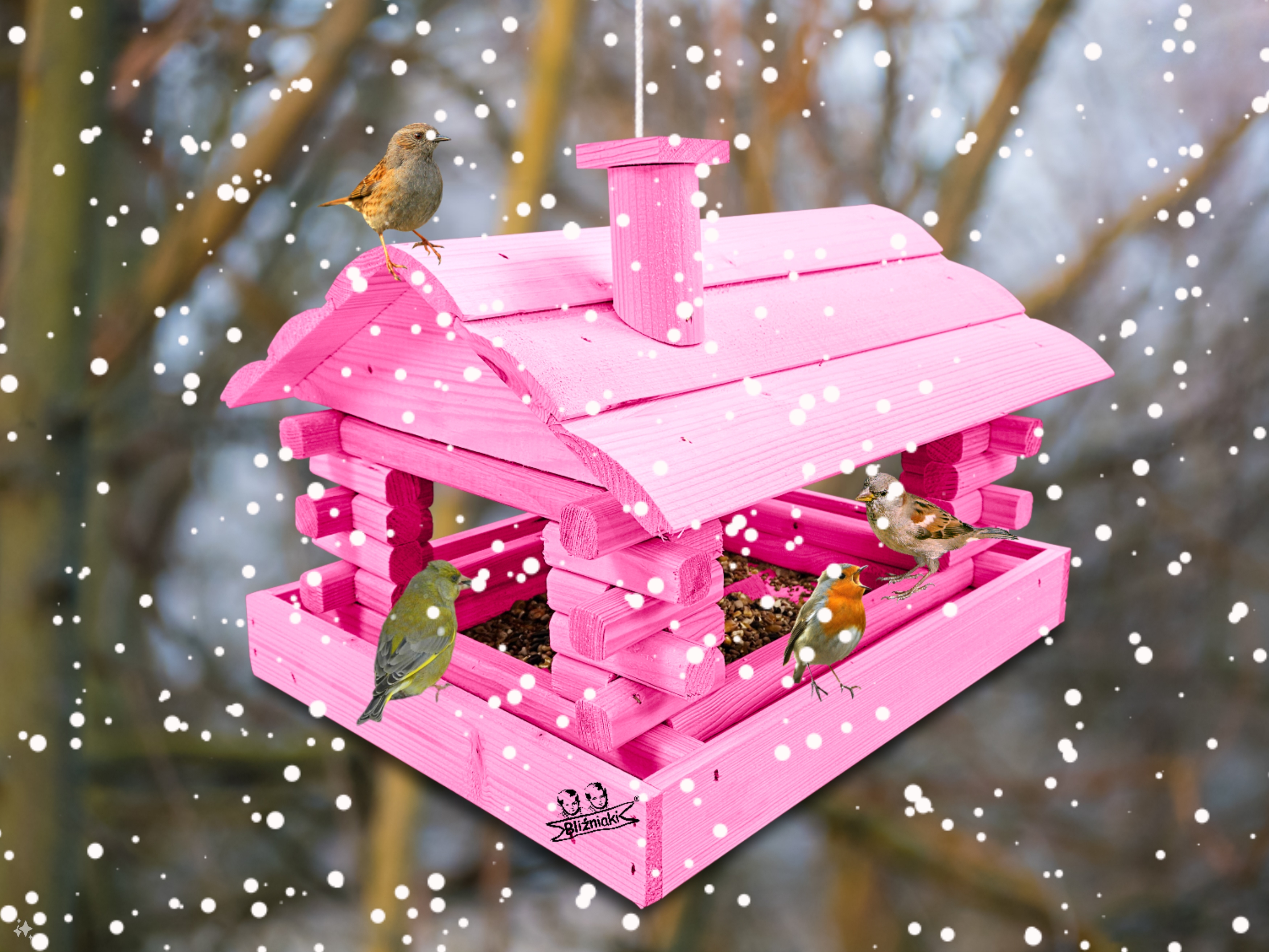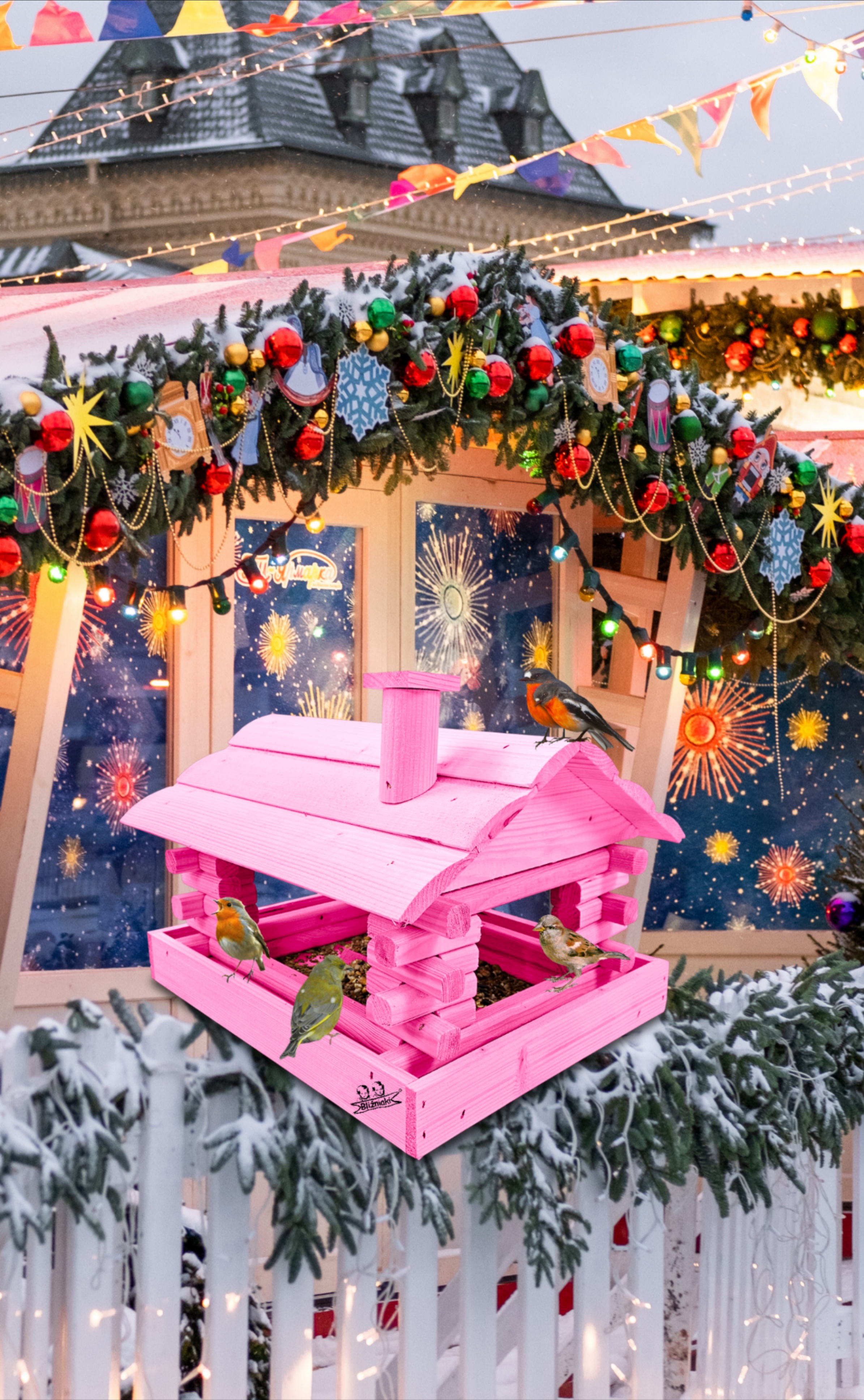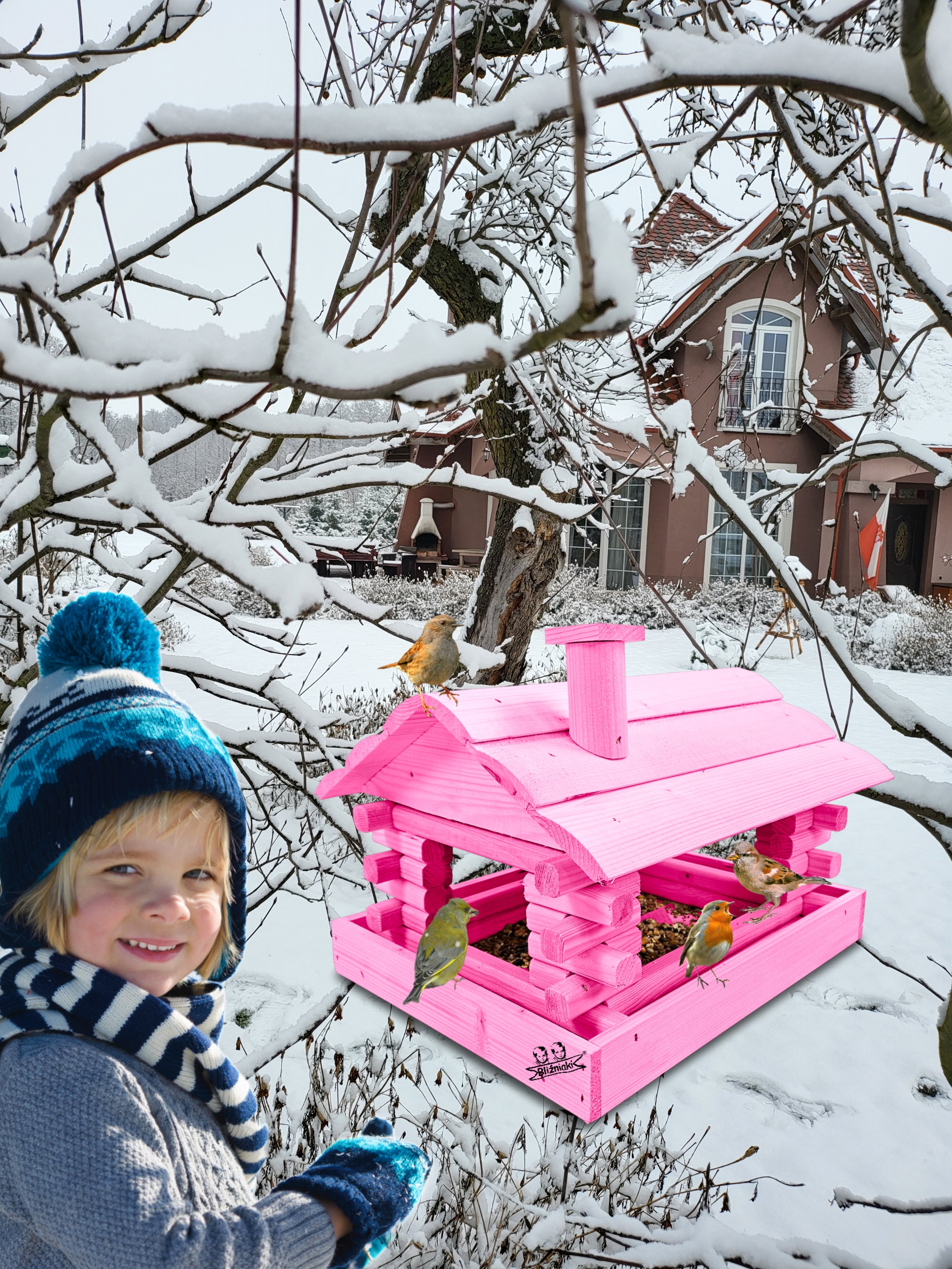 Karmnik wykonany z trwałego drewna, o starannym wykończeniu, przypomina klasyczny domek z kominem. Zapewnia ptakom bezpieczne i przytulne miejsce do odpoczynku oraz dostępu do pożywienia w zimniejszych miesiącach.