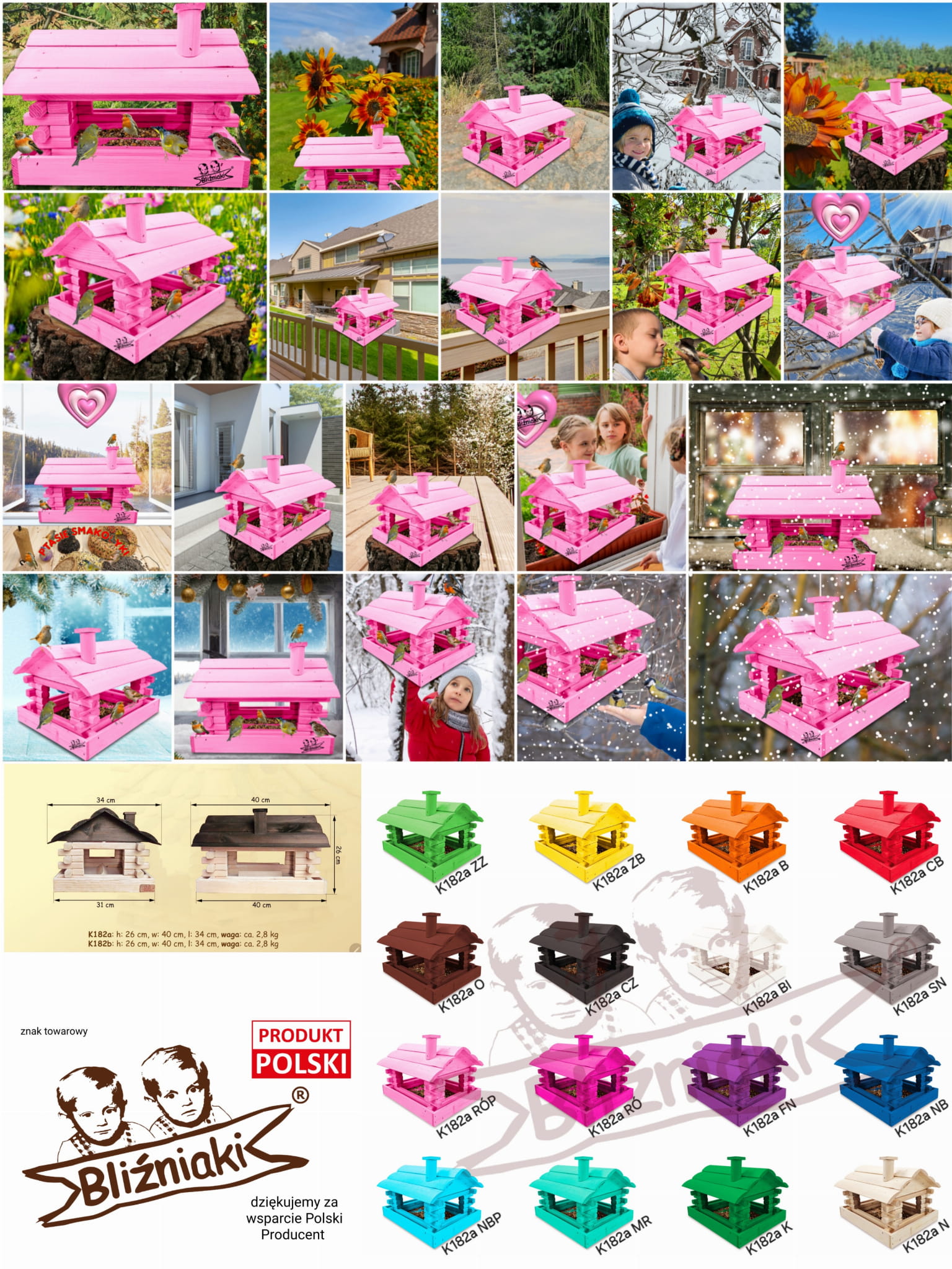 Oferujemy karmniki w różnych wariantach kolorystycznych. Dzięki temu możesz dopasować kolor karmnika do swojego stylu oraz otoczenia. Wybierz naturalne drewno, klasyczną biel, ciepły brąz lub inne opcje kolorystyczne.
