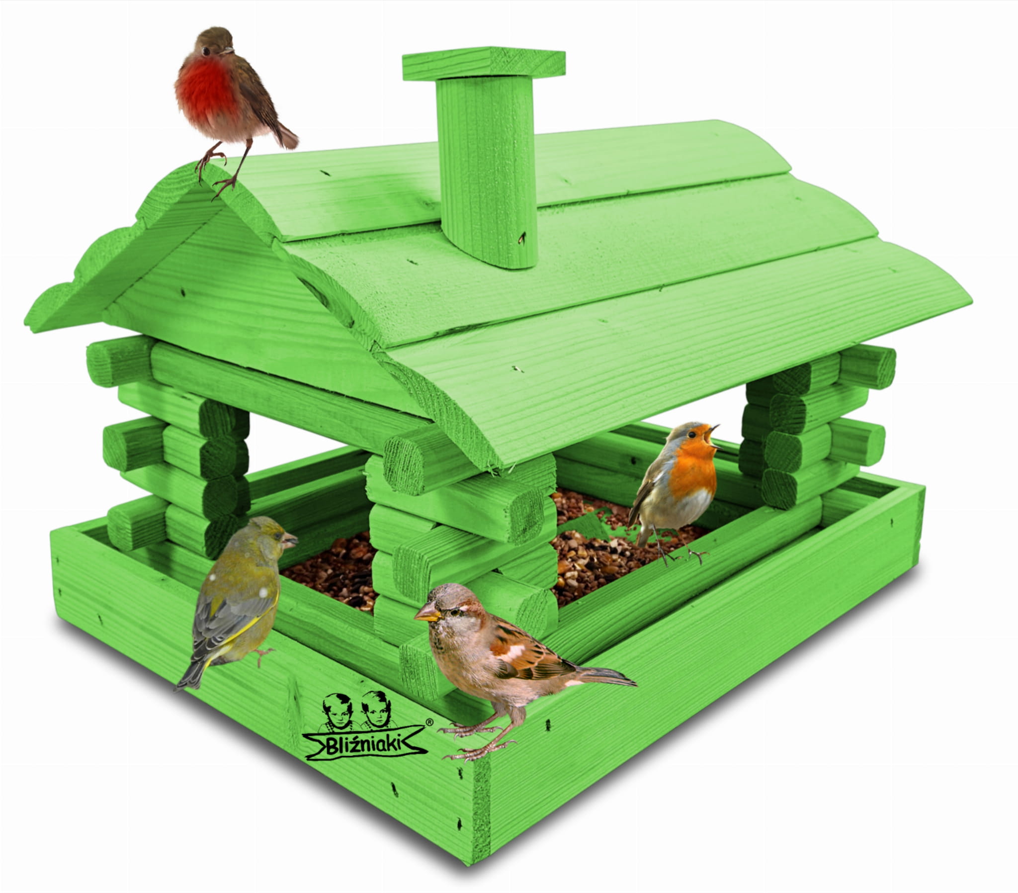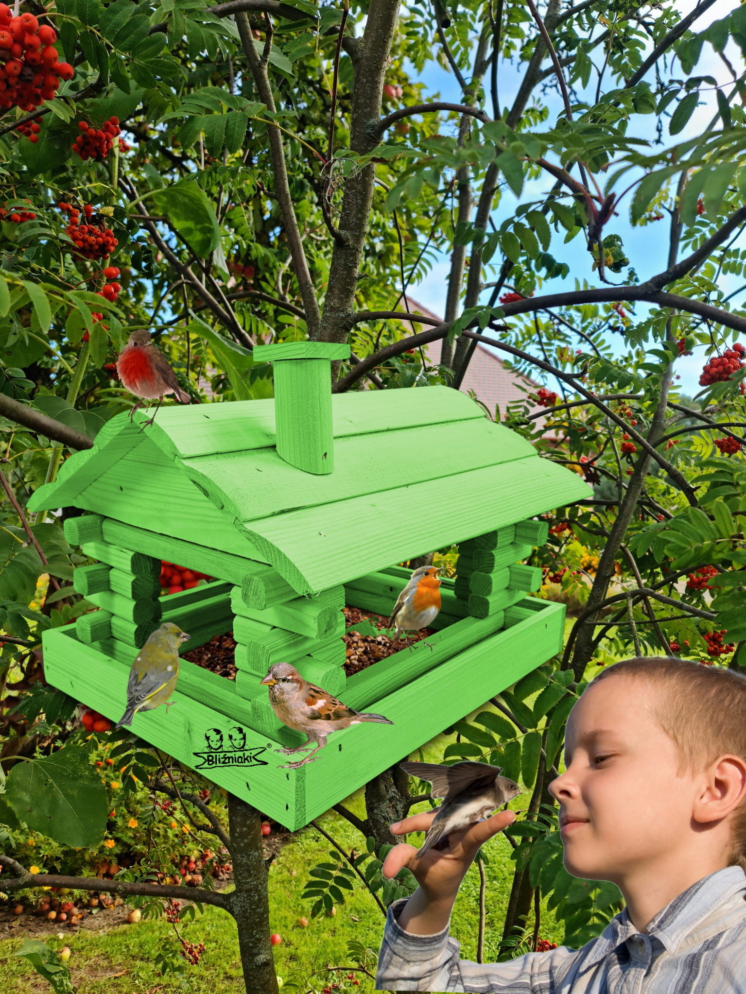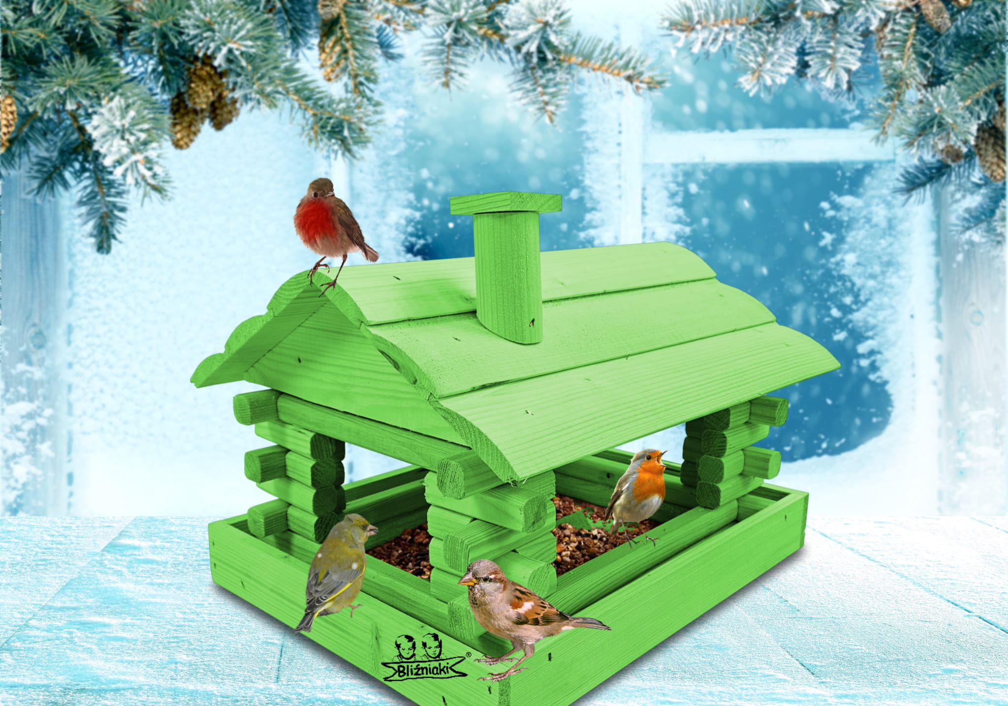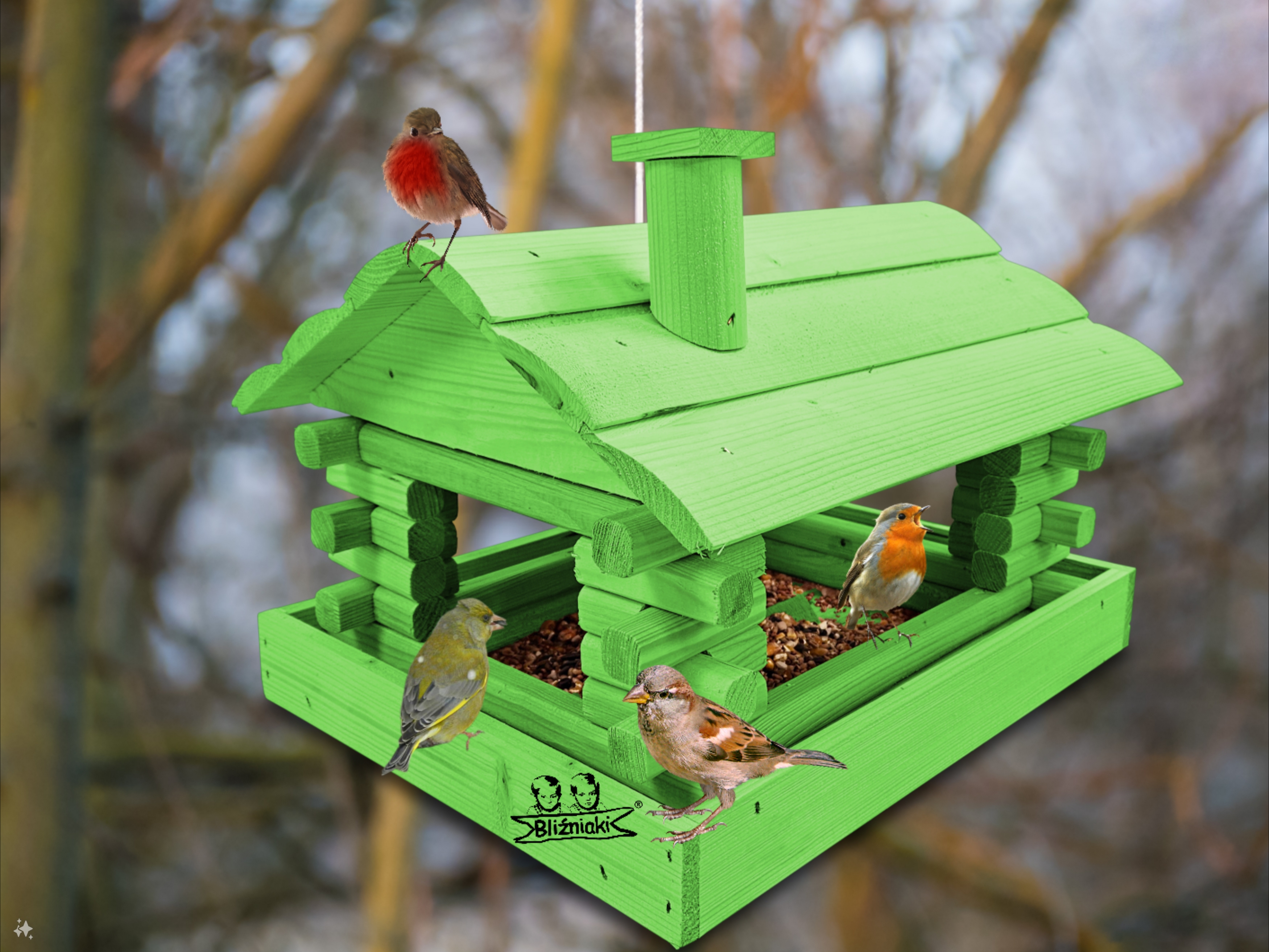Karmnik wykonany z trwałego drewna, o starannym wykończeniu, przypomina klasyczny domek z kominem. Zapewnia ptakom bezpieczne i przytulne miejsce do odpoczynku oraz dostępu do pożywienia w zimniejszych miesiącach.