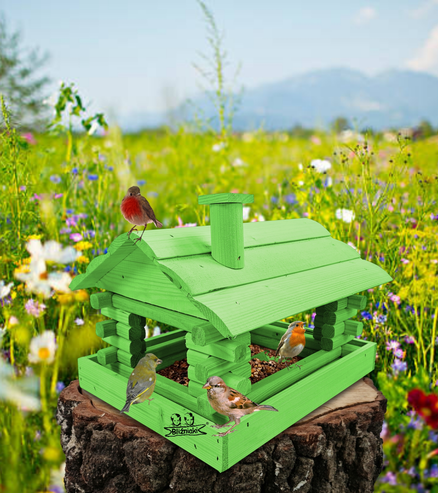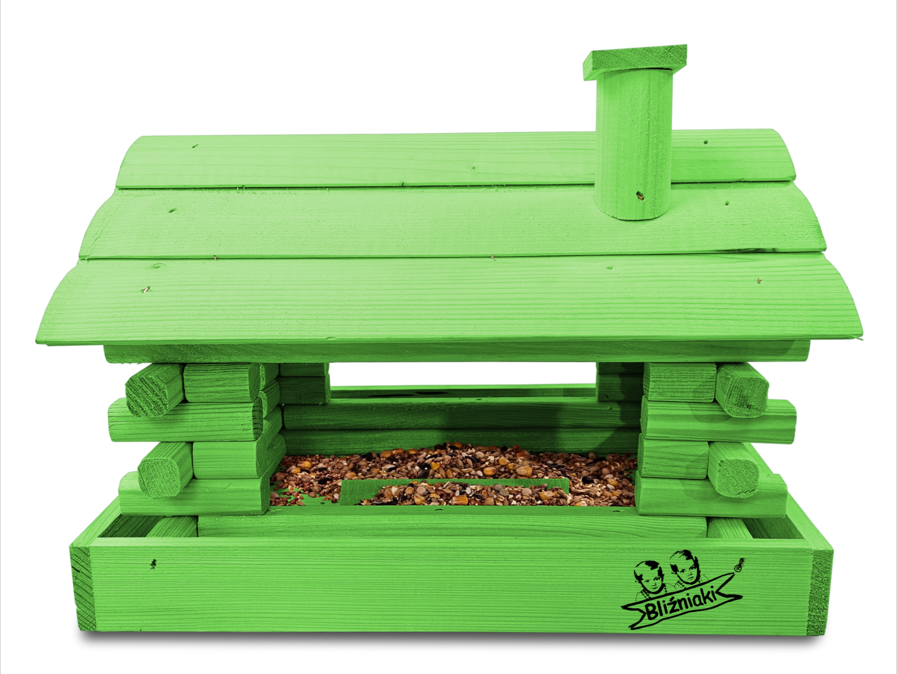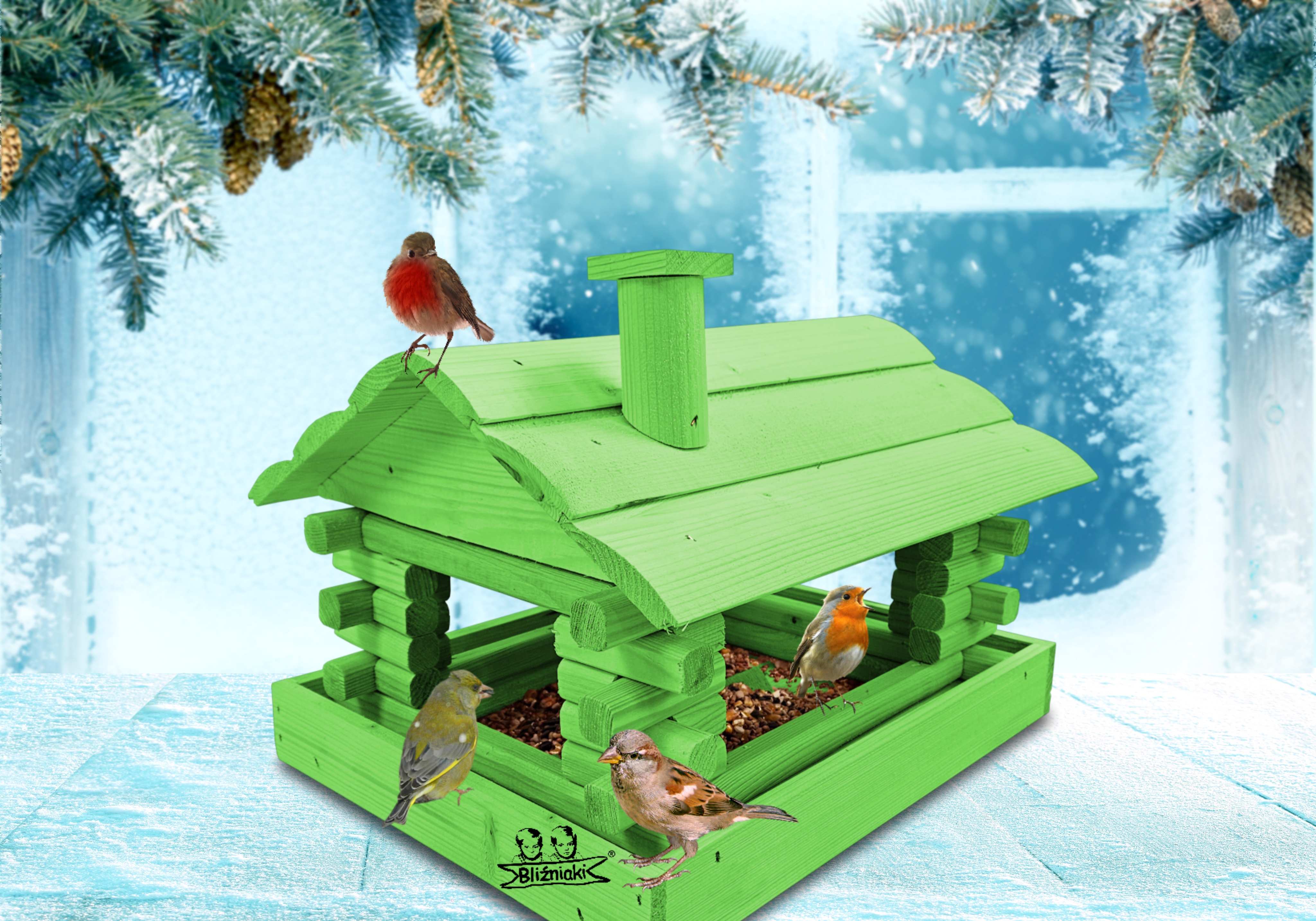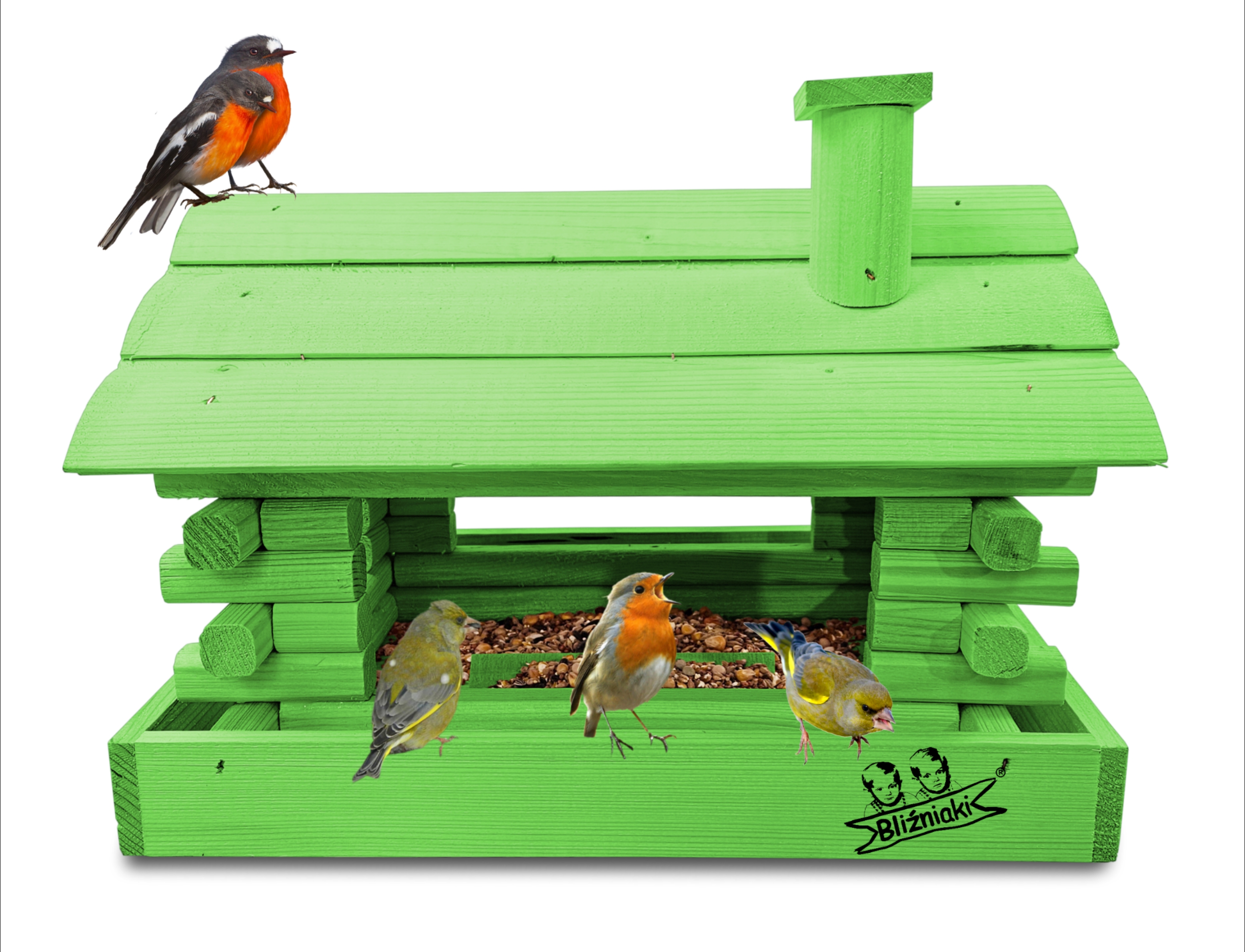 Karmnik wykonany z trwałego drewna, o starannym wykończeniu, przypomina klasyczny domek z kominem. Zapewnia ptakom bezpieczne i przytulne miejsce do odpoczynku oraz dostępu do pożywienia w zimniejszych miesiącach.
