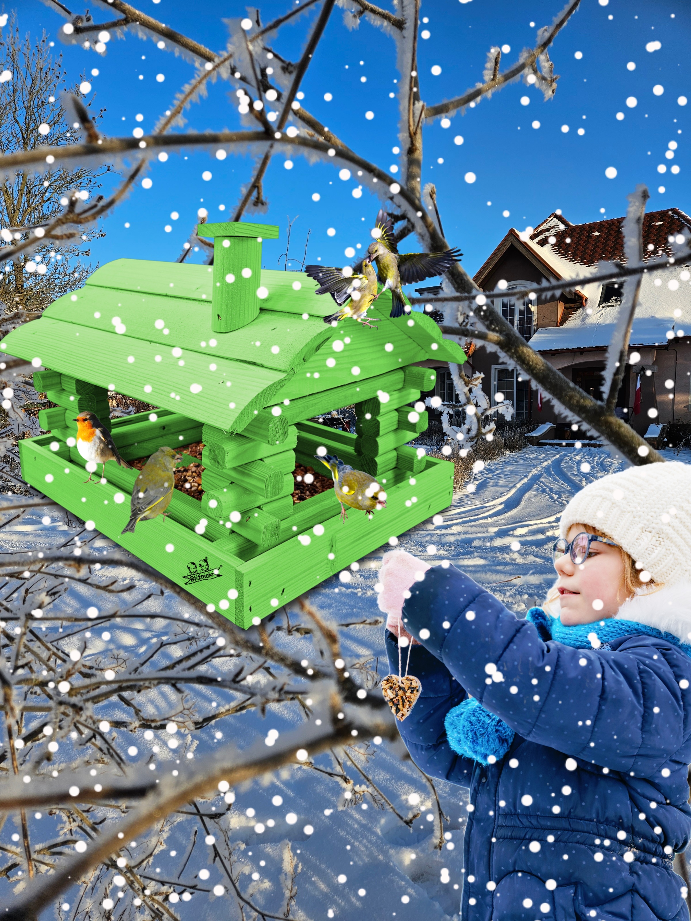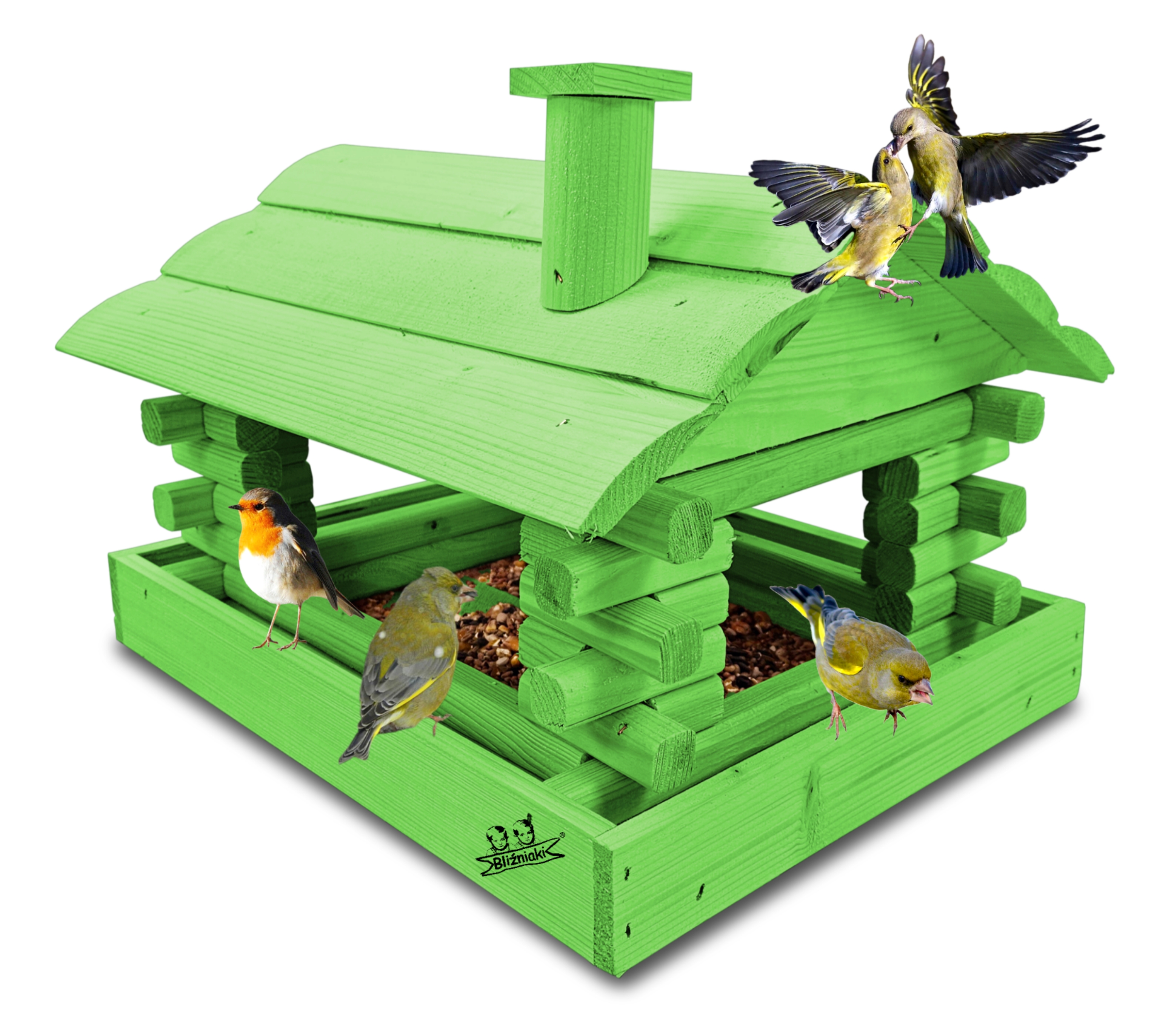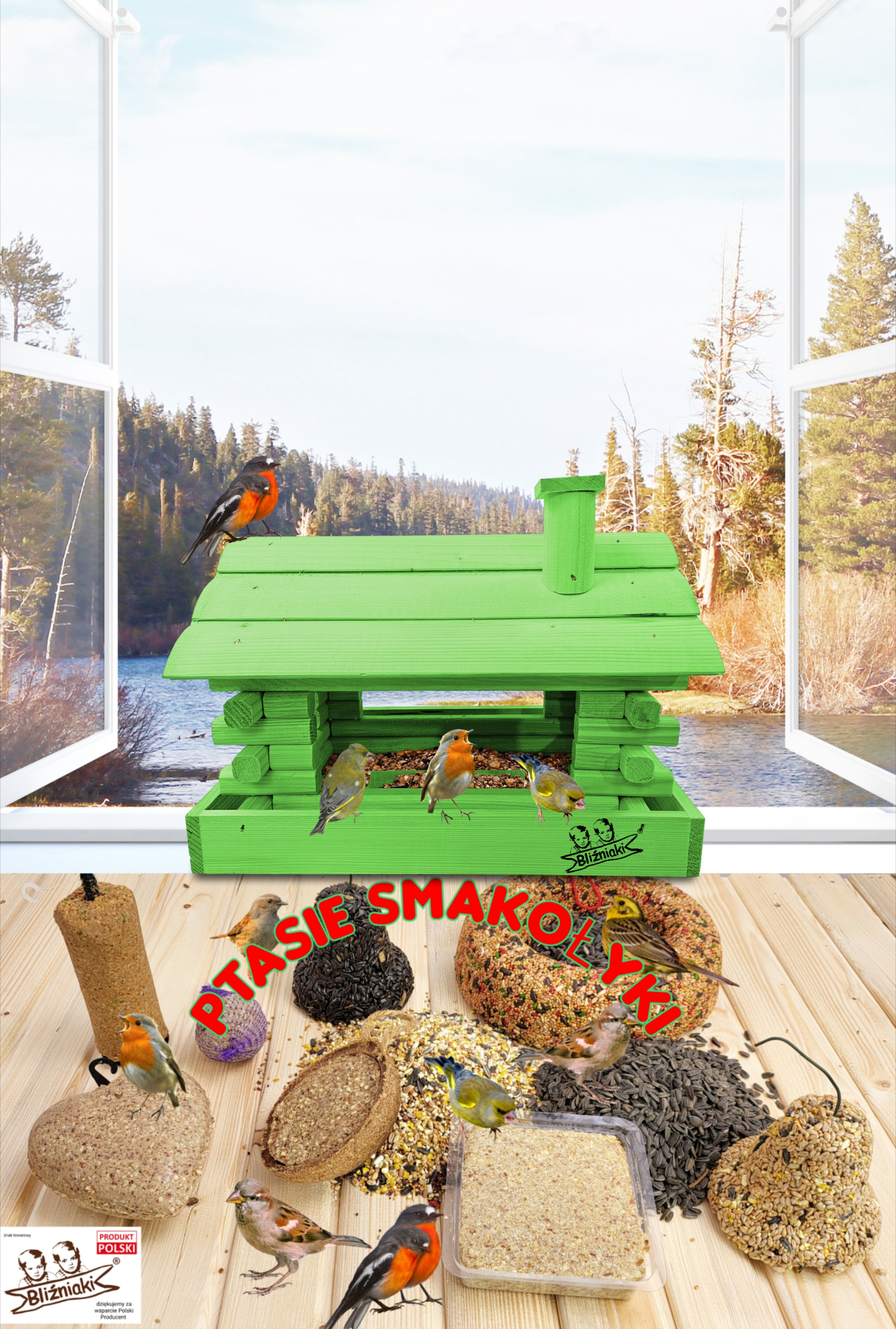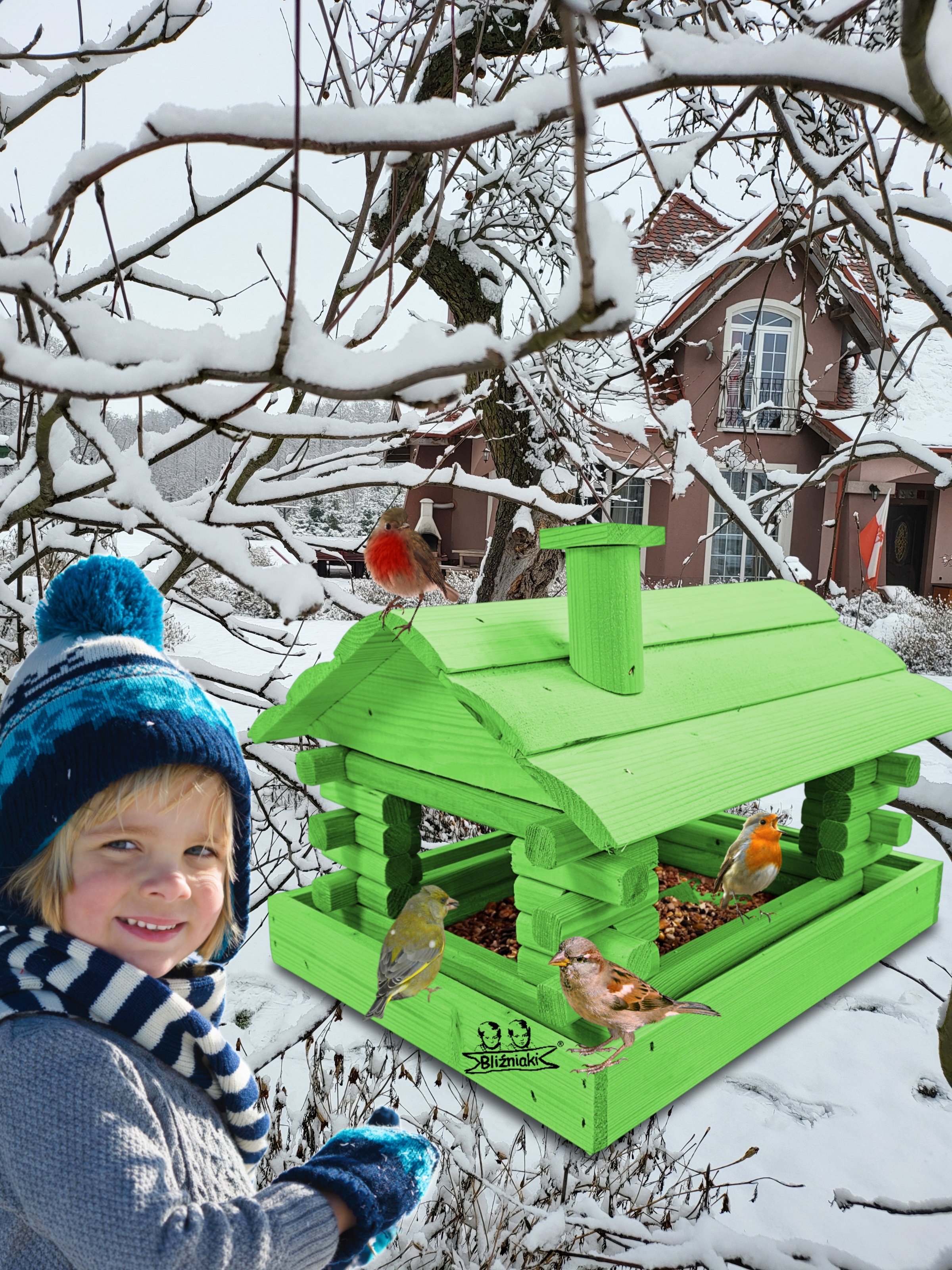 Karmnik wykonany z trwałego drewna, o starannym wykończeniu, przypomina klasyczny domek z kominem. Zapewnia ptakom bezpieczne i przytulne miejsce do odpoczynku oraz dostępu do pożywienia w zimniejszych miesiącach.
