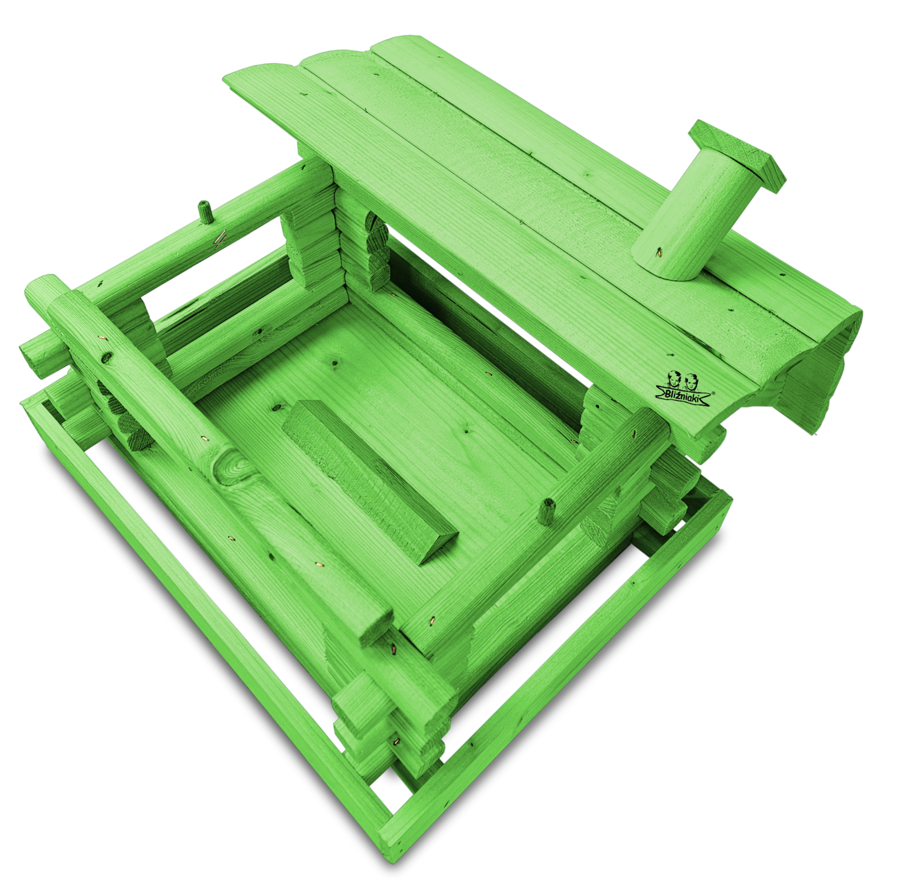 Karmnik w kolorze szarym został zaprojektowany w taki sposób, aby sprostać każdym warunkom atmosferycznym przez cały rok. Wykonany w całości z impregnowanego ekologicznie drewna uzyskał trwałość i odporność na szkodliwe działanie wody oraz wilgoci, promieni UV, a także grzybów i pleśni. Może być więc przechowywany przez cały rok na zewnątrz.