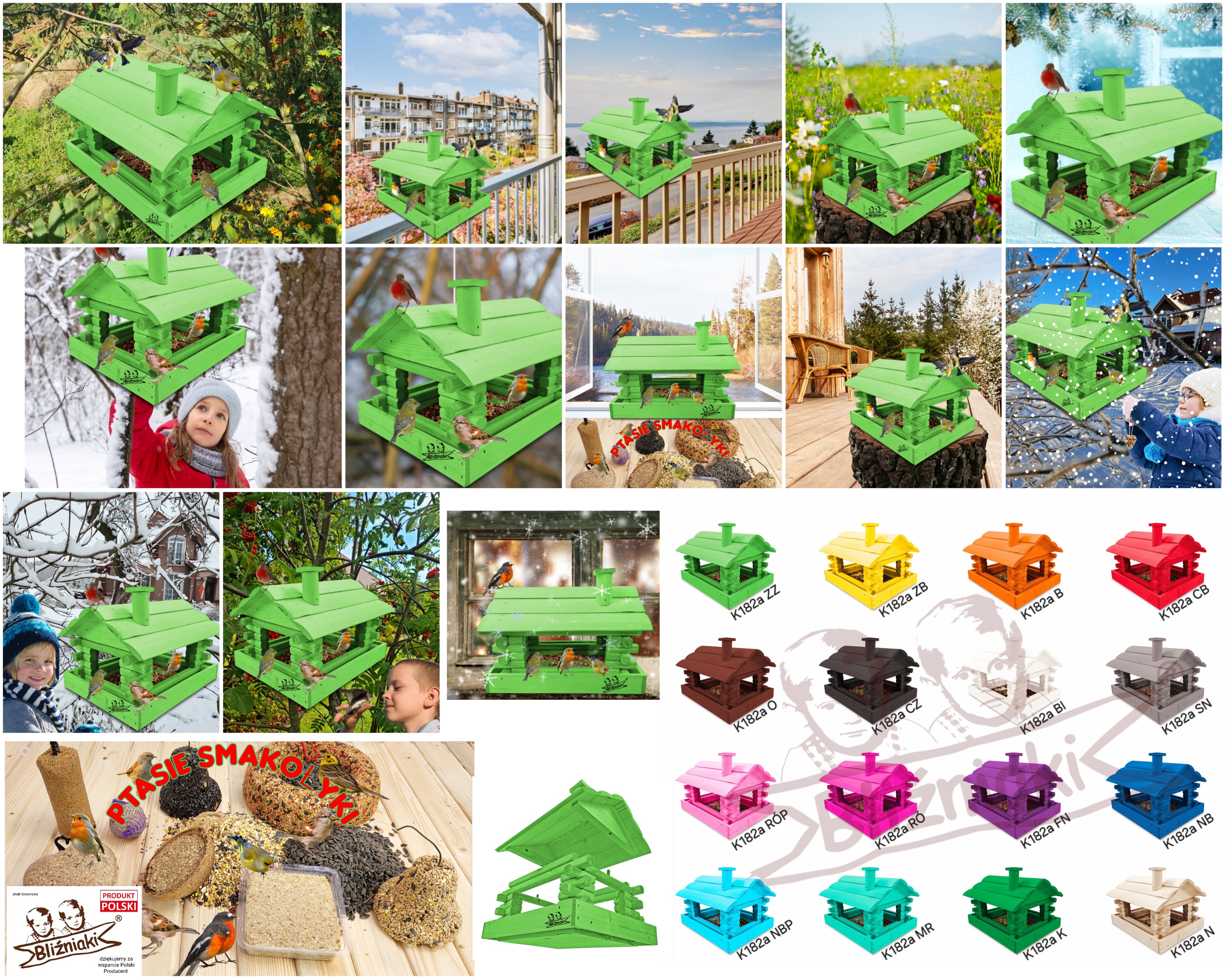 Oferujemy karmniki w różnych wariantach kolorystycznych. Dzięki temu możesz dopasować kolor karmnika do swojego stylu oraz otoczenia. Wybierz naturalne drewno, klasyczną biel, ciepły brąz lub inne opcje kolorystyczne.