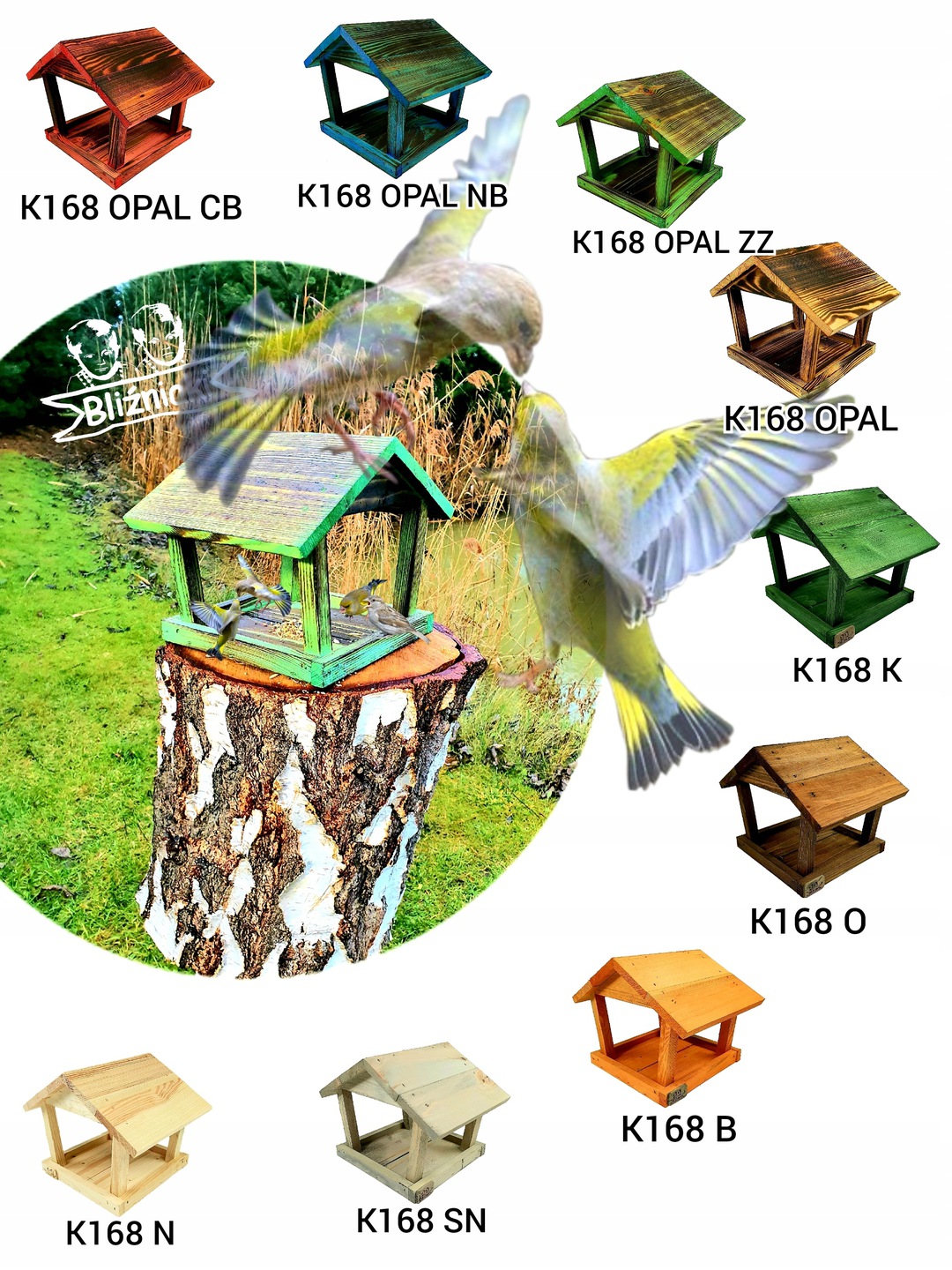 Dysponujemy wieloma wersjami kolorystycznymi tego produktu. Na tej aukcji kupujesz wyłącznie model: K168 B. Chcąc zamówić karmnik w innym kolorze wystarczy, znaleźć właściwy dla siebie model w wariantach u góry aukcji.