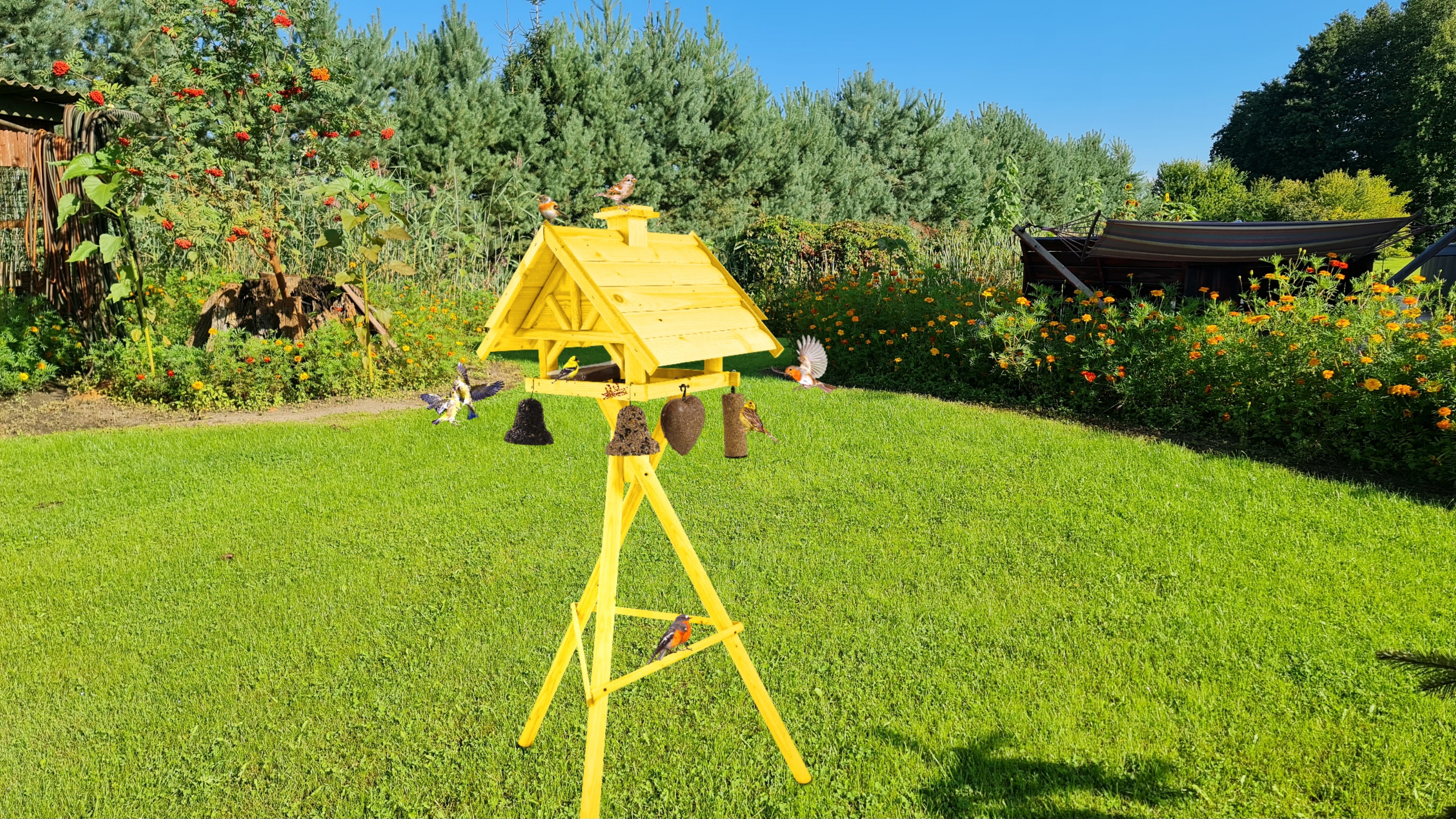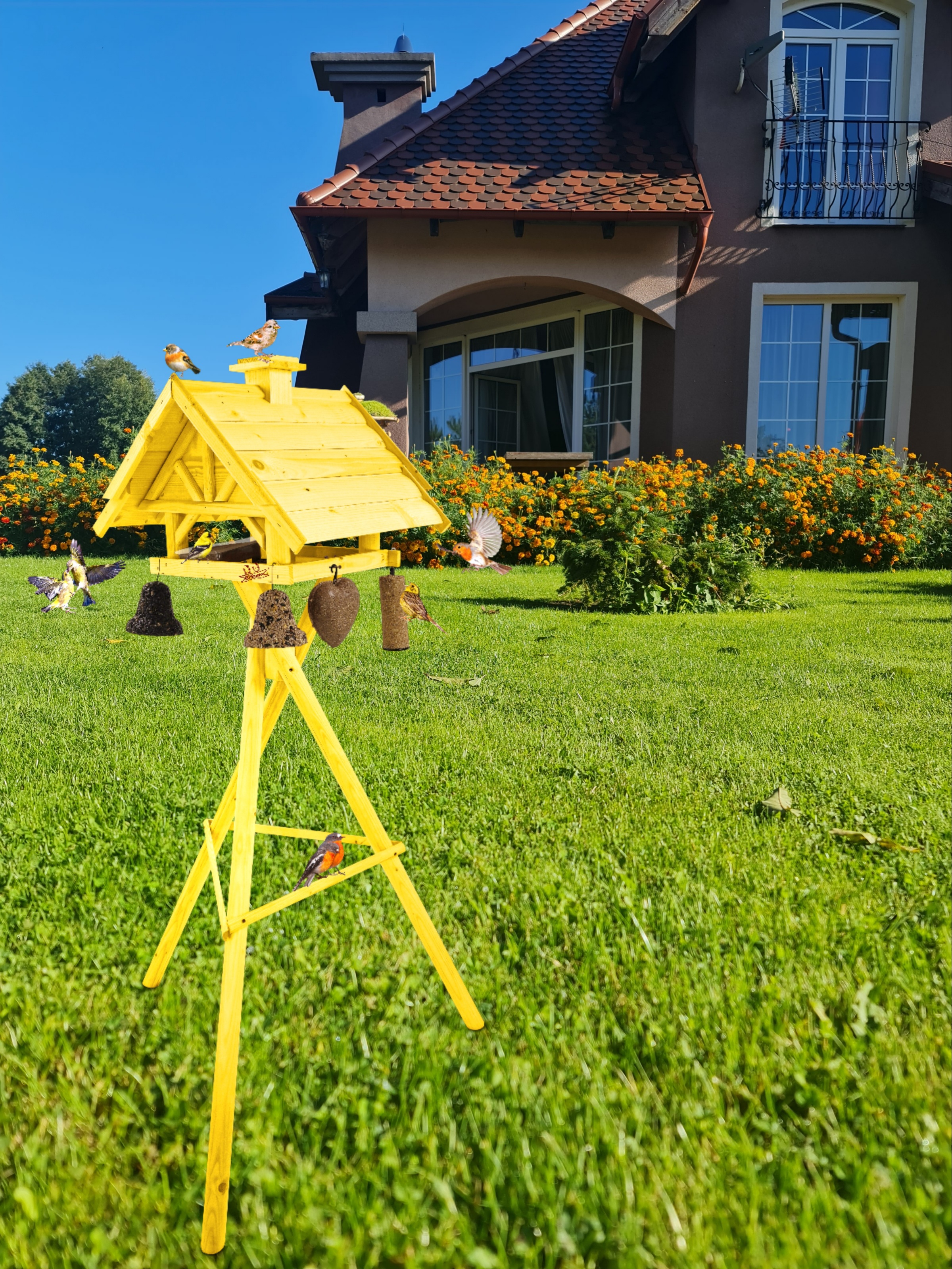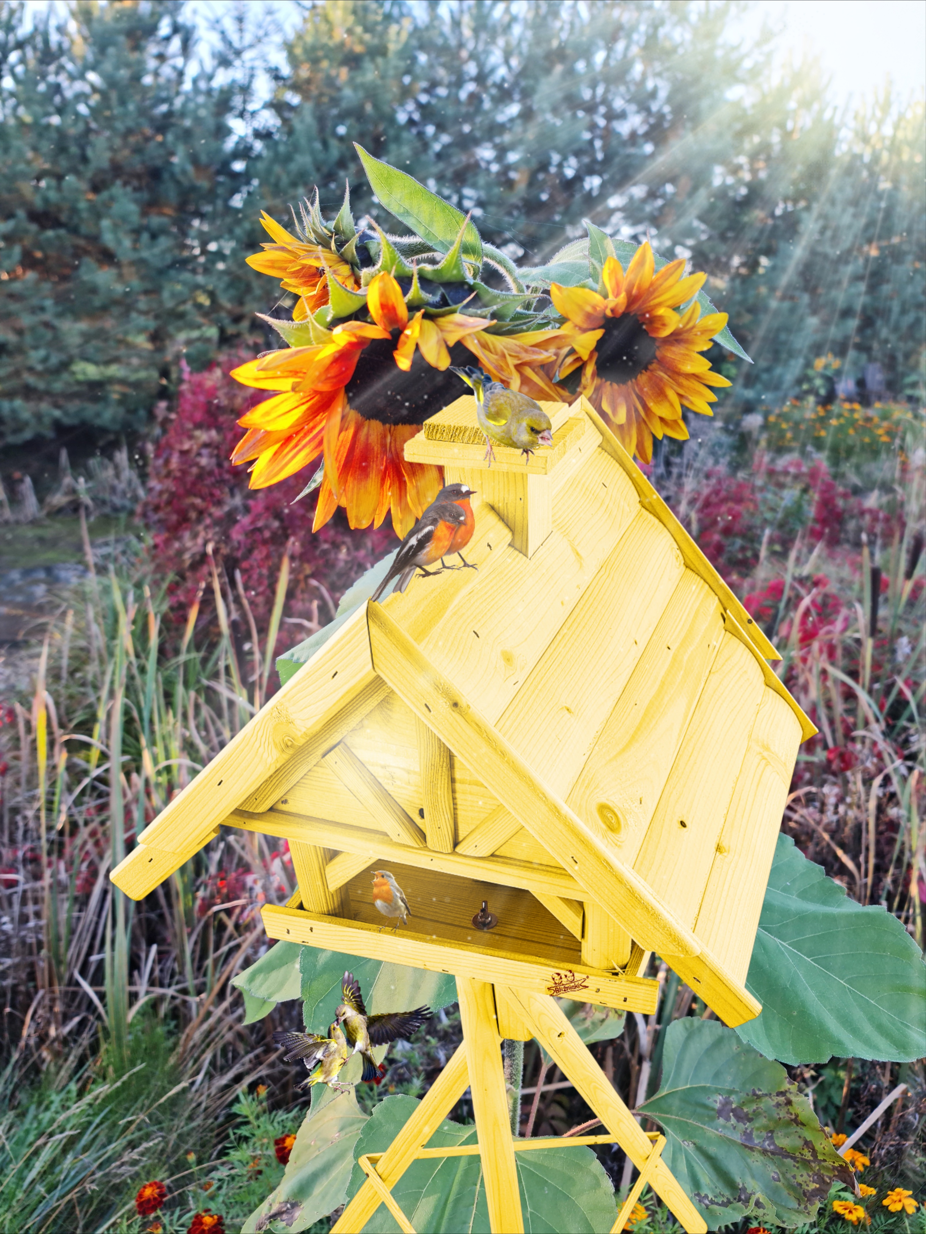 Projekt karmnika jest starannie przemyślany - stawia na praktyczność konstrukcji. Karmnik XXL wraz ze stojakiem stanowi idealne wyposażenie ogrodów, tarasów, balkonów.