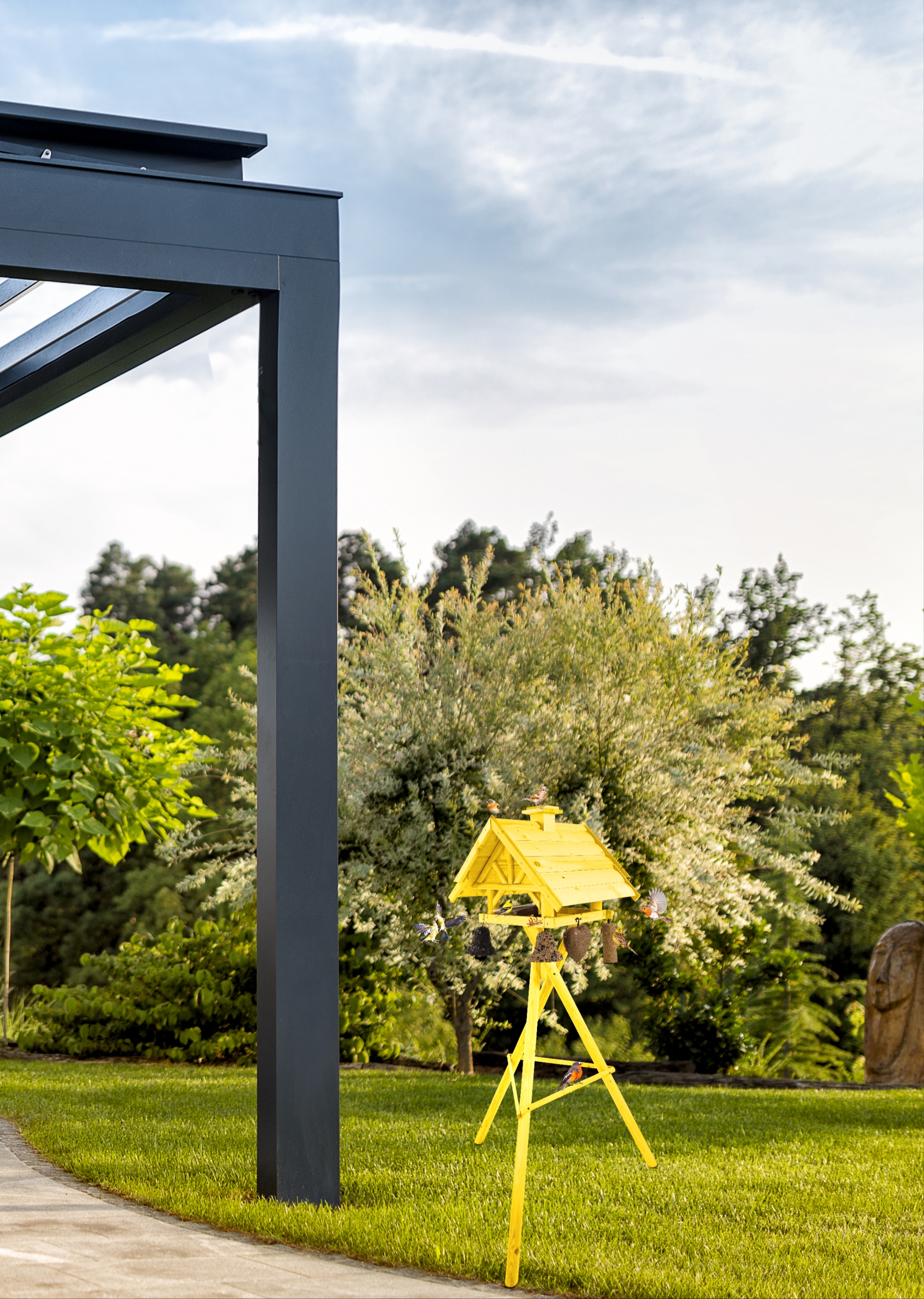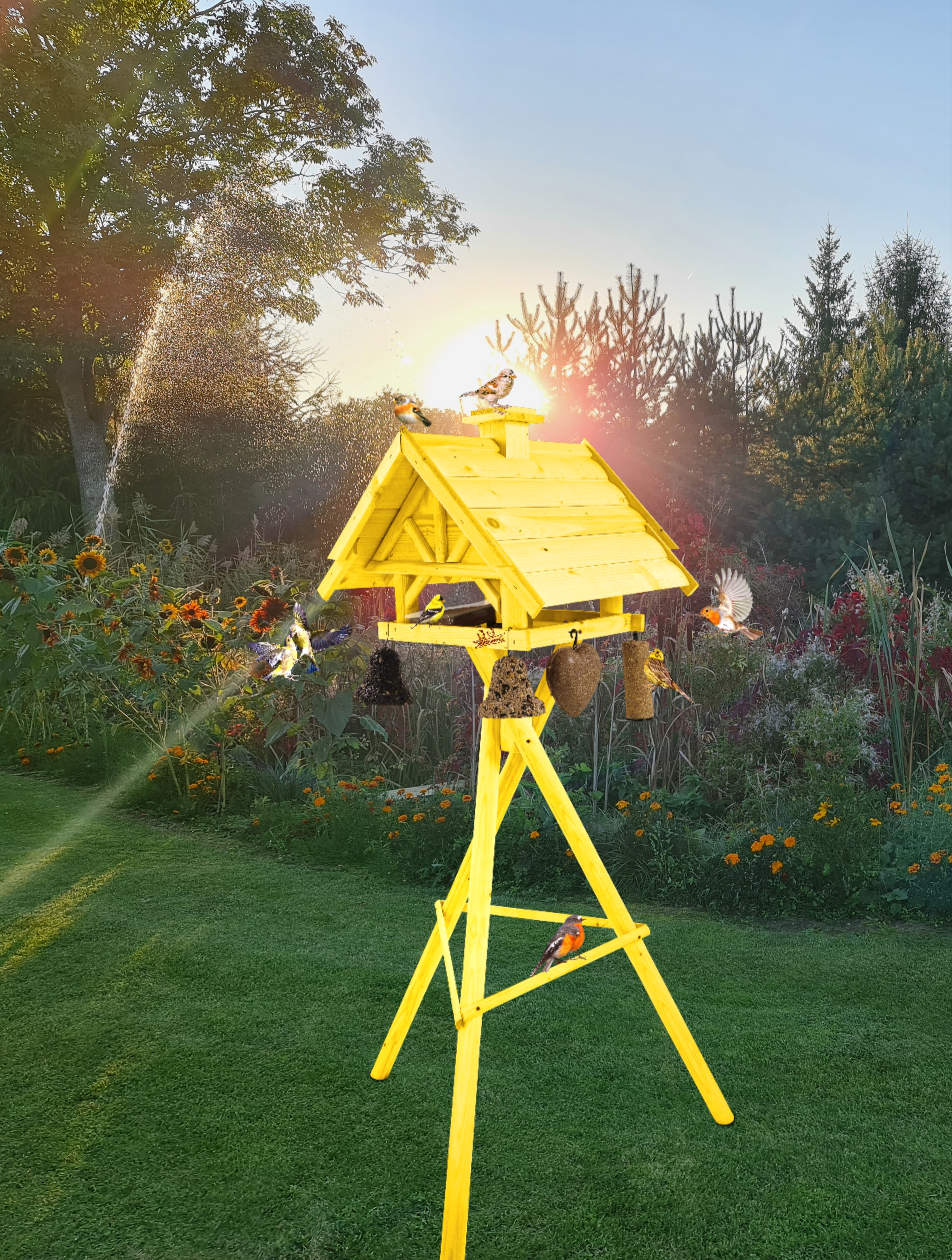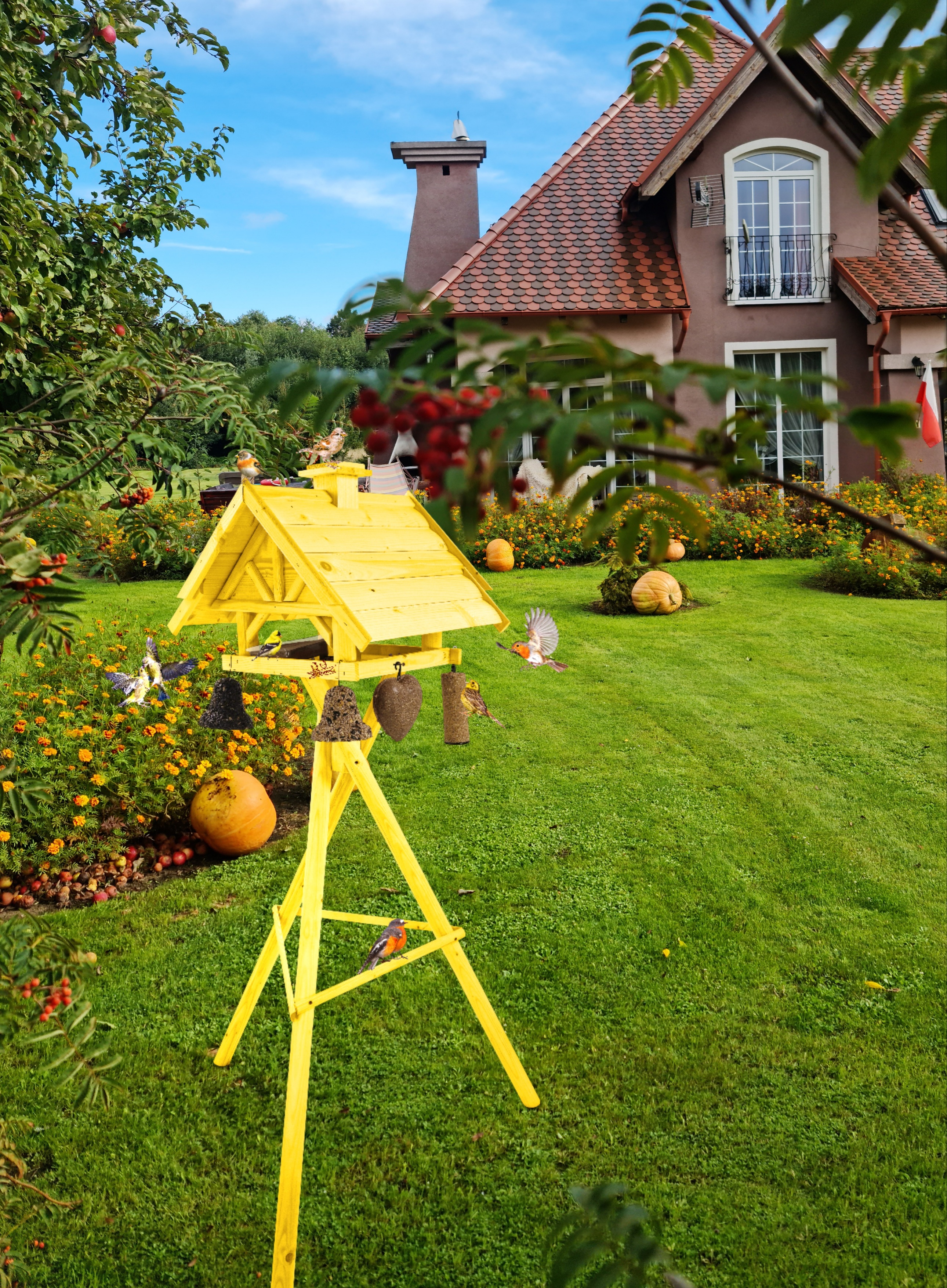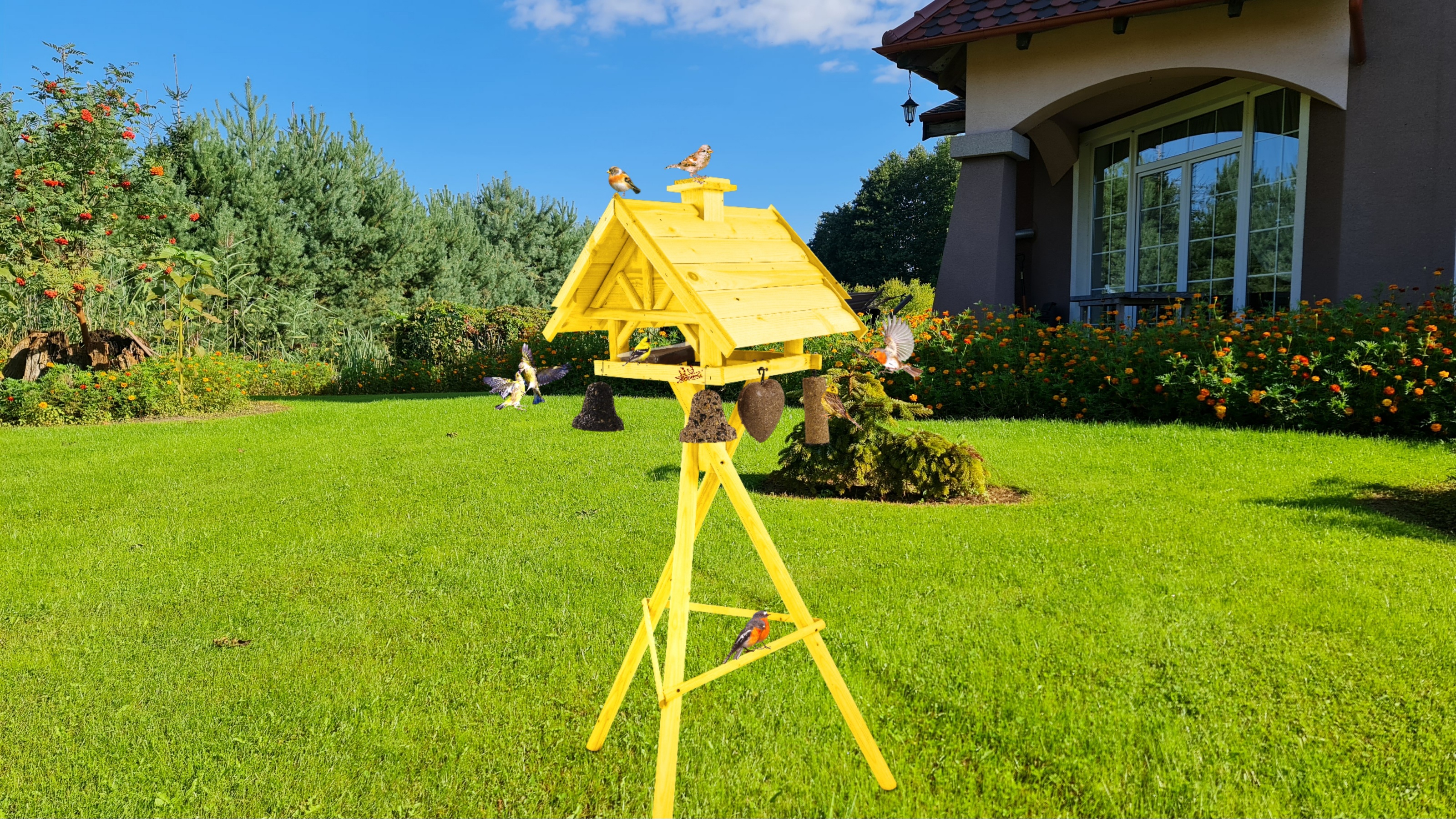 Projekt karmnika jest starannie przemyślany - stawia na praktyczność konstrukcji. Karmnik XXL wraz ze stojakiem stanowi idealne wyposażenie ogrodów, tarasów, balkonów.