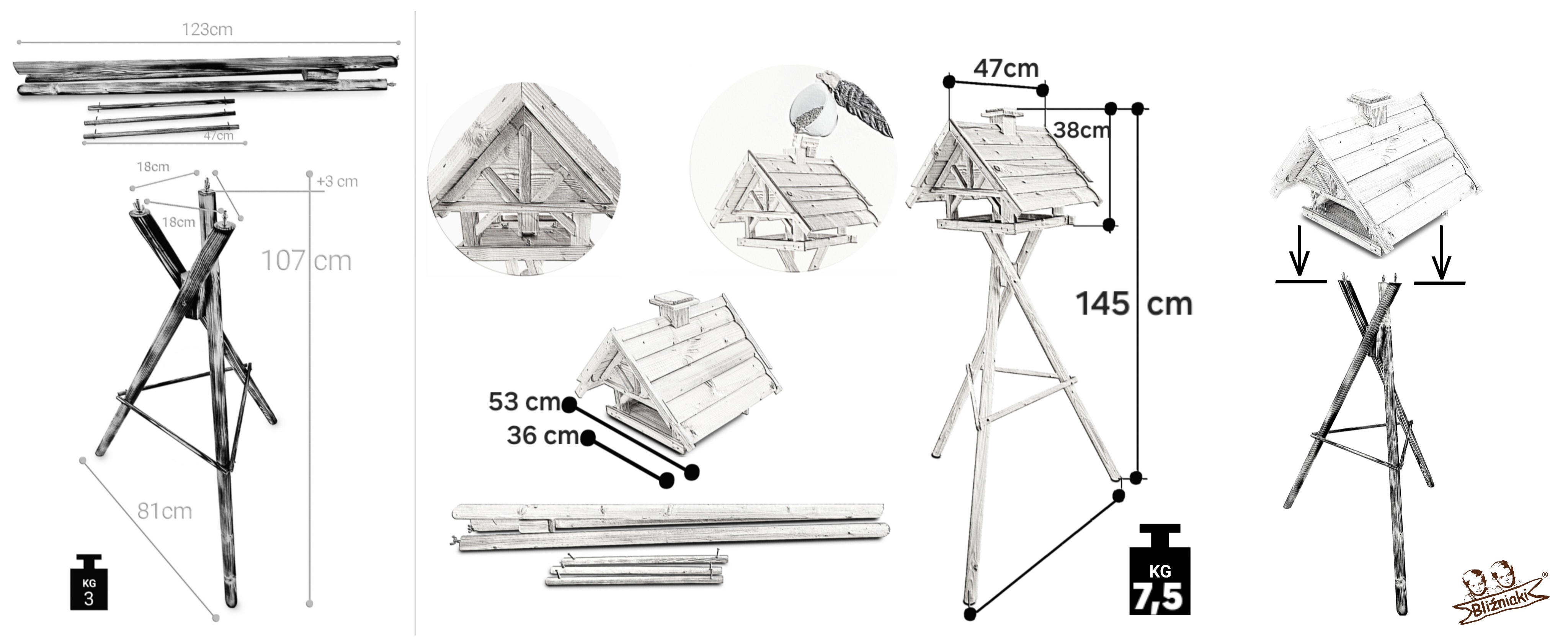 - Karmnik wykonany jest w całości z drewna, impregnowany ręcznie środkiem na bazie barwników roślinnych.