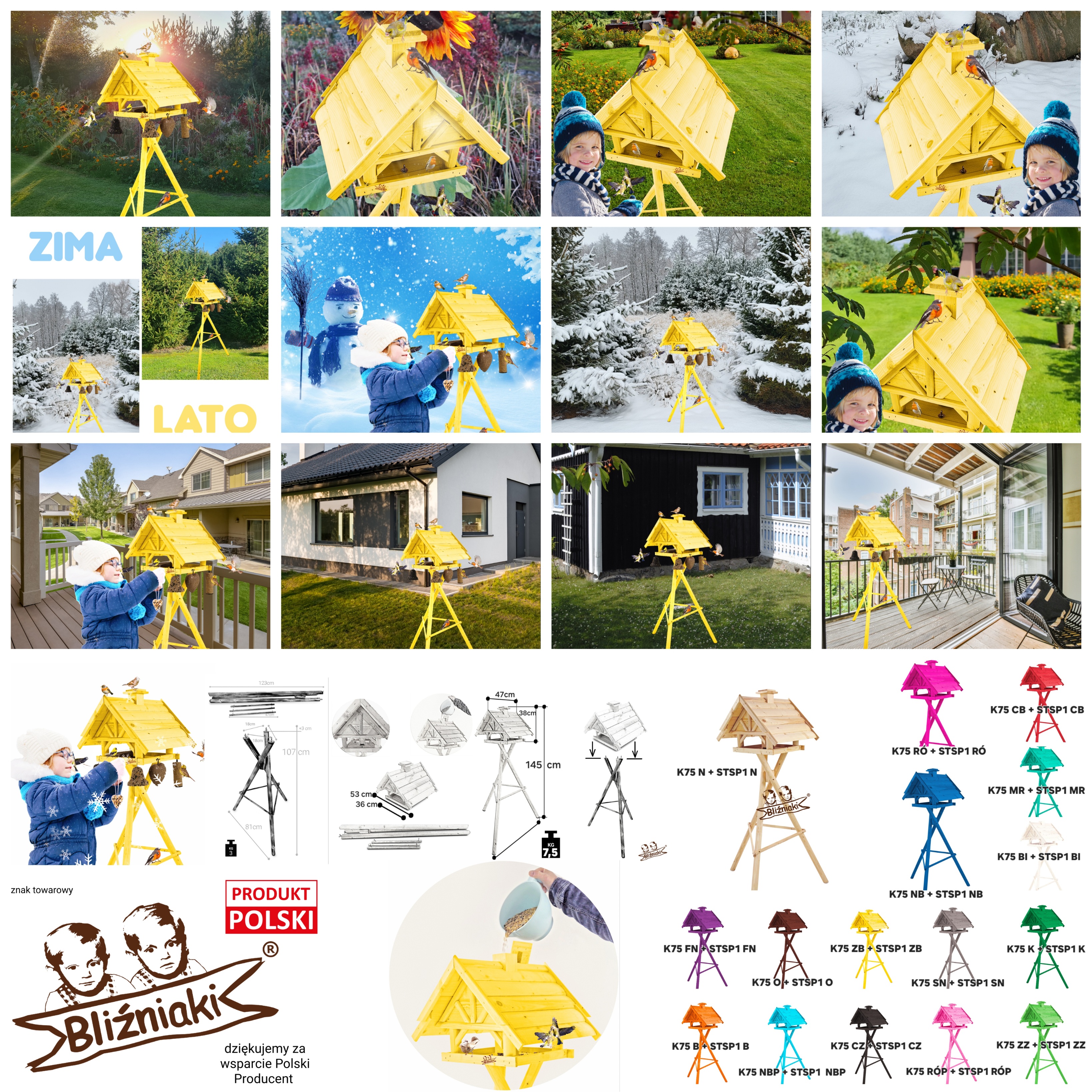Ozdobny Drewniany Karmnik dla Ptaków model K75 ZB+ STSP1 ZB