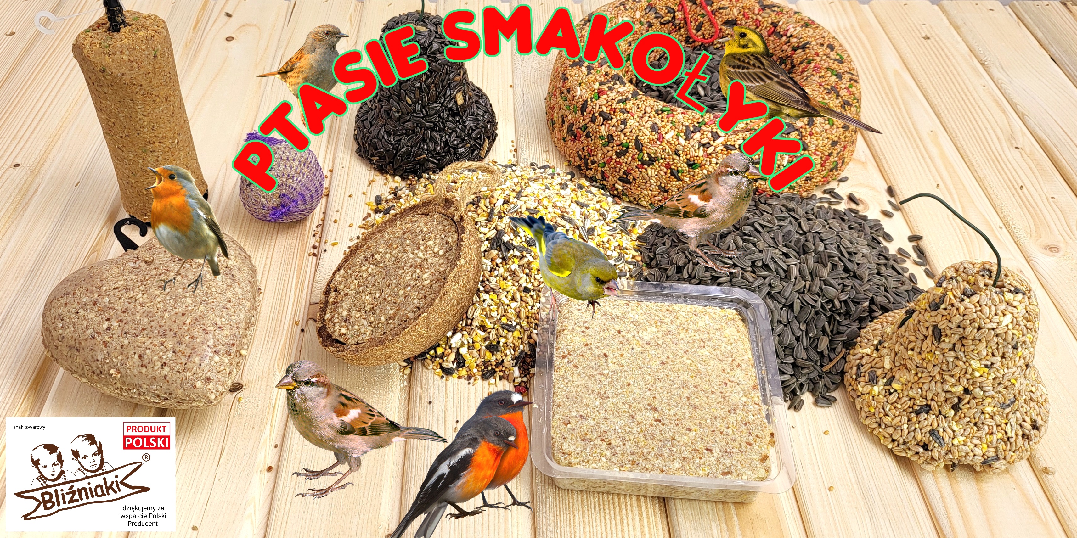 słonecznik ziarnisty łuszczony i niełuszczony, i wiele innych smakołyków w wygodnej formie pozwalającej powiesić produkt w dowolnym miejscu w ogrodzie, a także niezbędne do dokarmiania ptaków karmniki.