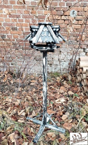 Sprzedawany jest w zestawie z stojakiem. Na naszych pozostałych aukcjach znaleźć można ten sam model bez stojaka, a także inne typy karmników, ozdób, architektury ogrodowej.