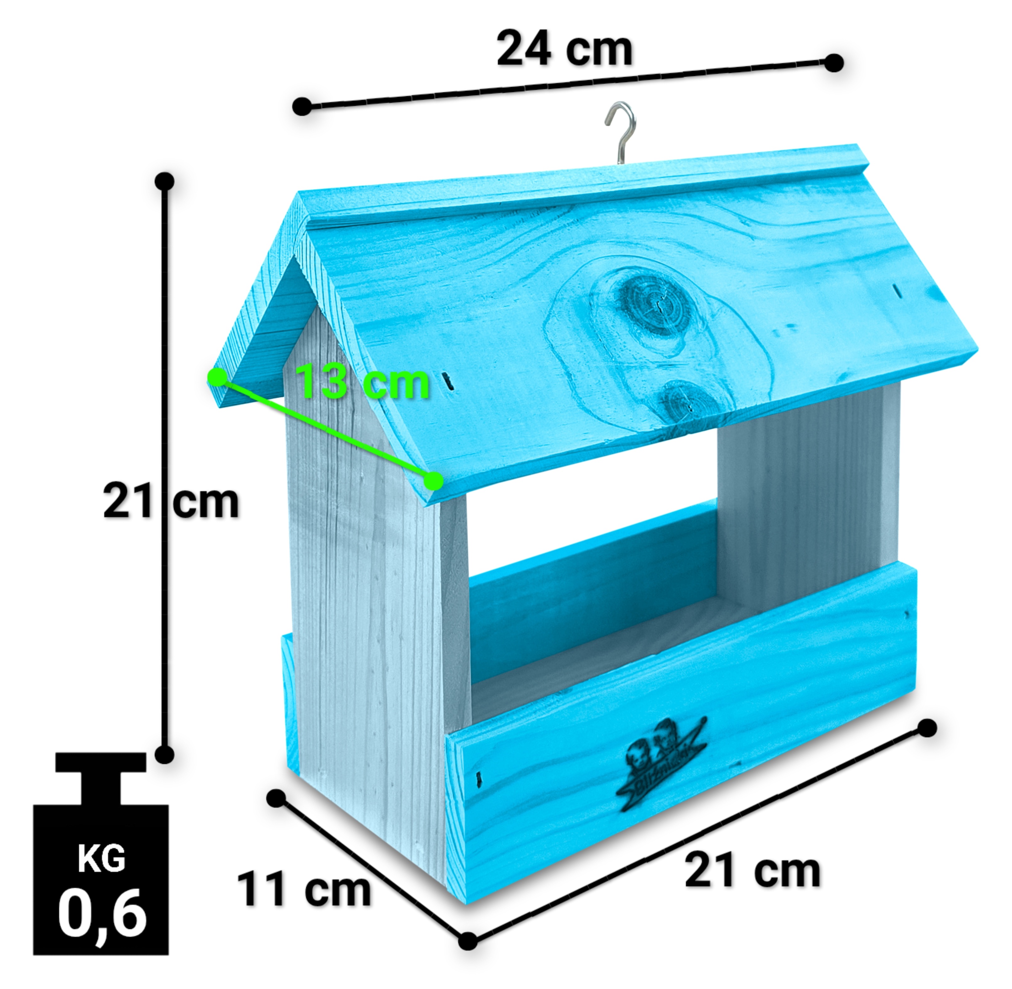 - Karmnik wykonany jest w całości z drewna iglastego, W DWÓCH ODCIENIACH NIEBIESKIEGO - PASTELOWY NIEBIESKI I JASNY NIEBIESKI