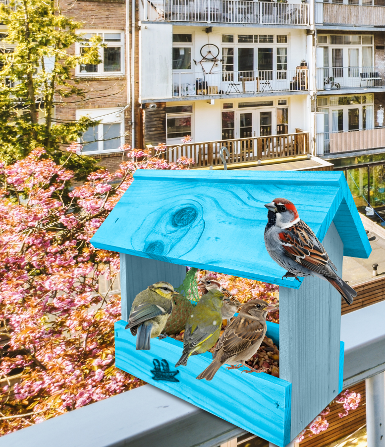 Przedmiotem sprzedaży jest ozdobny drewniany karmnik dla ptaków budka domek na balkon K204a NBPP NBP w dwóch odcieniach niebieskiego - pastelowy niebieski i jasny niebieski