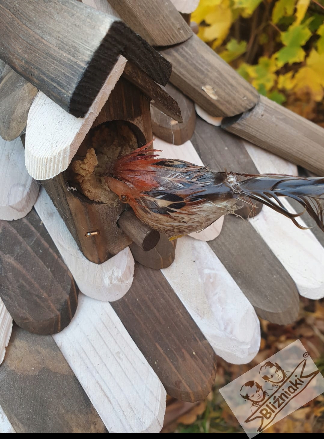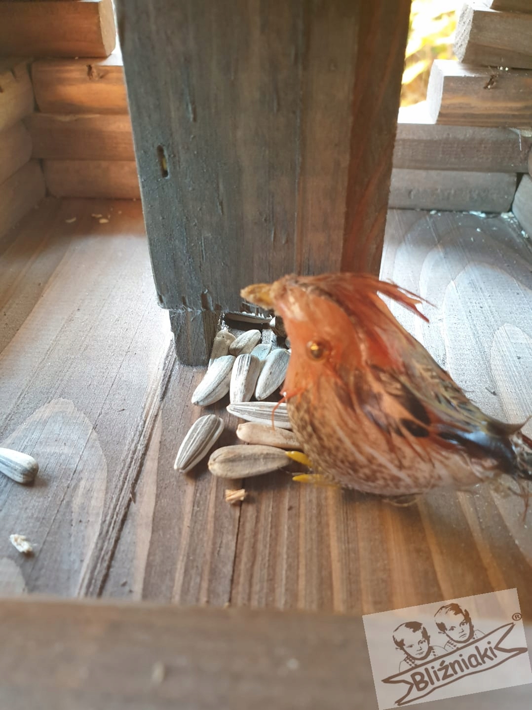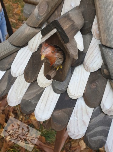 - KARMNIK JEST WYKONANY Z DREWNA, DACH POKRYTY KOLOROWĄ DACHÓWKĄ WSZYSTKIE ELEMENTY SĄ WYKONANE BARDZO STARANNIE I Z WIELKĄ PRECYZJĄ, ŚLEPE OKIENNICE NA SMALEC, OTWIERANY KOMIN - SŁUŻĄCY DO ZASYPYWANIA POKARMEM !