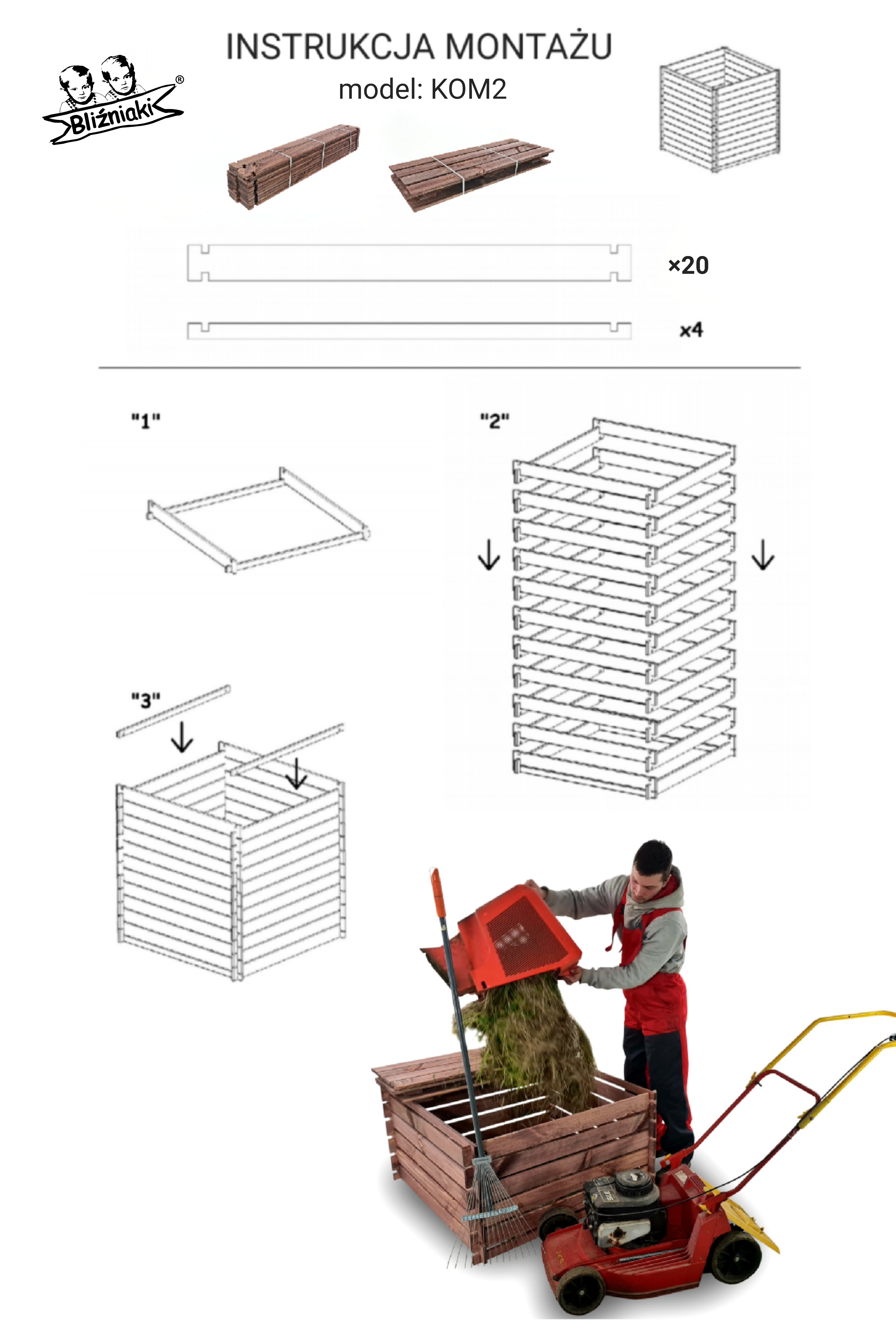 - pokrywa ma specyficzną budowę , dzięki czemu pasuje do każdego modelu kompostownika KOM1 z naszego sklepu zbudowanego dowolnymi poziomami desek
