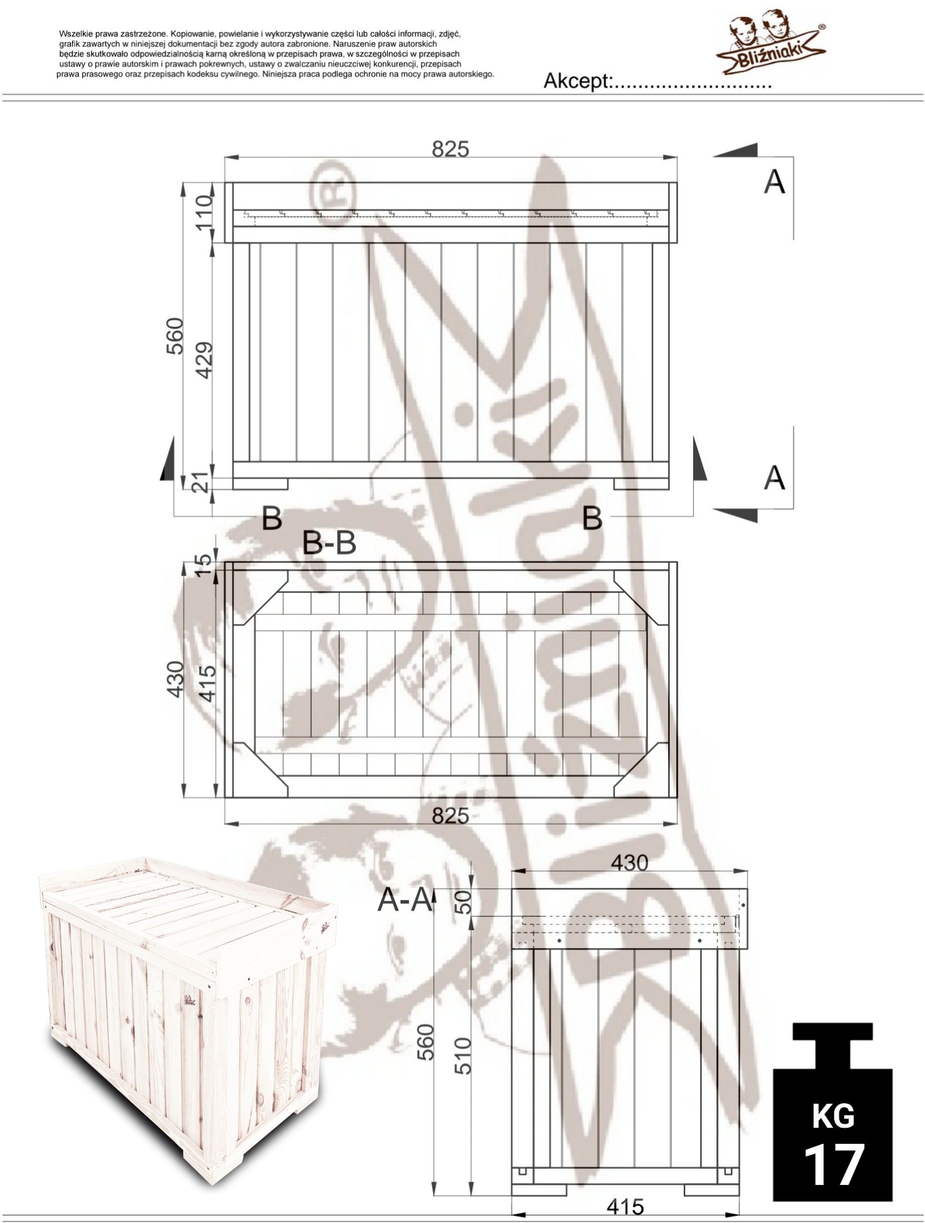 - Podwyższona podstawa - izoluje kufer od podłoża, co zapewnia odpowiednią wentylację.