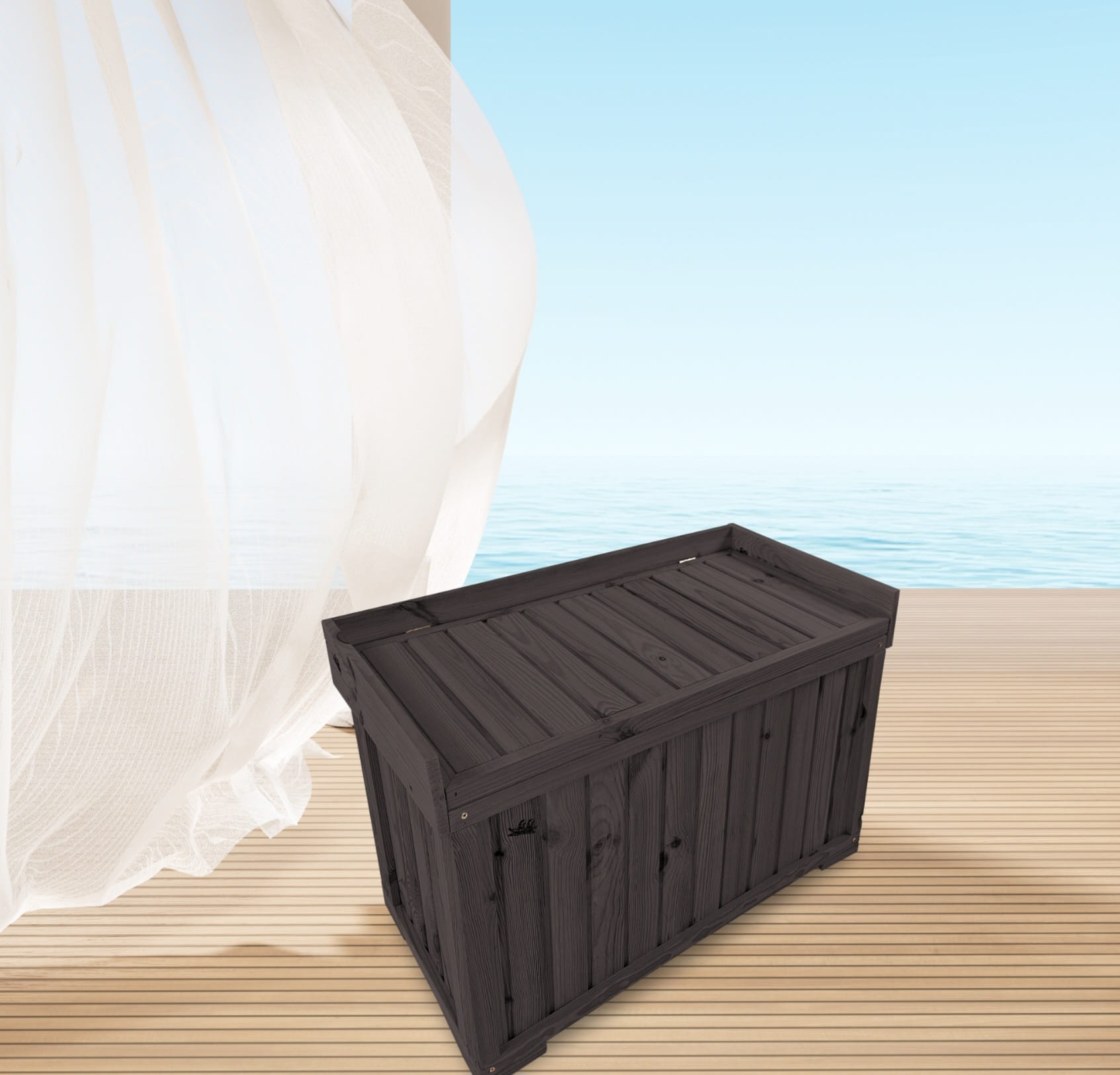 Kufer Drewniany Czarny Komoda Meble Ogrodowe Szafka Na Buty Schowek Na Zabawki Skrzynia Ławka Pufa MEBEL1 CZ