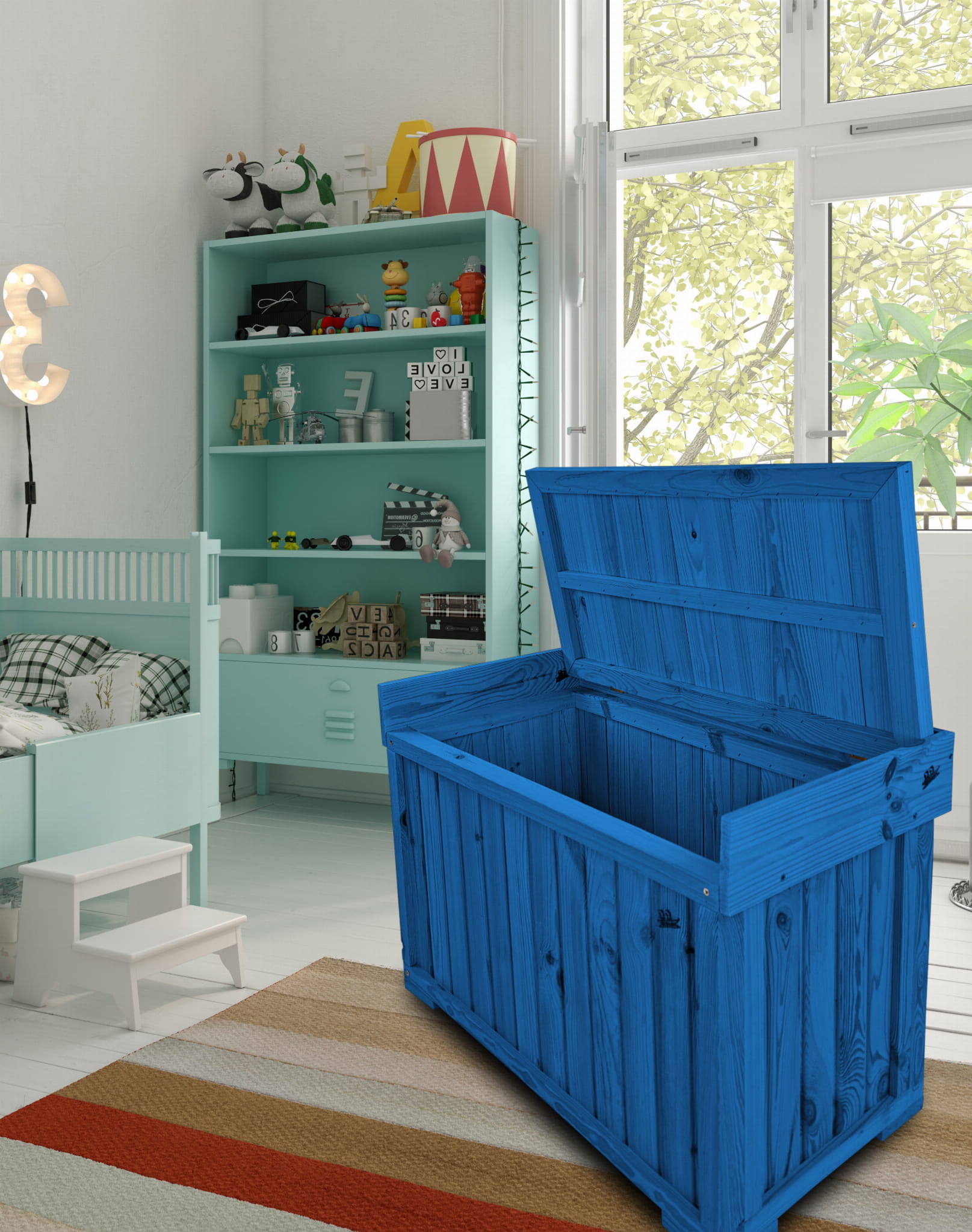 Kufer Drewniany Niebieski Granatowy Komoda Meble Ogrodowe Szafka Na Buty Schowek Na Zabawki Skrzynia Ławka Pufa MEBEL1 NB