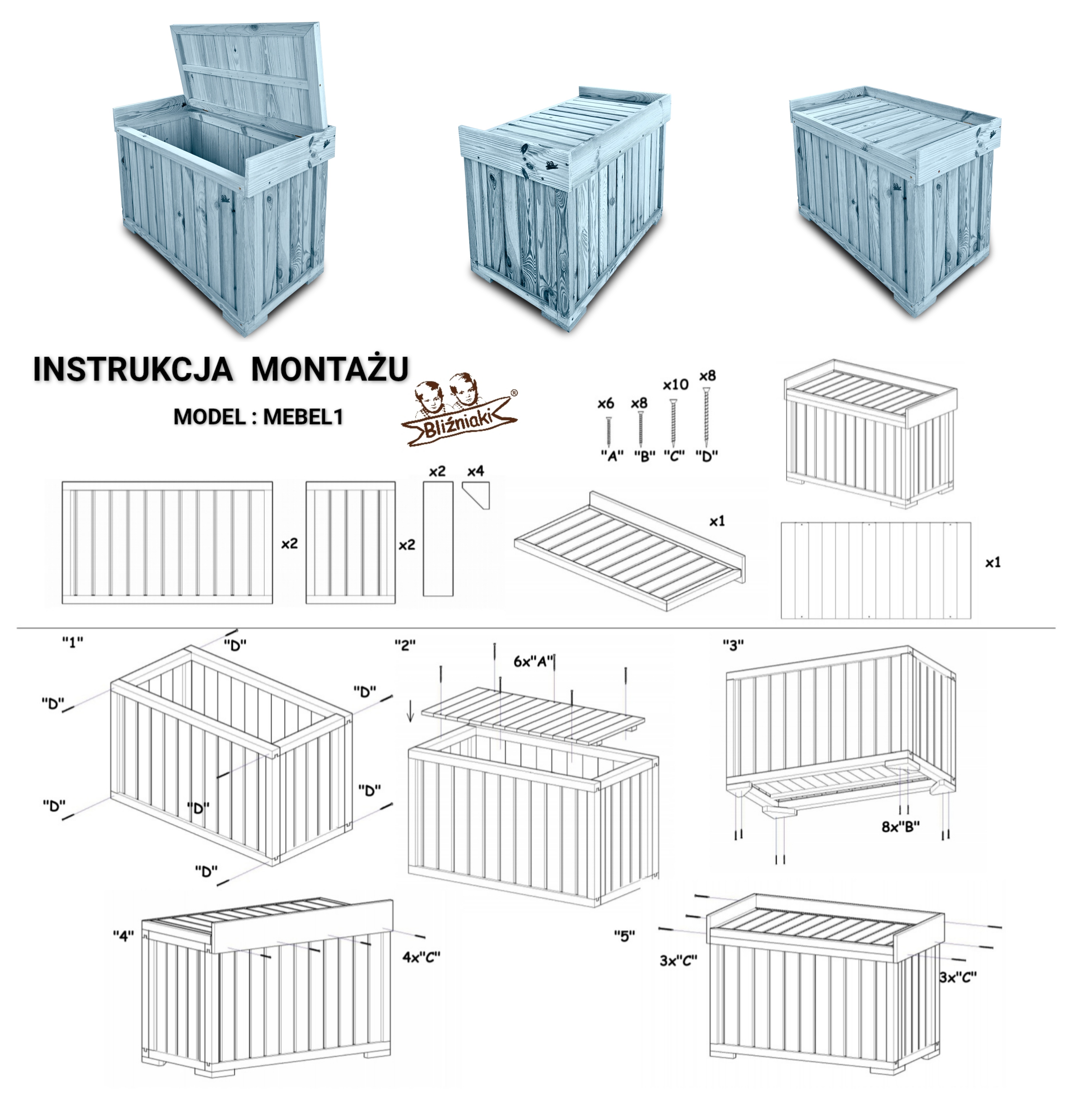 Kufer Drewniany Pastelowy Niebieski Komoda Meble Ogrodowe Szafka Na Buty Schowek Na Zabawki Skrzynia Ławka Pufa MEBEL1 NBPP