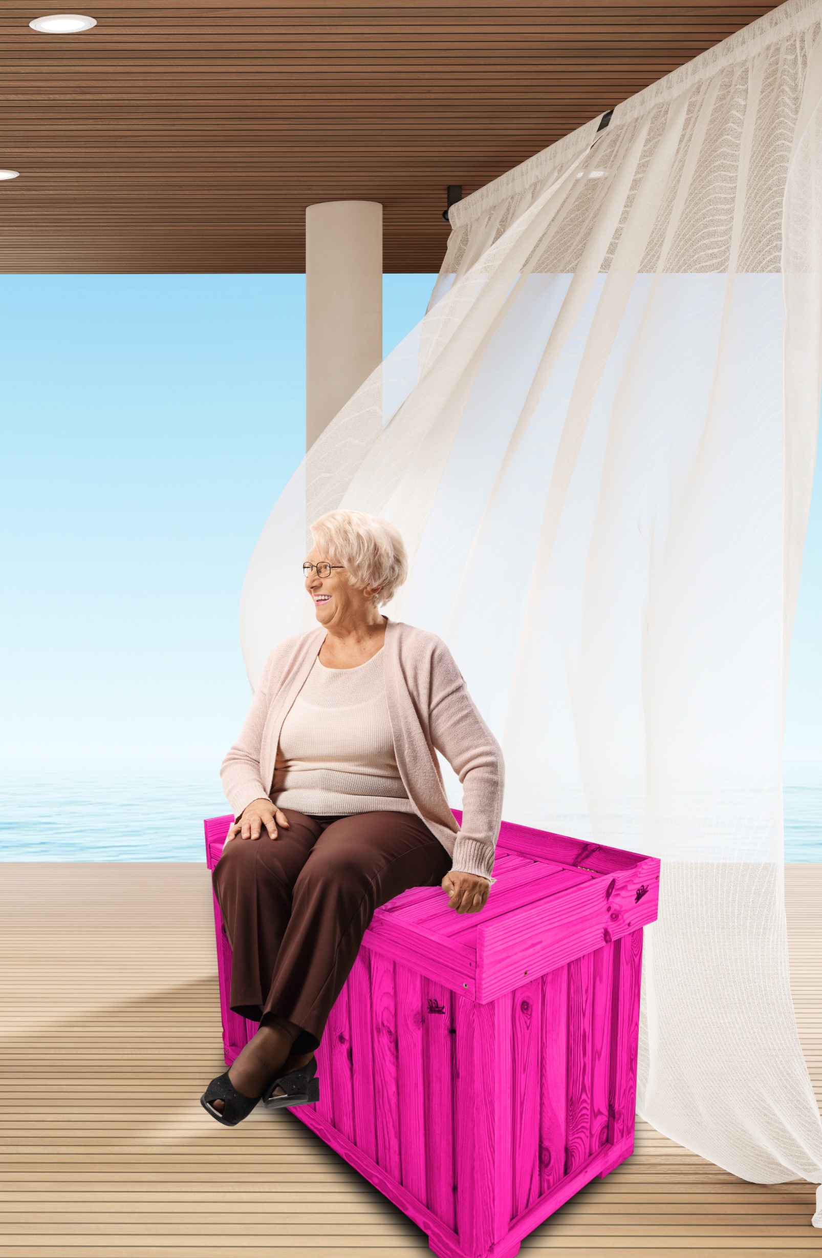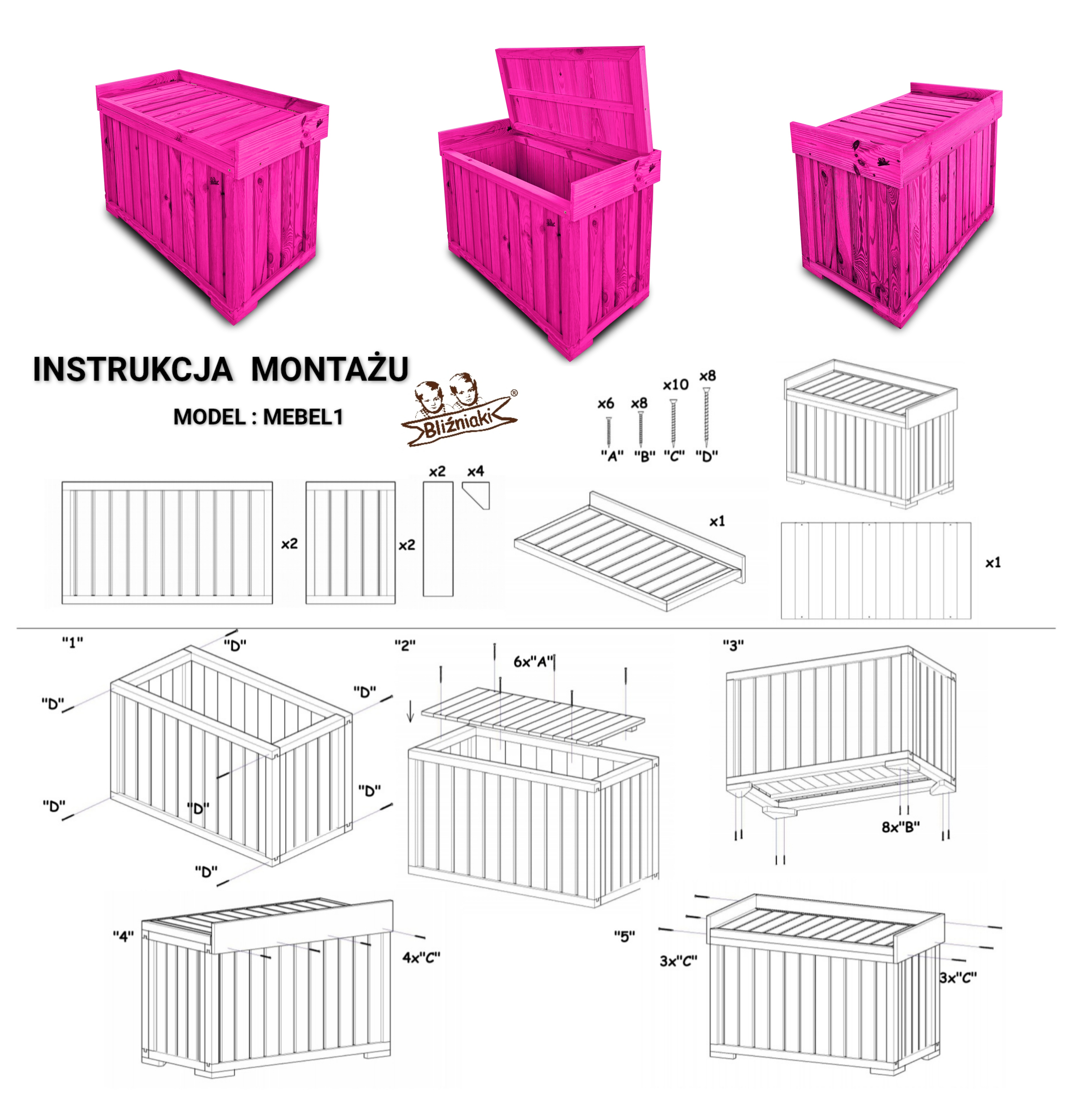 Kufer Drewniany Różowy Komoda Meble Ogrodowe Szafka Na Buty Schowek Na Zabawki Skrzynia Ławka Pufa MEBEL1 RÓ