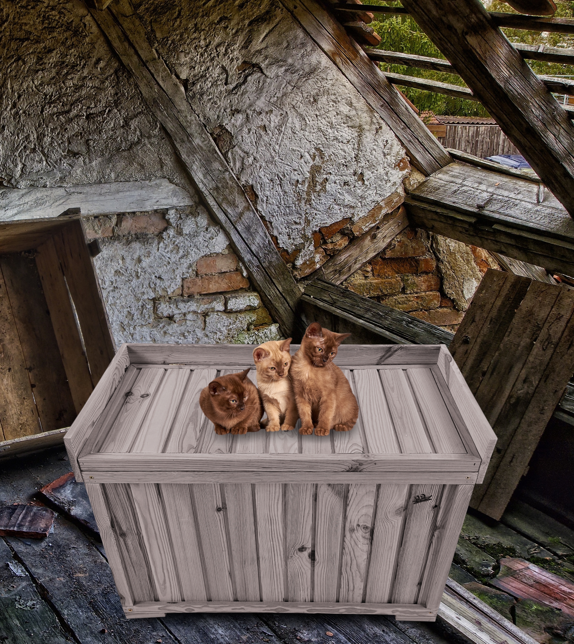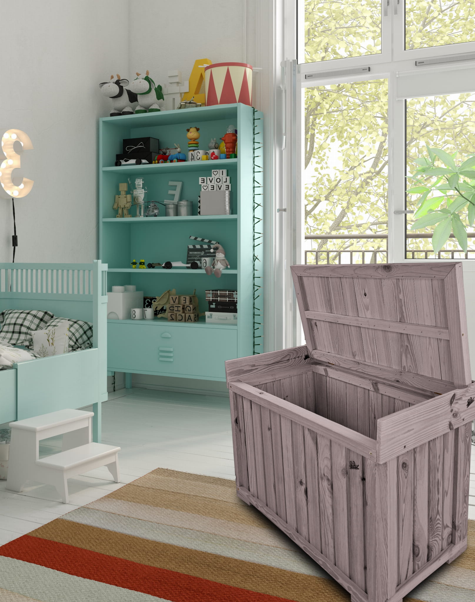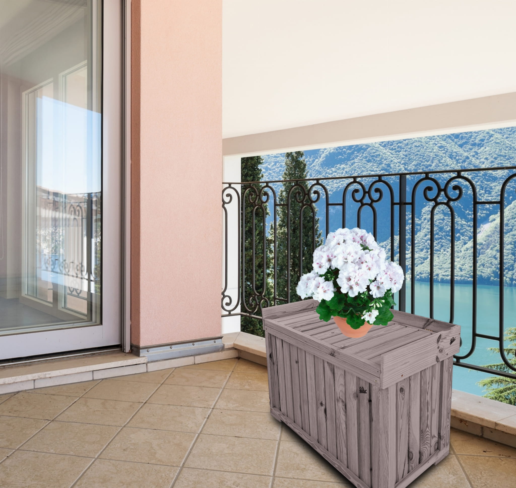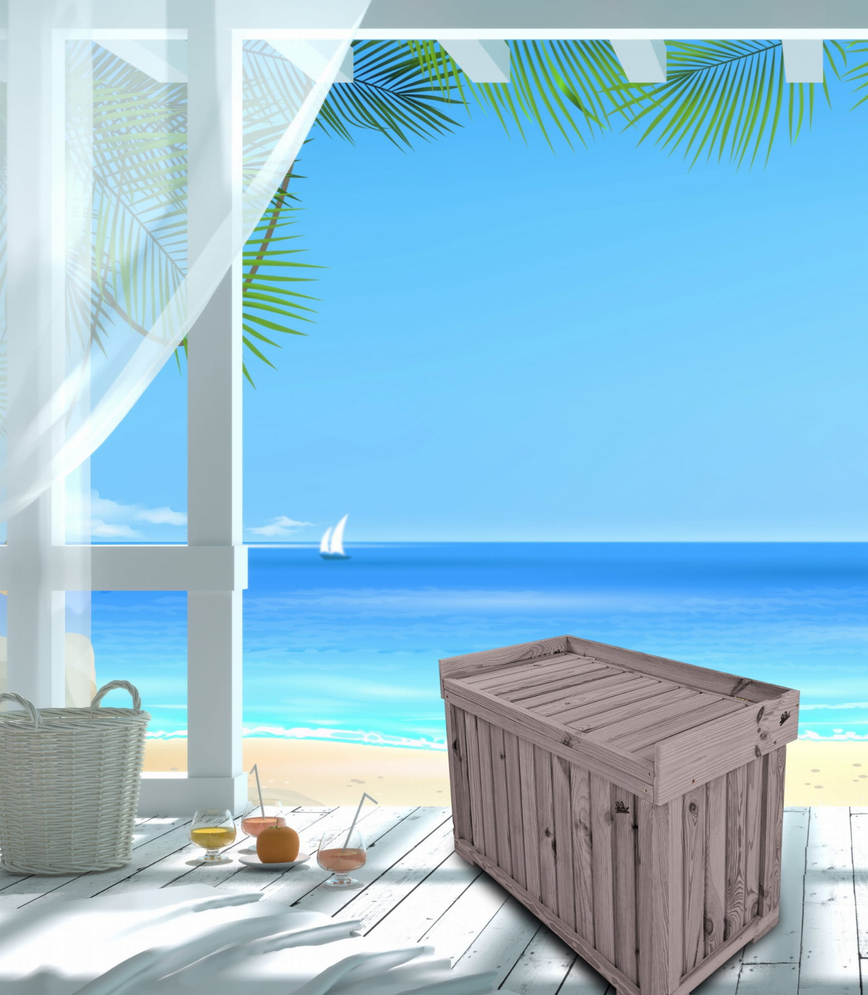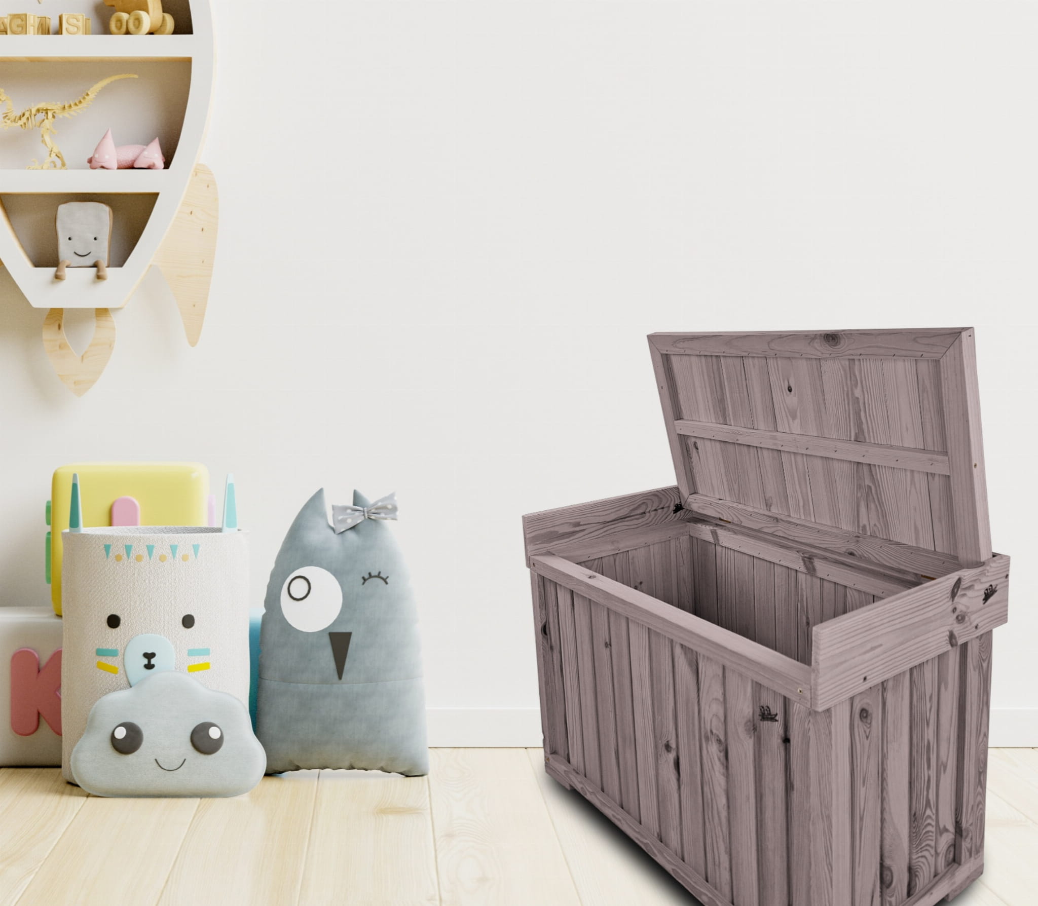 Kufer wykonany jest z solidnego drewna, co zapewnia trwałość oraz wyjątkowy wygląd. Produkt został pomalowany na elegancki kolor szary, który wspaniale komponuje się z wnętrzami domów, tarasami oraz ogrodami.