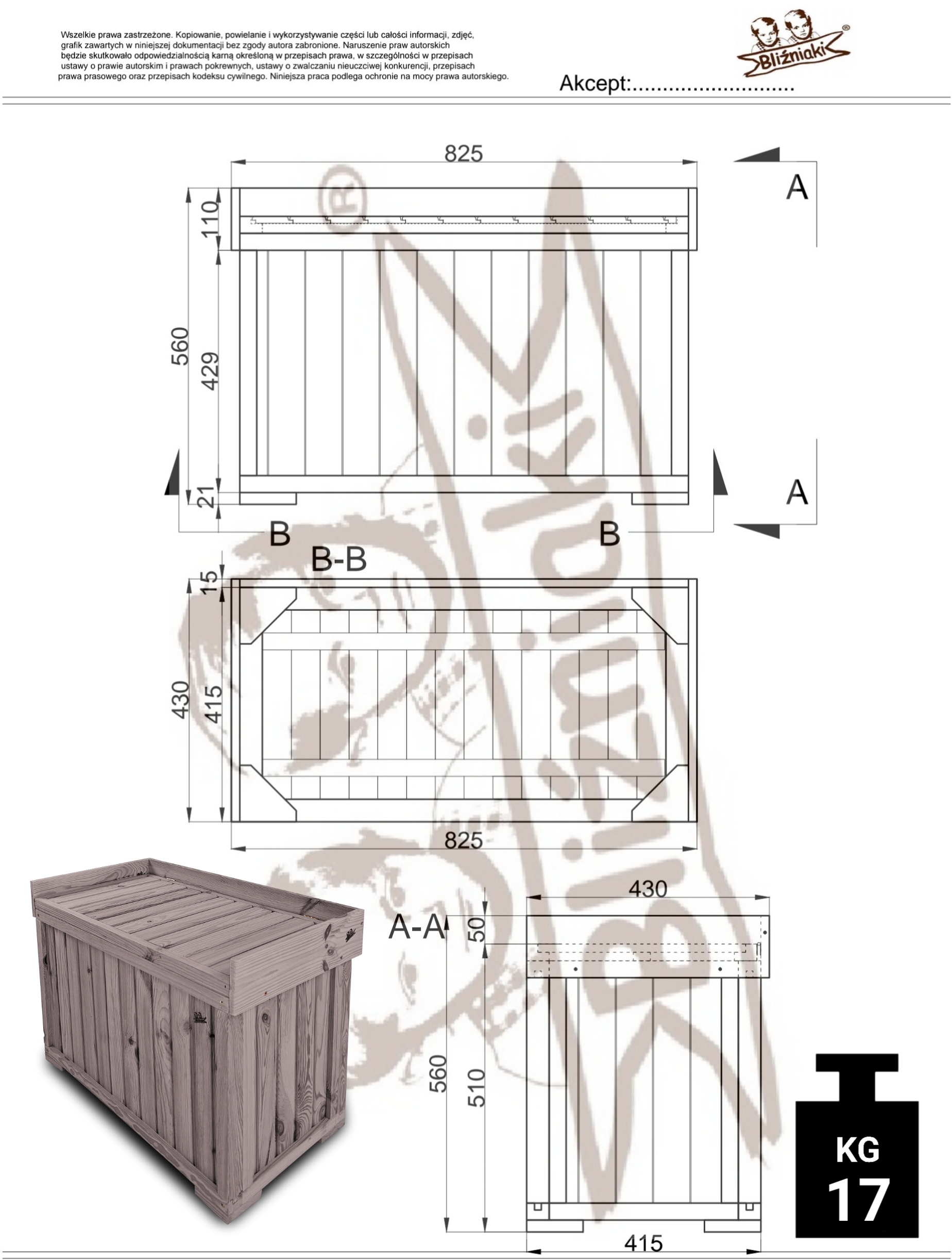 - Podwyższona podstawa - izoluje kufer od podłoża, co zapewnia odpowiednią wentylację.