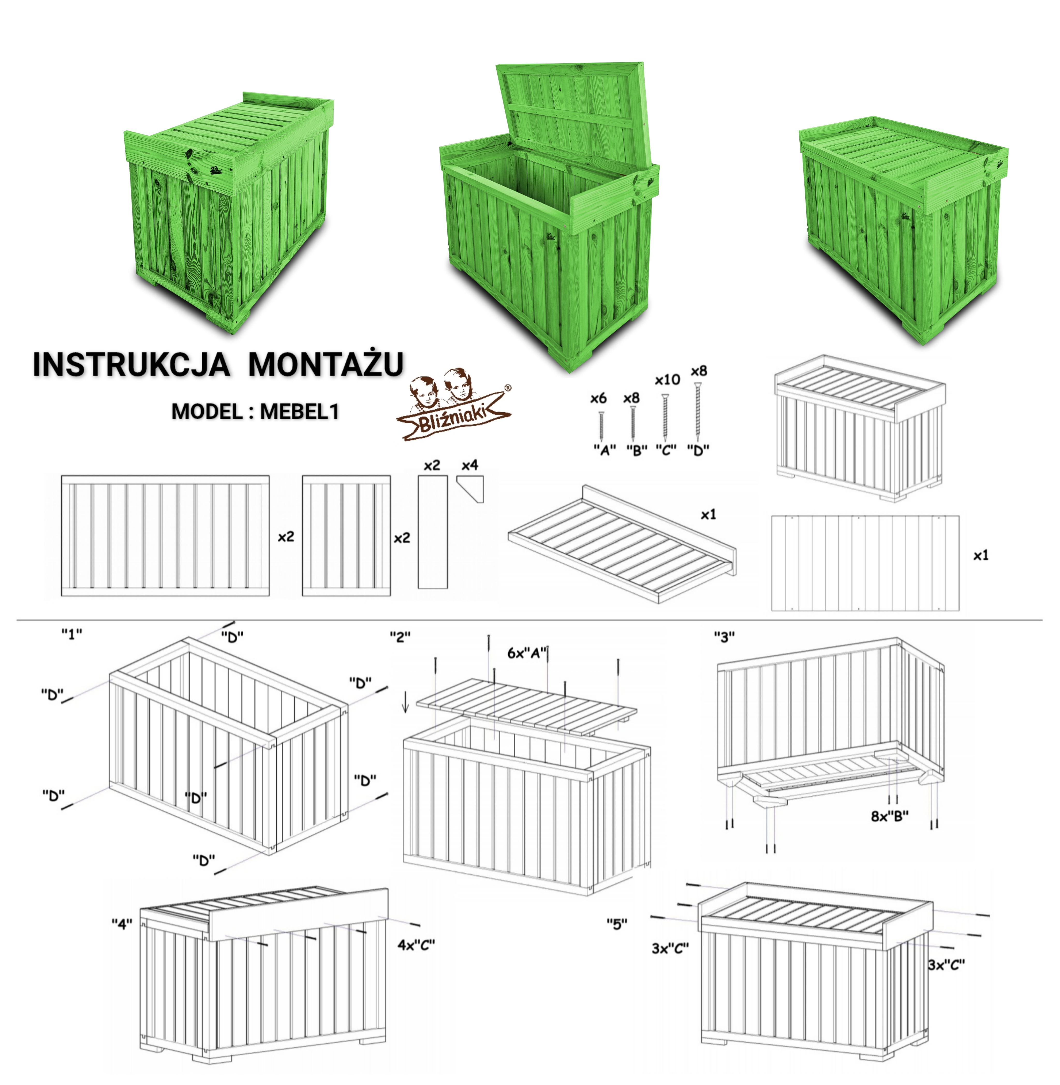 Kufer Drewniany Zielony Komoda Meble Ogrodowe Szafka Na Buty Schowek Na Zabawki Skrzynia Ławka Pufa MEBEL1 ZZ