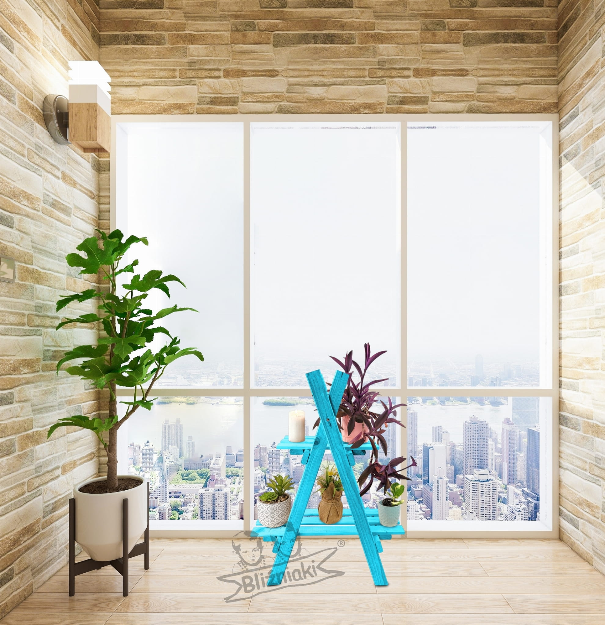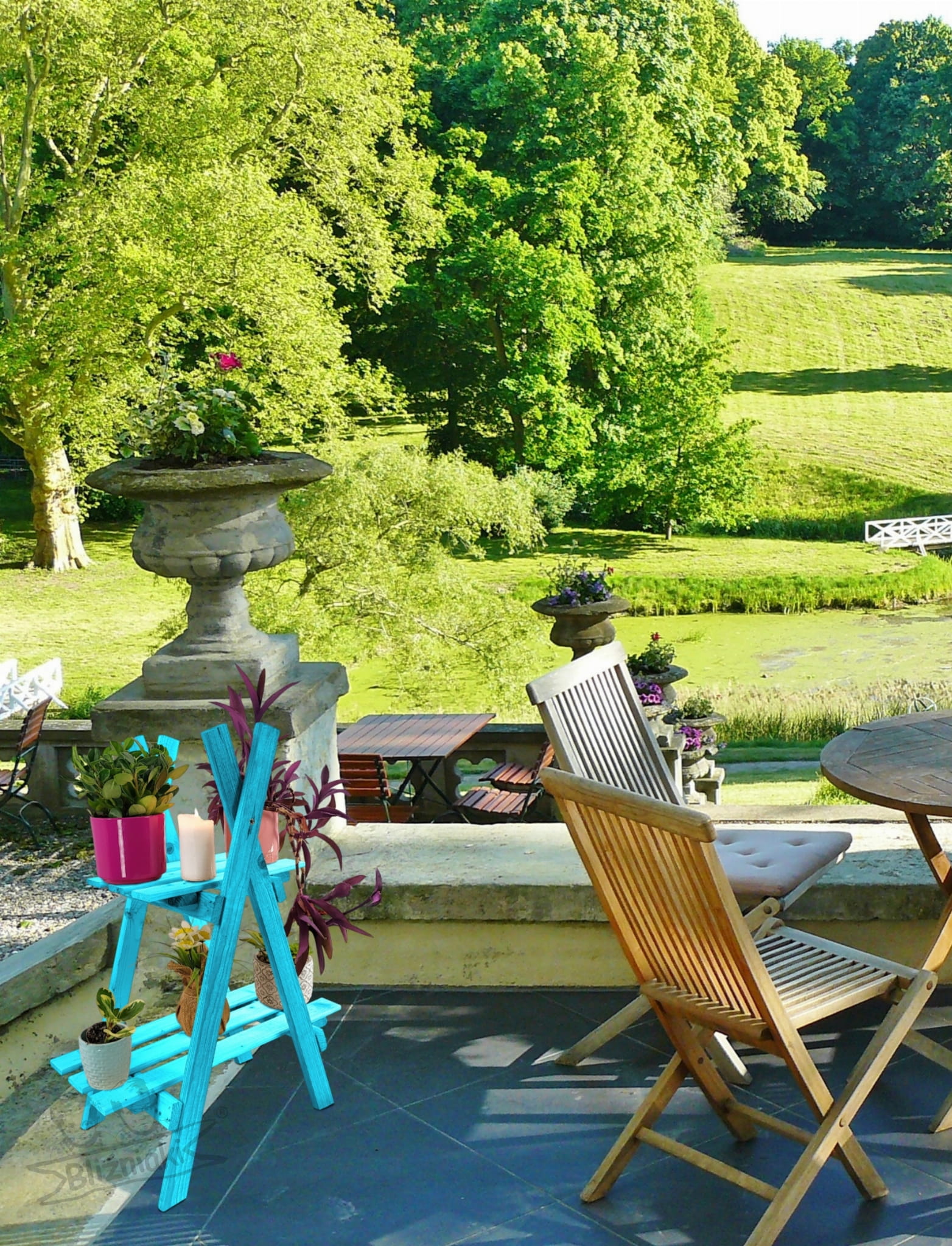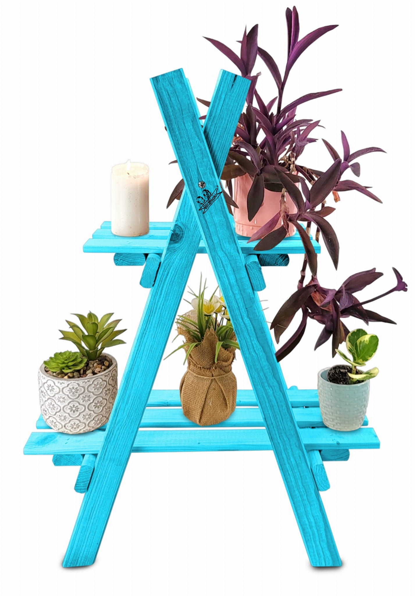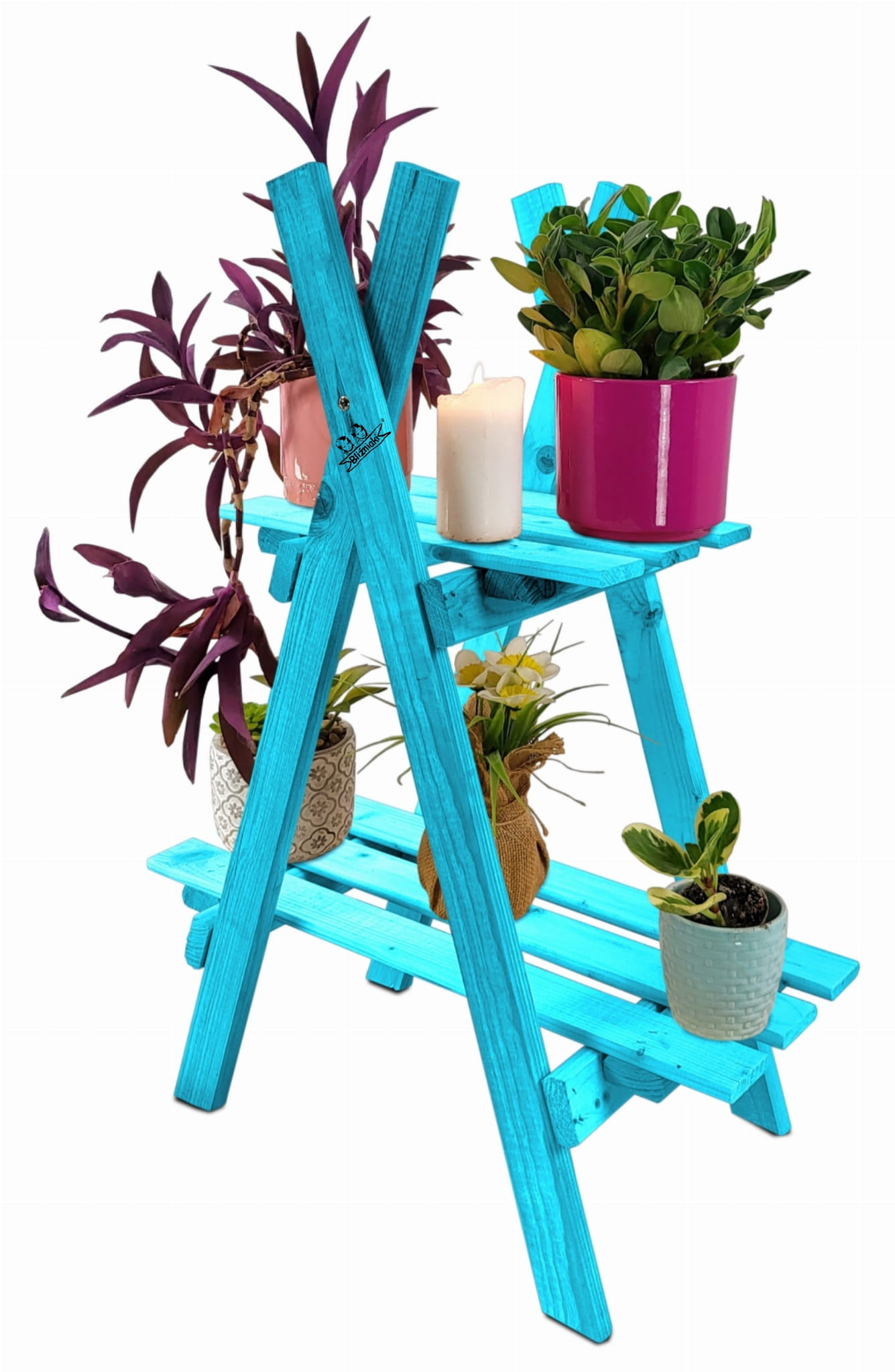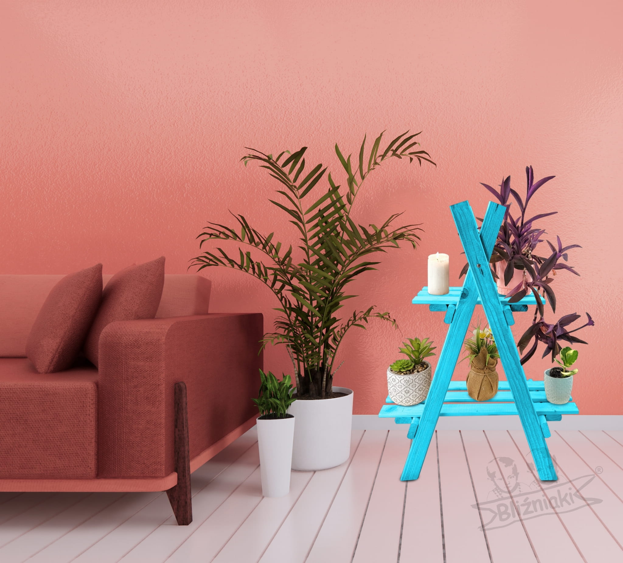 Kwietnik Drabinka Wysoki Regał Z Półkami Rozkładany Drewniany NIEBIESKI PASTELOWY Impregnowany KWDR5 NBP