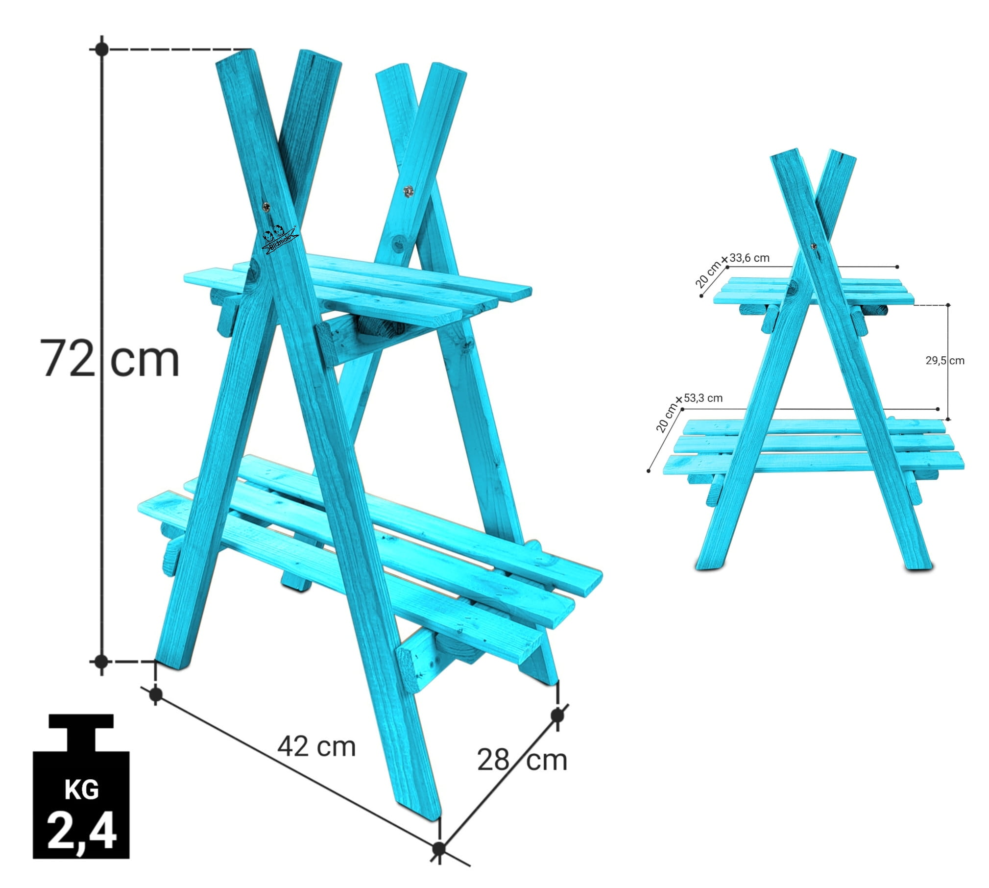 - Składa się z dwóch półek. Znajduje szerokie zastosowanie m.in: na tarasie, jako stojak na doniczki lub w domu, łazience jako ozdobny mebel do umieszczania na nim przyborów domowych.