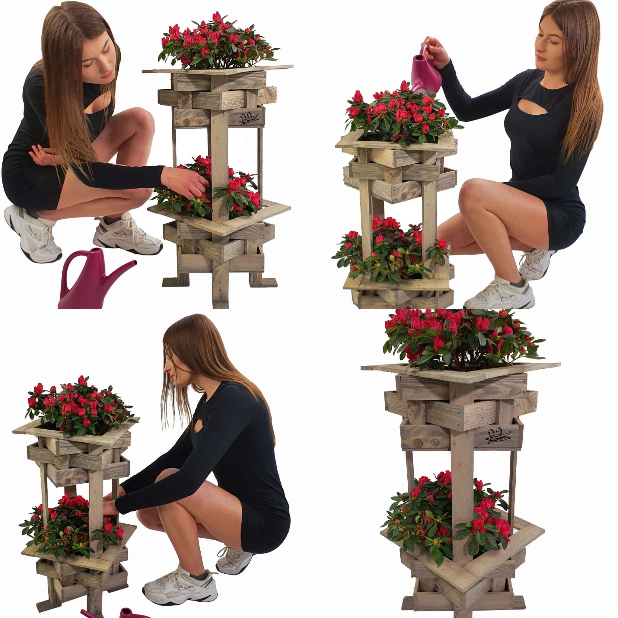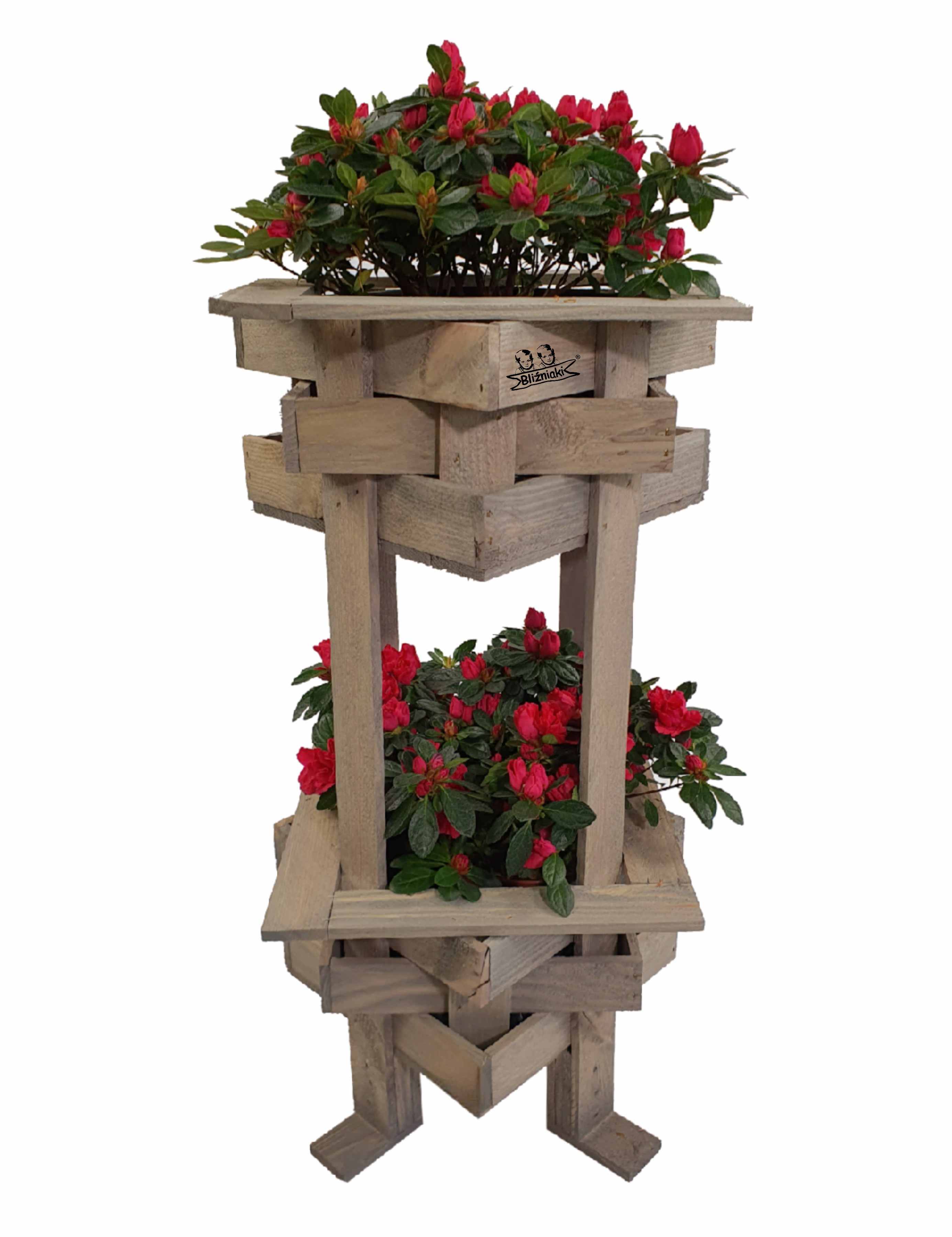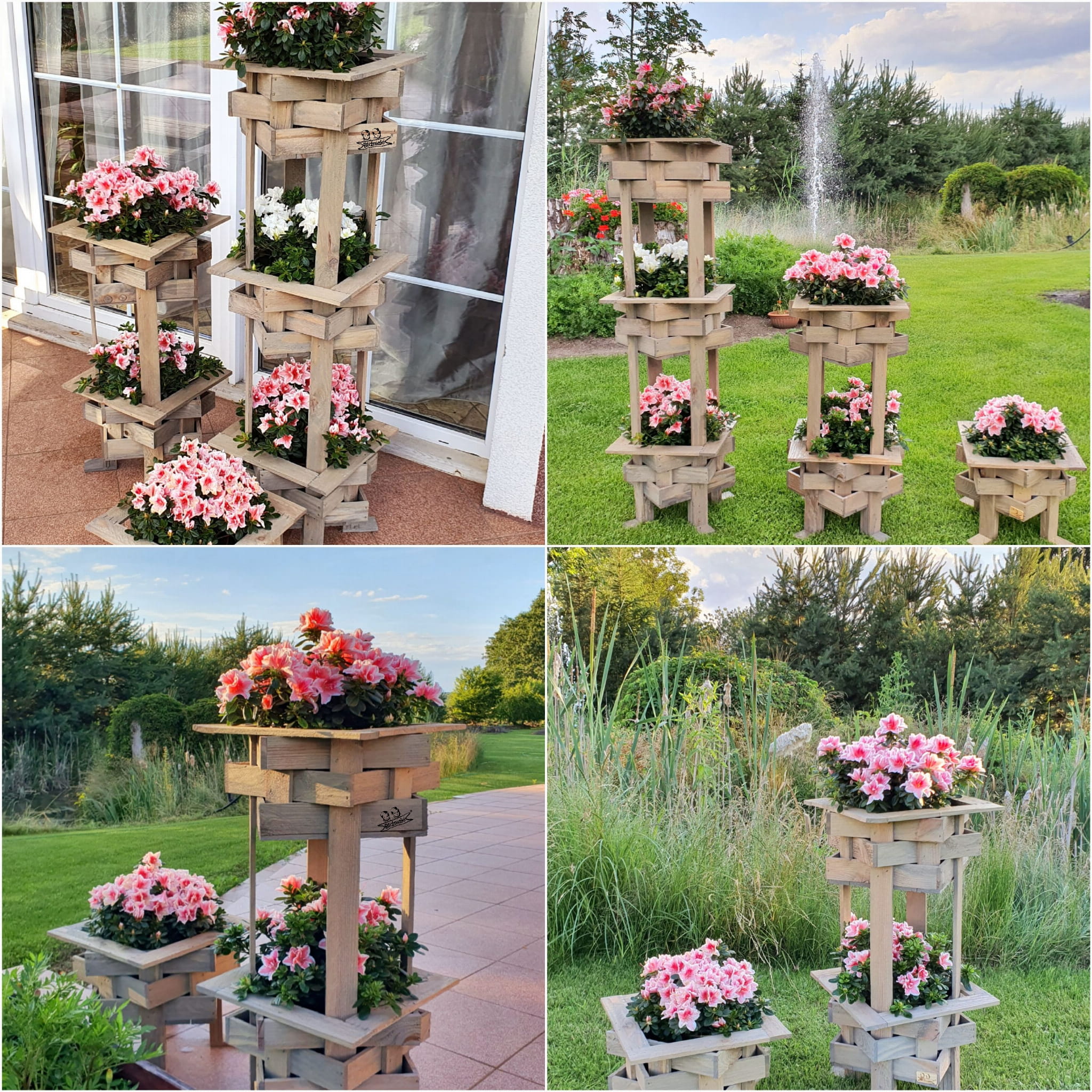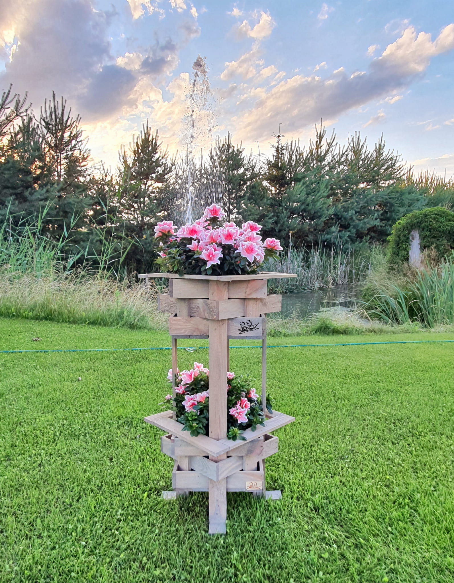 Kwietniki piętrowe DKW47 SN, kwietniki wykonane całkowicie z drewna sosnowego wysuszonego.